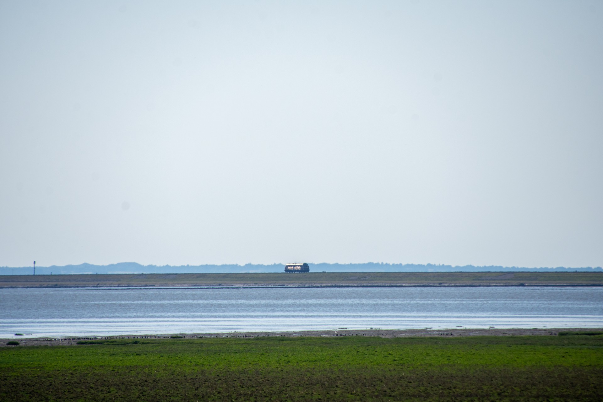 Sidst på eftermiddagen, efter have ventet i en del timer kom MY 1138 så endelig forbi, om en jeg syntes den lød en smule mærkelig. (Video kommer op på YouTube i nærmest fremtid). Det lykkes at få det et sted mere før Klanxbüll, da den lige kort skulle ind i Lehshallig, og også et enkelt billede af MY 1138 langt ude på dæmningen mod Sylt.