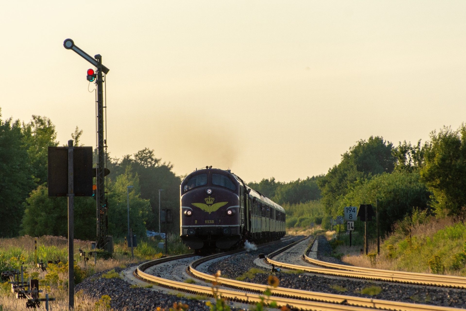 På grund af toget nu ikke fulgte planen, kom det ikke ind til krydsning i Lehshallig, som jeg ellers havde håbet på, så det blev til et par meget panik billeder lidt før Niebüll, efter have kørt godt til for at overhale toget og nå frem der til. Herefter kørte jeg til dagens sidste planlagte sted ved Lindholm. Ved Lindholm er der endnu et armsignal at finde, og det lykkes at nå frem her til og få billeder af toget passere her også. Jeg var dog først lige ved at tro at jeg havde misset toget her, da der ikke var andre fotografer direkte at se her, og det tyske par jeg spurgte mente toget var kørt forbi. Bommen gik dog ned kort tid efter, og jeg måtte se hvad det så var der kom, og heldigvis var det MY 1138 der kunne anes. Skønt når tingene lykkes.
