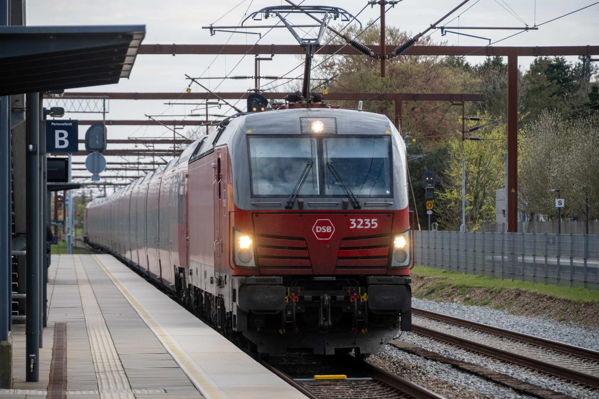 Derefter kørte jeg mod Sønderjyllland, nærmere bestemt lige nord for Rødekro, hvor en vej løber parallelt langs med banen et godt stykke. Desværre var det også skydække over solen her. Så kørte jeg lidt nord for Tinglev, hvor jeg fik et par billeder af toget på vej retur mod Tinglev fra Padborg. I Tinglev blev der foretaget omløb så toget kunne køre mod Sønderborg istedet – og desværre nåede jeg ikke rigtig finde en god placering ved afgang her fra, så det blev lige syd for stationen.