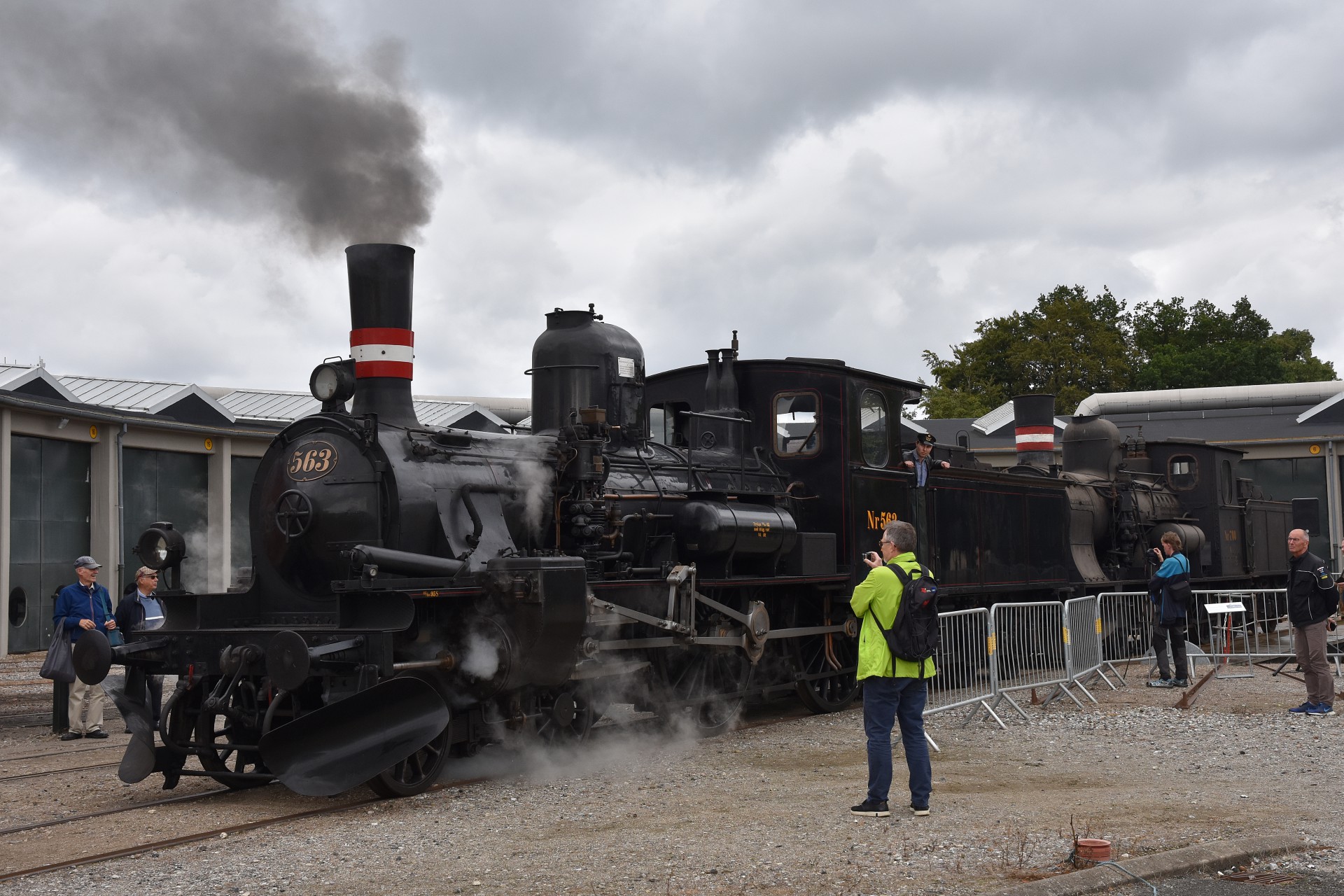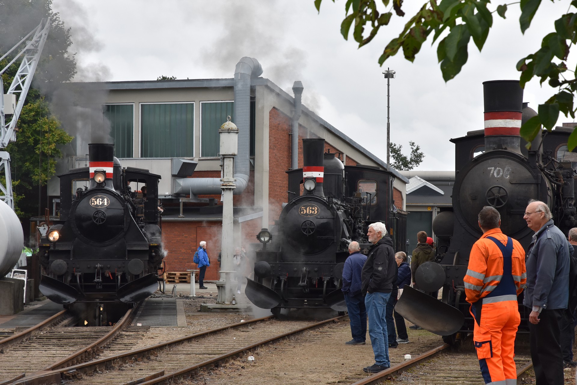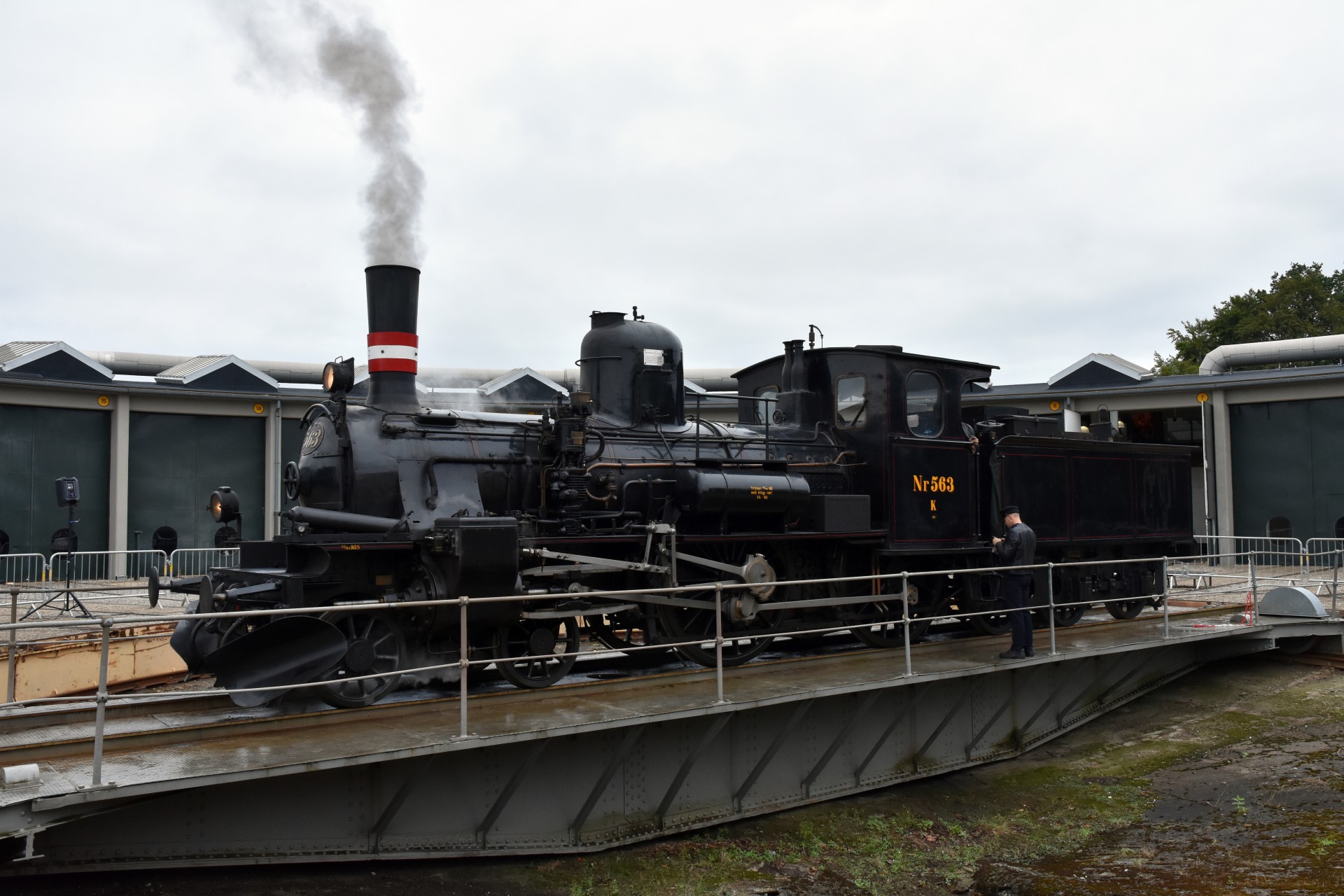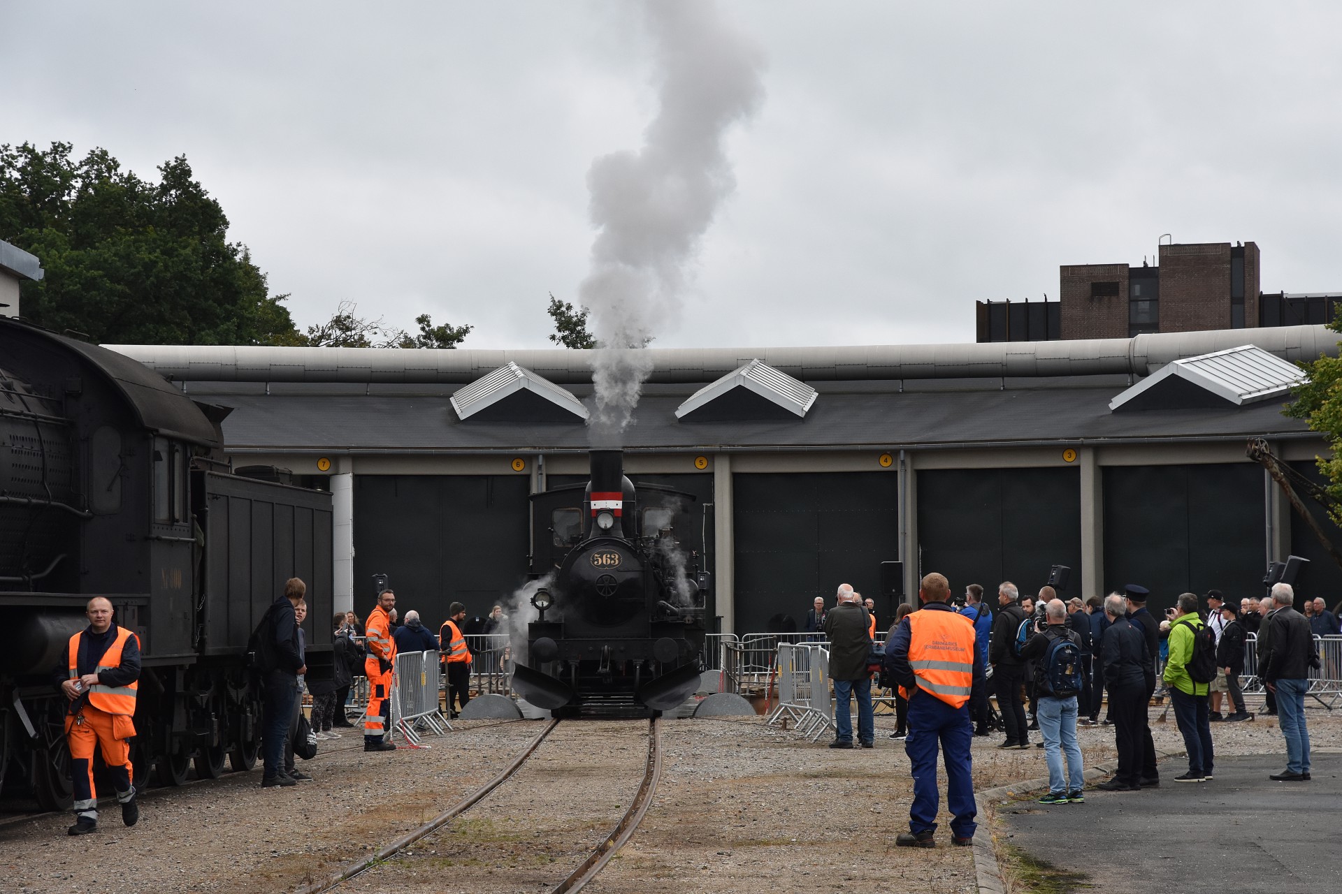 Det første lokomotiv som blev præsenteret på drejeskiven, var Danmarks Jernbanemuseums egen K 563. Ud over K-maskinens historie, gennemgik Steffen også hvordan et damplokomotiv fungere. Derefter var det så Nordsjællands Veterantog med deres S 1307 der blev vist frem på drejeskiven. Efter dette kørte TKVJ Nr. 12 fra Sydjyllands Veterantog på drejeskiven og fik sig en svingom. Herefter var det til slut Vestsjællands Veterantog med K 564, der blev vist frem. Så altså 4 køre klare damplokomotiver.