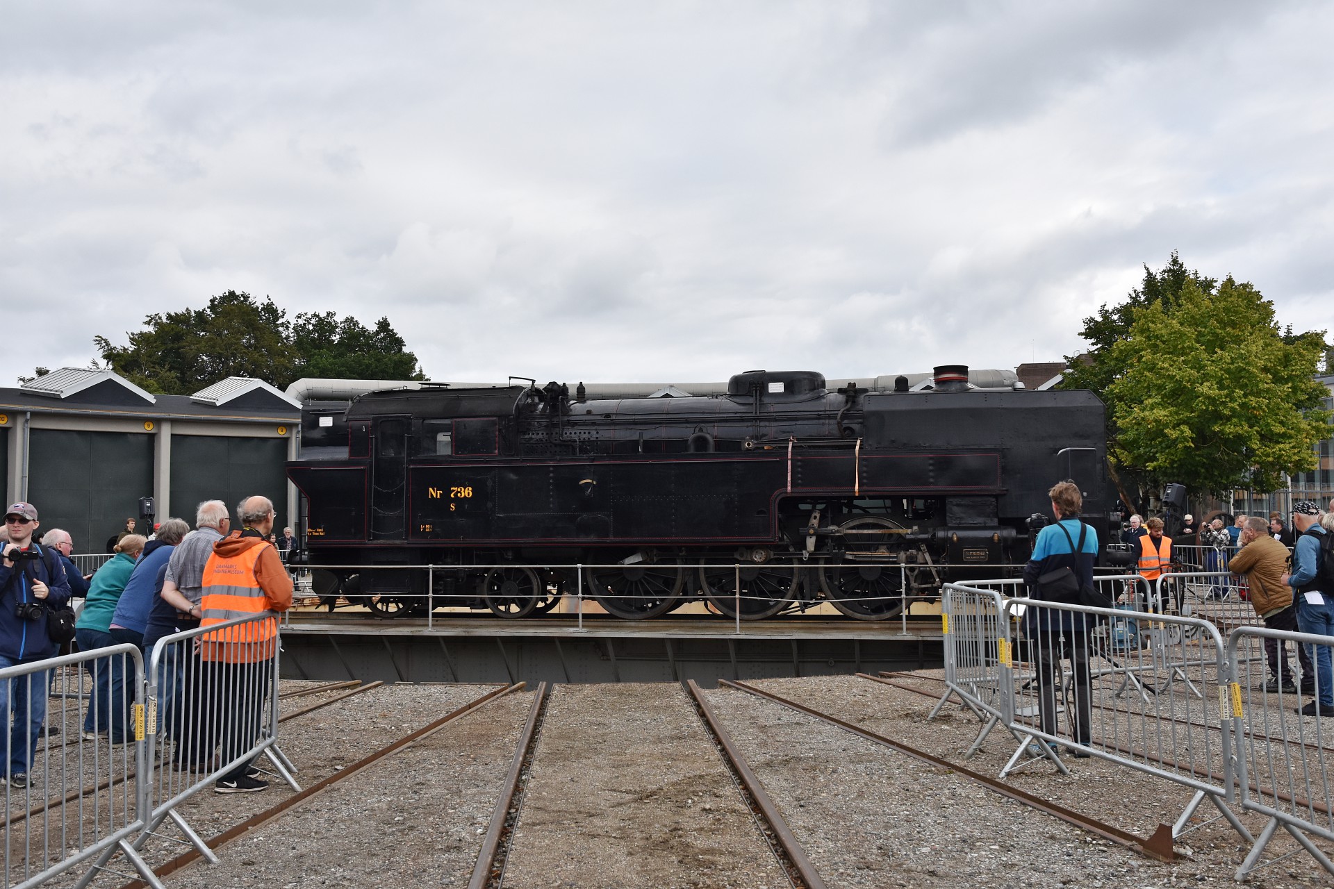 Klokken 13.00 blev H 800, S 736 og C 708 vist frem på drejeskiven. Det fik sig hver sig en svingom, og Steffen fortalte omkring hver af lokomotiverne, hvad de blev brugt til, samt hvor og hvornår. Imens var der en hel del rangering, da det kræver dette for at få hver af de 3 lokomotiver på drejeskiven. Klokken 14.30 blev de sidste 3 damplokomotiver frem på drejeskiven. Det var E 991, R 963 og D 871.