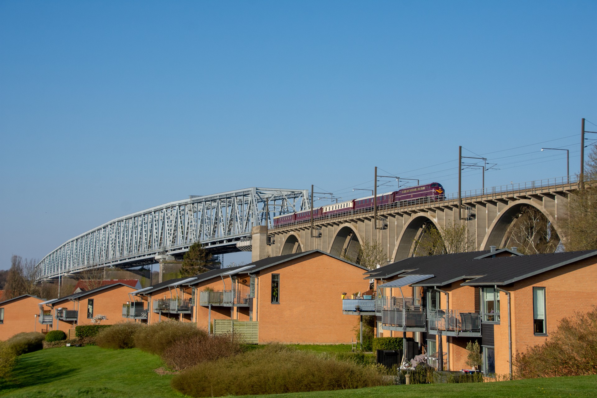 Da det begyndte at nærme sig afgang kørte jeg til Støvring, hvor banen igen samler sig. Det blev til 3 billeder herfra, og desværre i ret kraftig modlys. Efter dette kørte jeg mod Aalborg, og havde forventet toget holde ved perron på stationen. Dette gjorde det desværre ikke, så i stedet ventede jeg på vejbroen over banen. Desværre blev der først til sidst trykket tilbage, og jeg kunne herefter tage billeder af toget ved stationen. At det så sent, gjorde desværre jeg missede det næste planlagte fotosted, da toget skulle køre fra Aalborg. 🙁