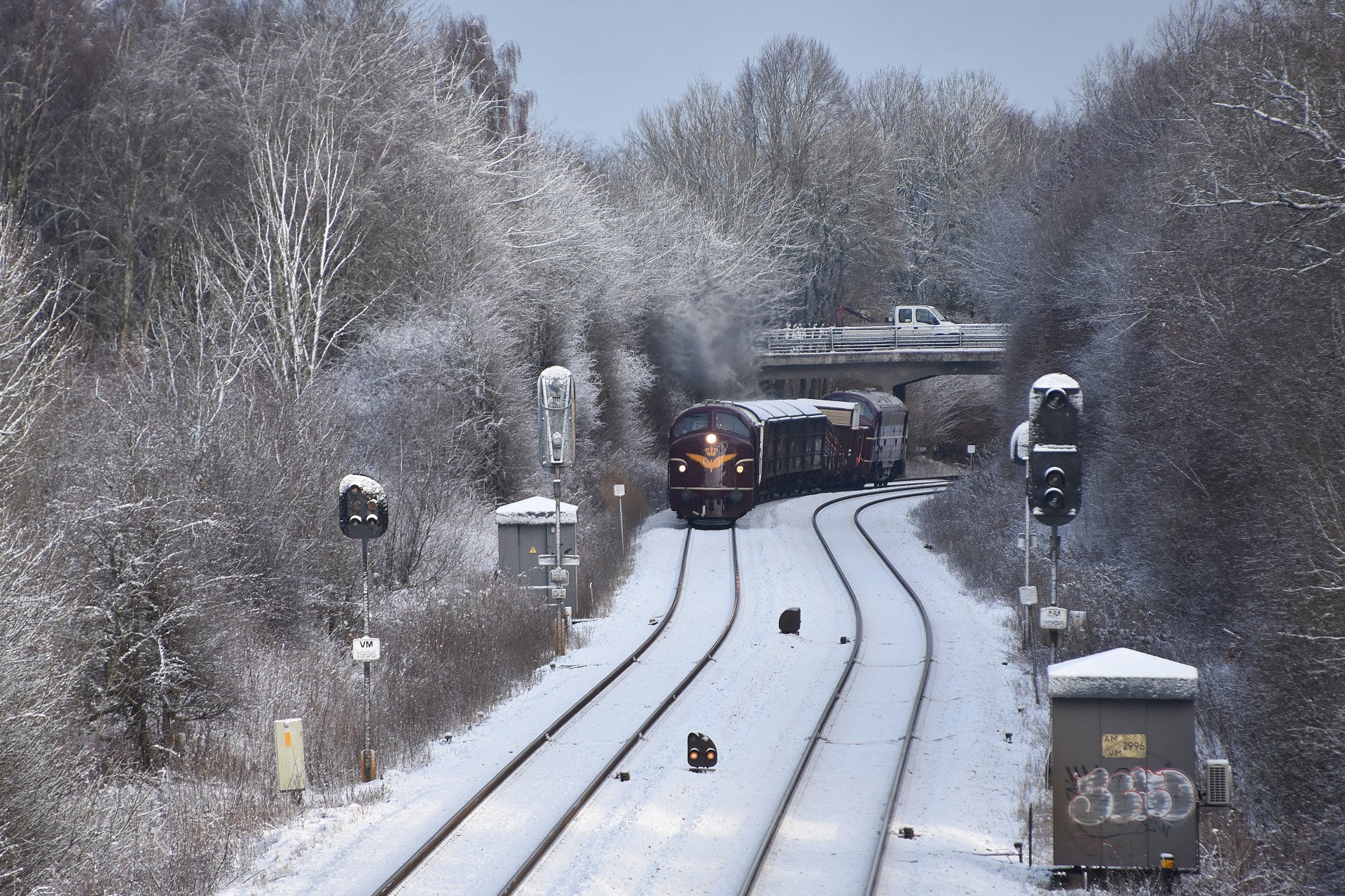 Torsdag den 28. januar omkring klokken 9 kørte Danmarks Jernbanemuseum fra Randers, efter nogle af de vogne der var med, var blev koblet fra. Og så kørtes der ellers syd på mod Padborg.