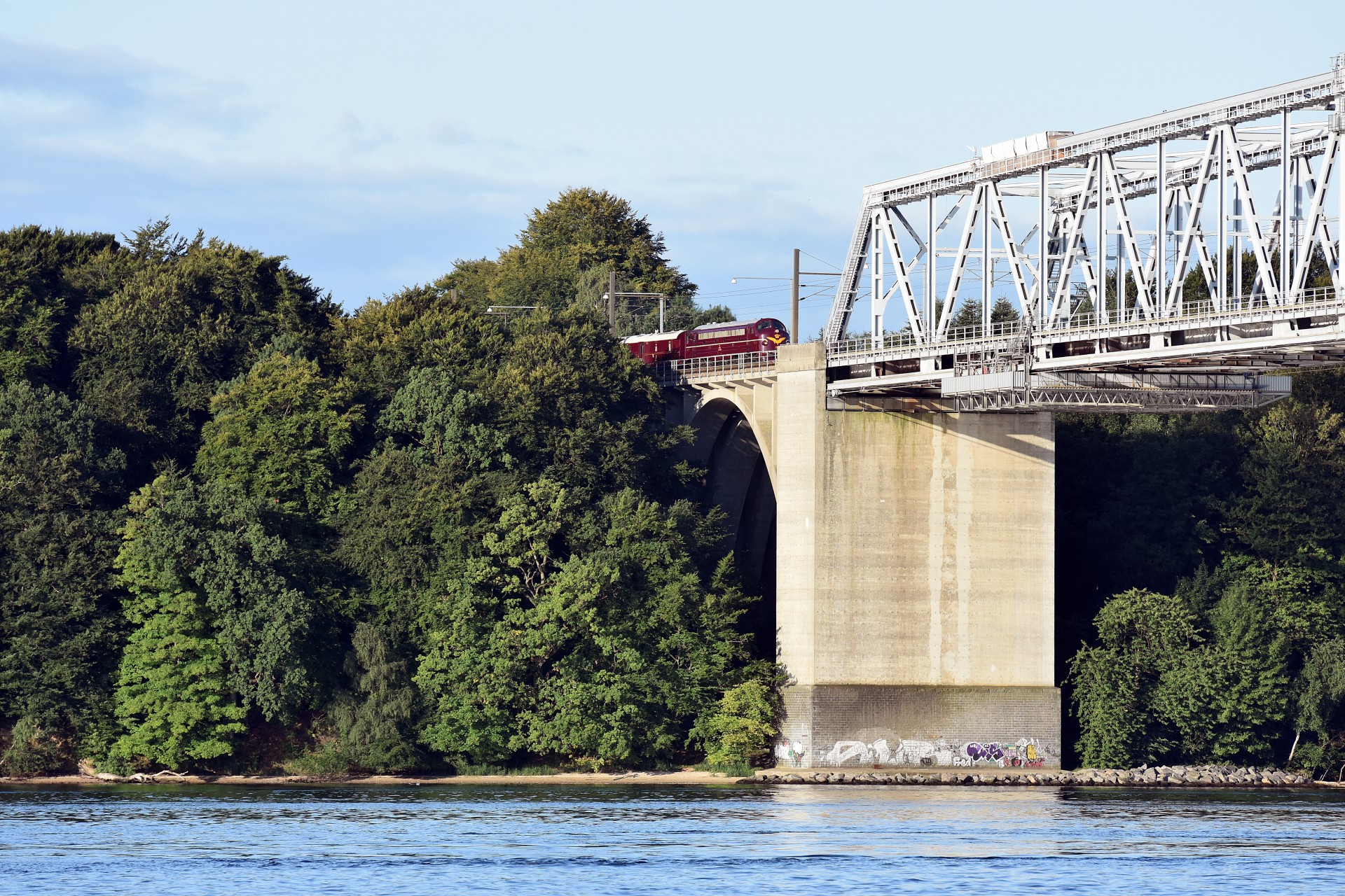 Jeg startede ud om morgenen med at køre til Den Gamle Lillebæltsbro, som altid er et godt sted om morgenen. Toget kom en del før tid, men jeg kunne heldigvis høre det tydeligt før det kom 🙂 Så kørte jeg ellers mod Stilling, hvor det blev til en række billeder af toget, inden jeg kørte ind til Aarhus H.