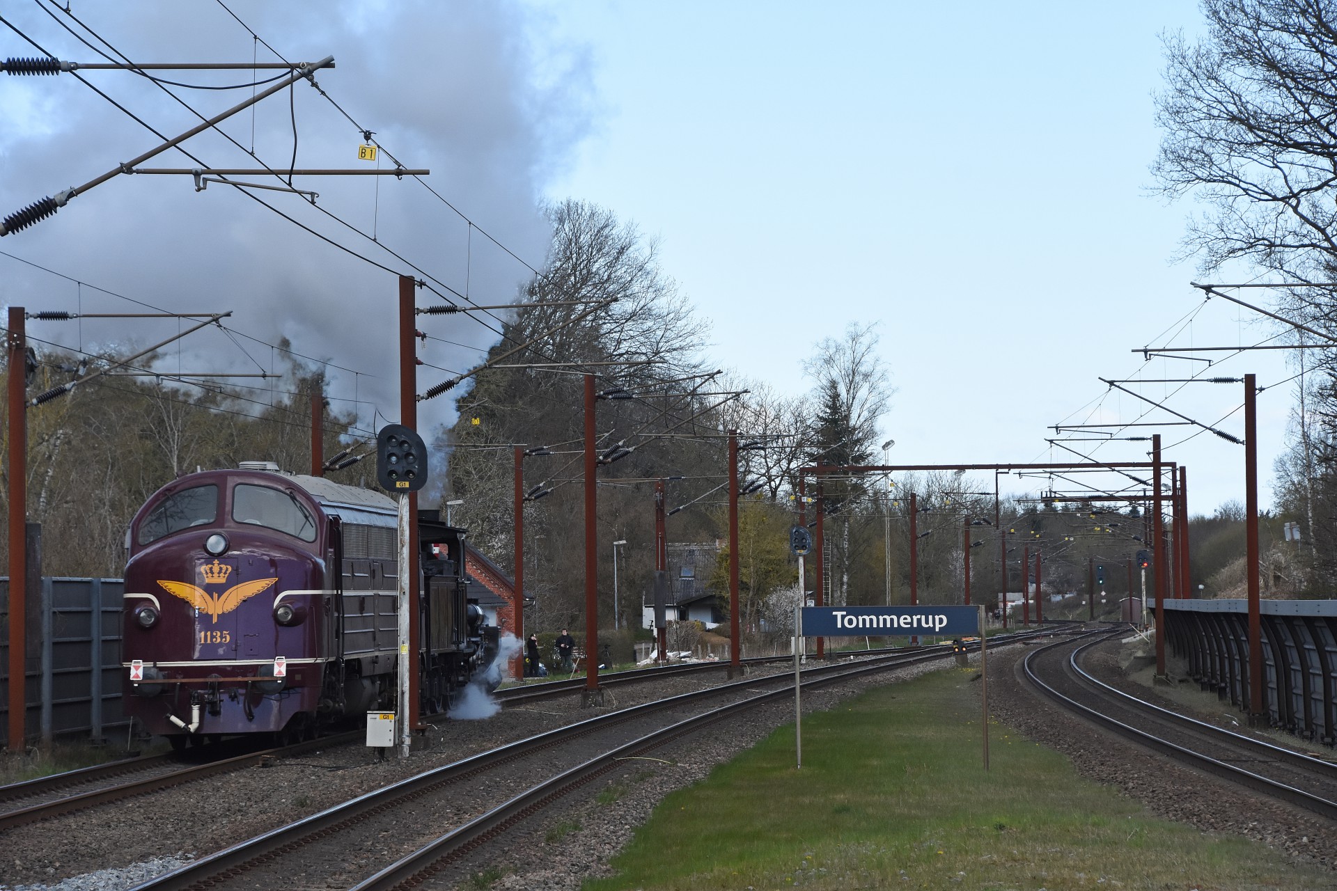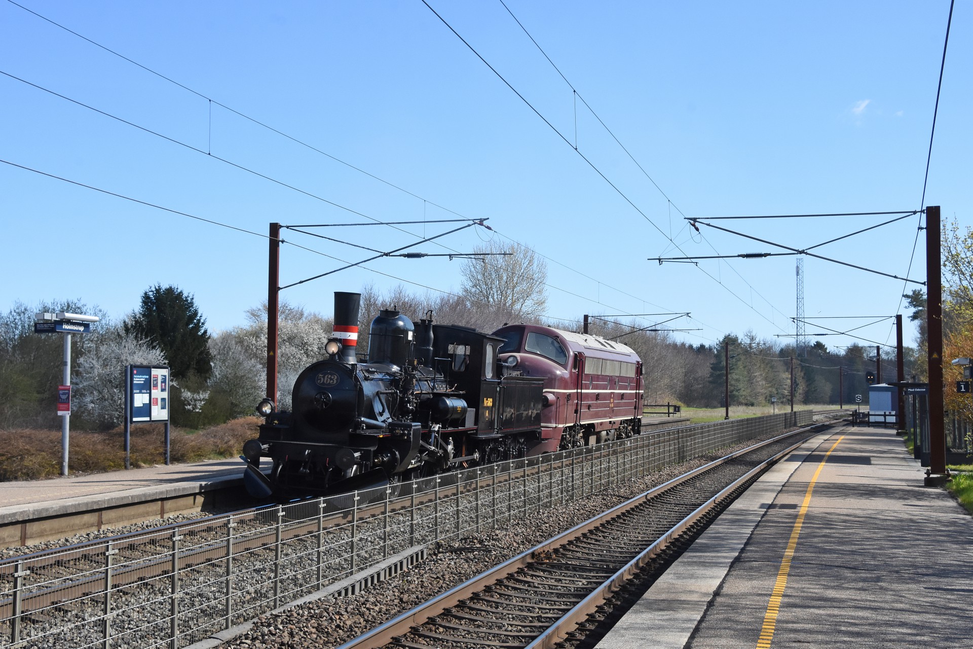 Lørdag den 24. april kørte Danmarks Jernbanemuseum 2 testkørsler med damplokomotivet K 563 mellem Odense og Aarup, og med som belastning var MY 1135. Der blev testet efter der er udført diverse små reparationer, test af kul samt rutinering af personale. Jeg fulgte den første kørsel, og fik billeder af toget under vejs ved Holmstrup, Tommerup og Aarup.