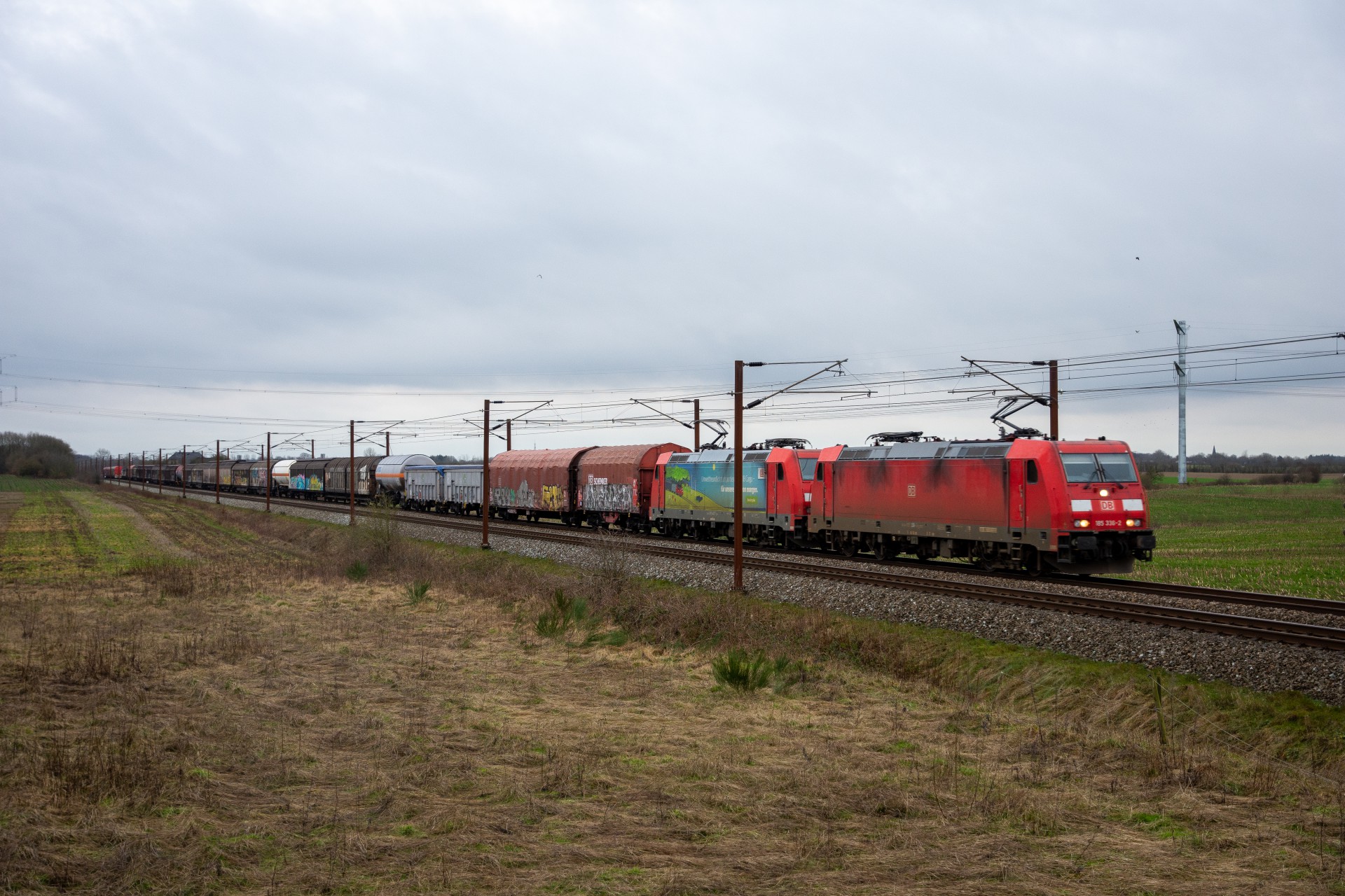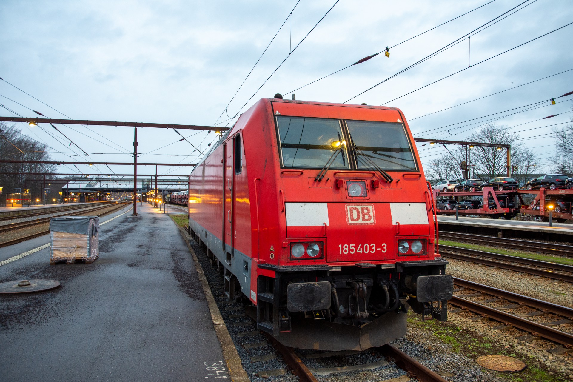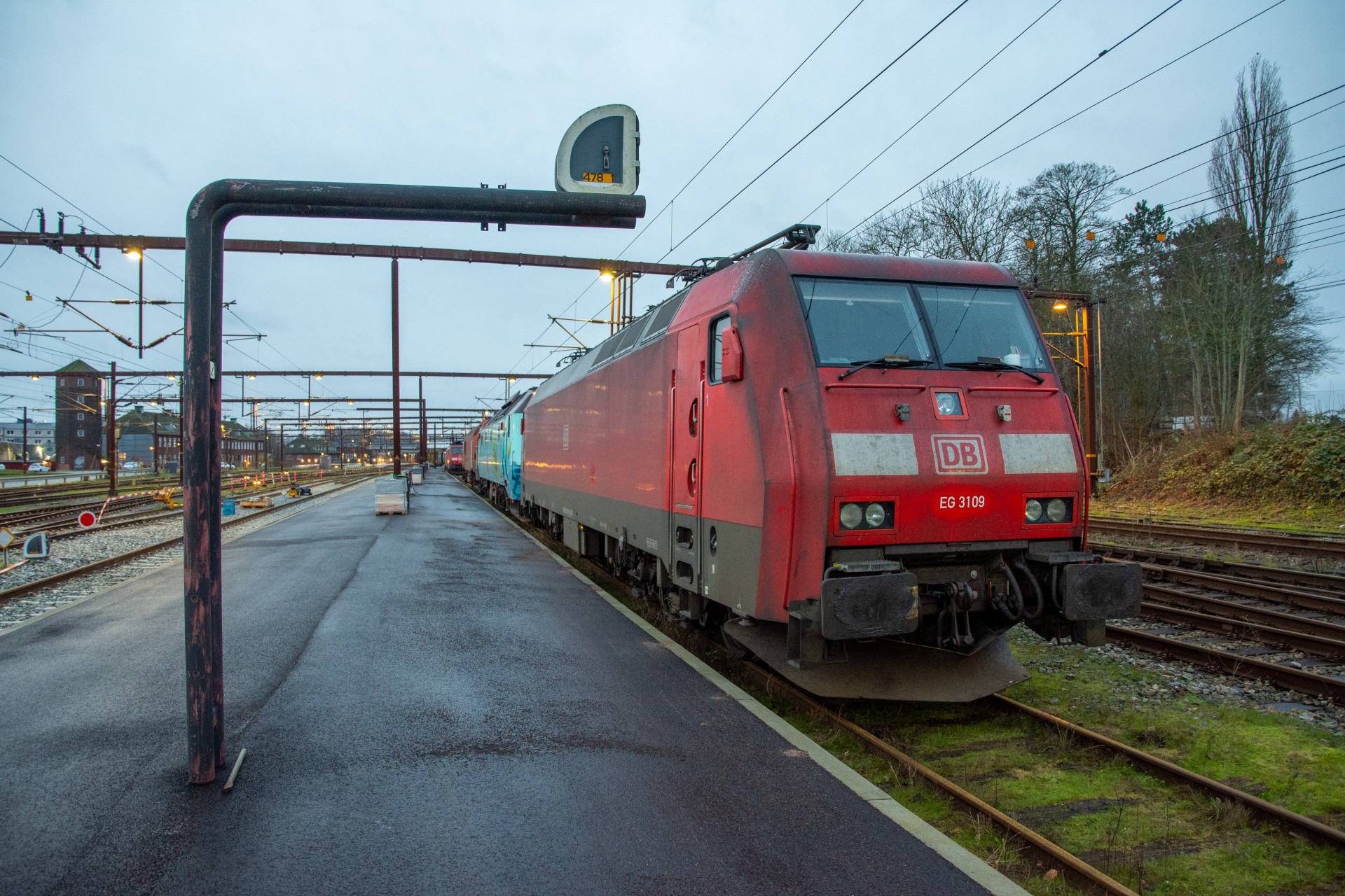 Jeg startede dog ud i Fredercia, hvor en hel del materiel var at finde; DB Cargo MZ 1452, MZ 1453, MZ 1457, MZ 1459, ME 1524, ME 1533, EG 3103, EG 3109, 185 403-3. Derefter kørte jeg syd på mod Padborg, men gjorde et stop lidt nord for Tinglev, hvor jeg fik et billeder af 2 stk 185 på vej nord på.