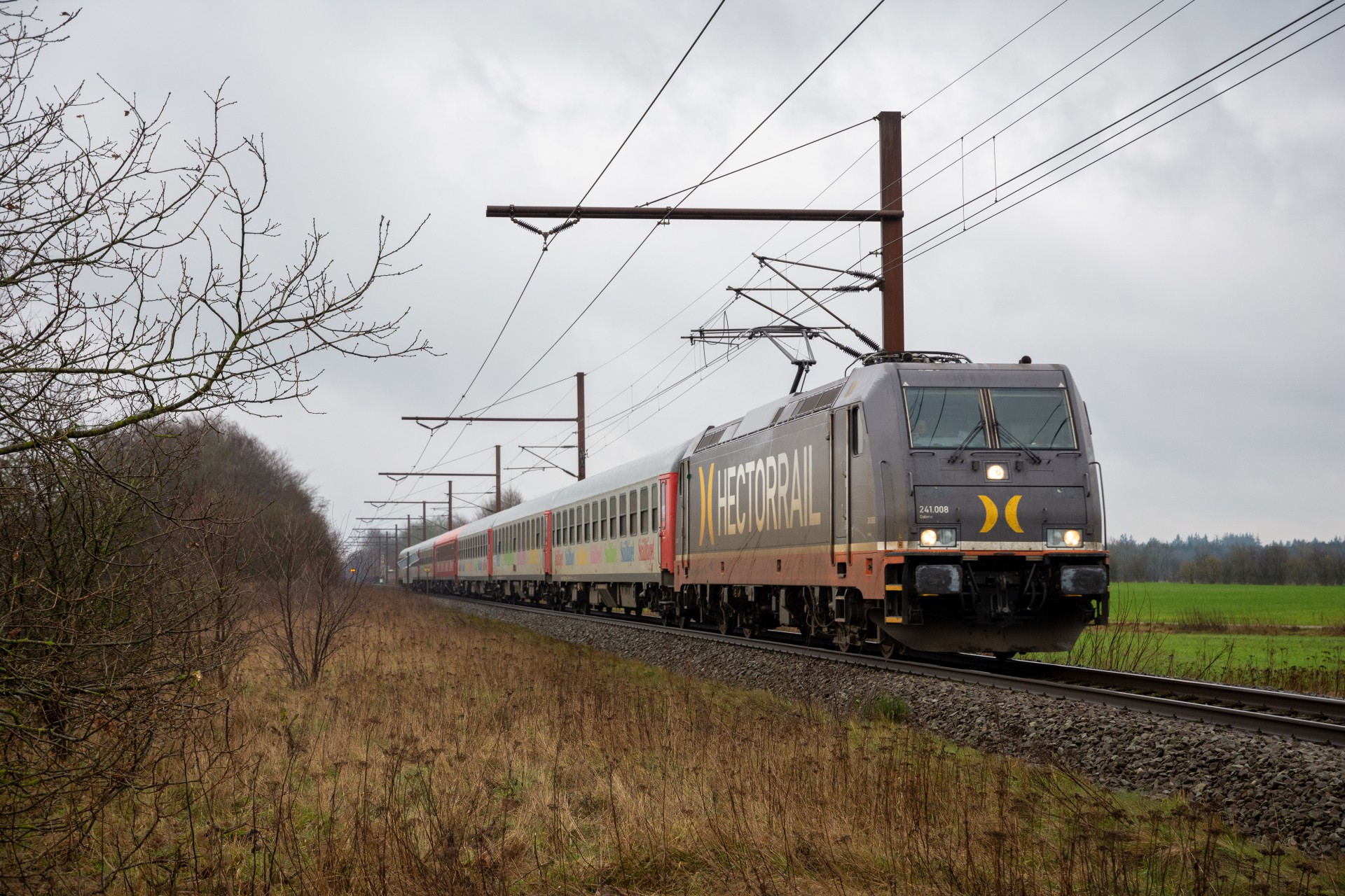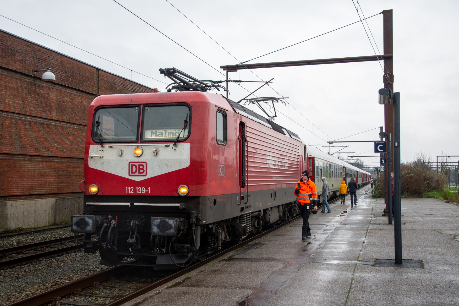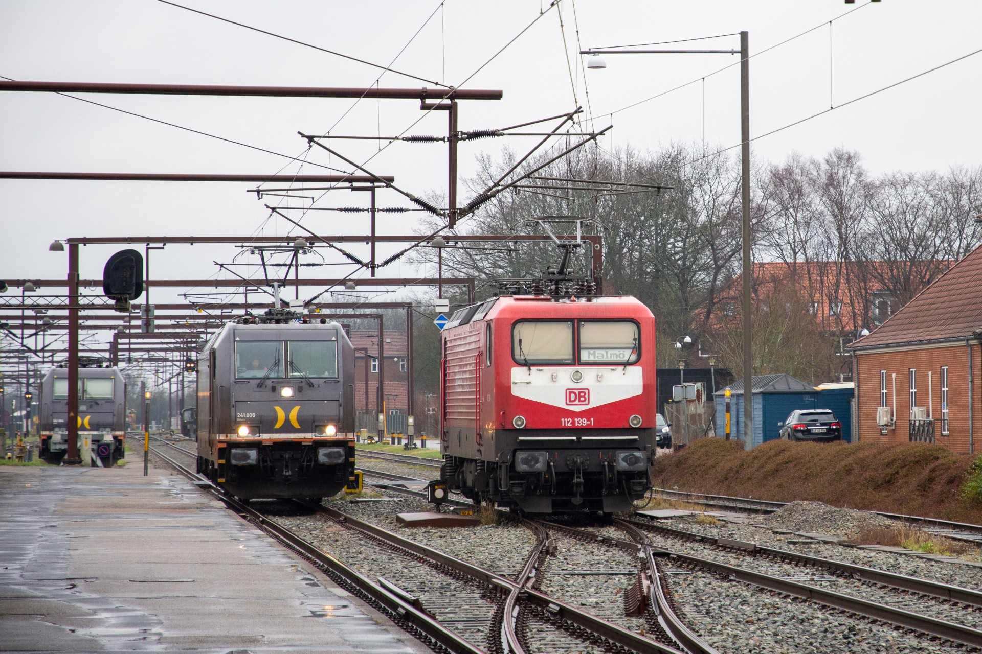 Ved ankomst til Padborg placerede jeg mig i den sydlige ende, og omkring 11.30 ankom Transdev med 112 139-1 og Snälltåget´s skitog. Efter ankomst i spor 1, blev 112 139-1 rangeret væk, og Hector Rail 241.008 (Galore), kom nu i front på toget.