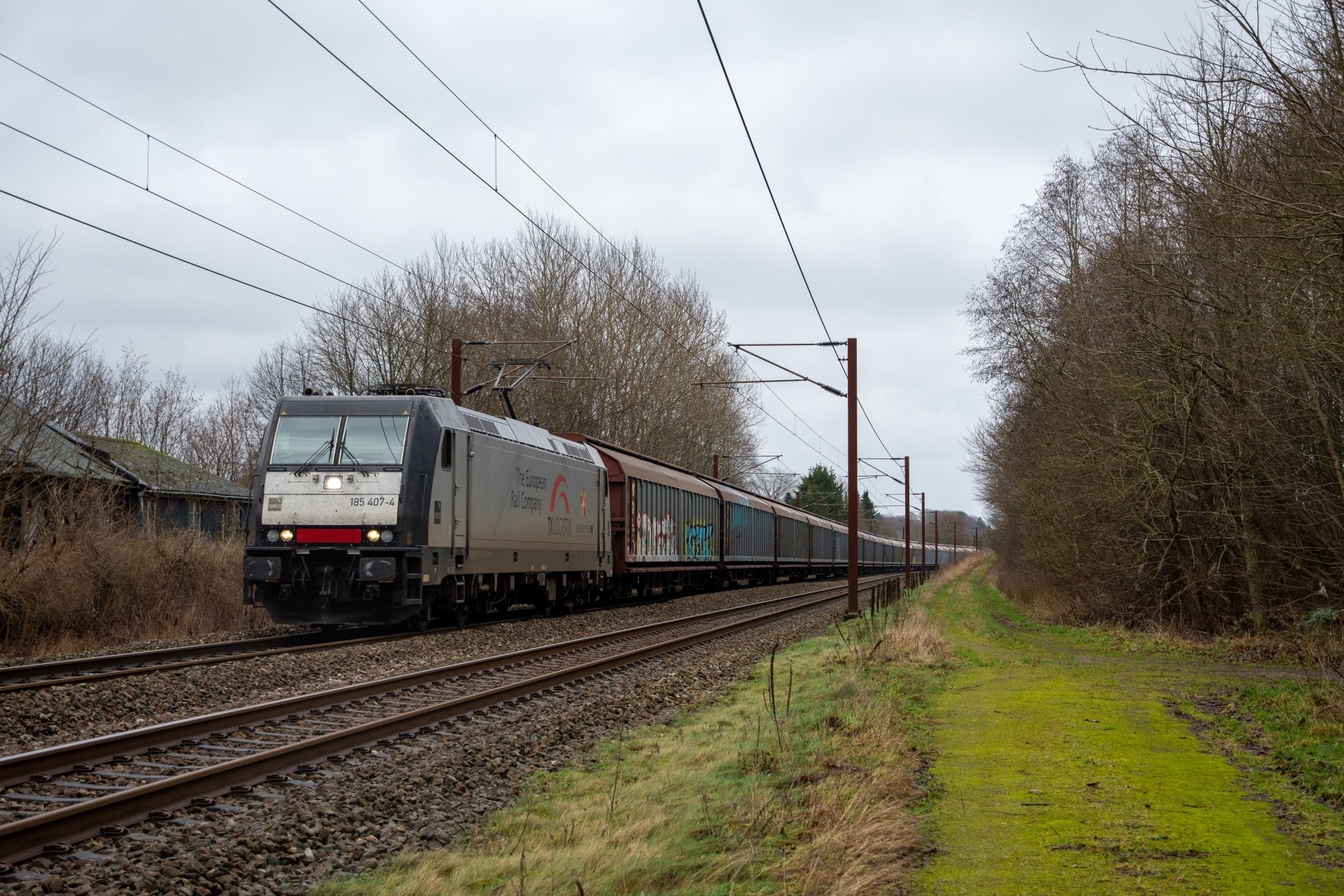 Jeg kørte så mod Fårhus, hvor jeg fik et billeder af toget på vej videre mod Sverige(Malmø), herefter sidste billede fra dagen blev ved Ejstrup, hvor TXL Logistik var på vej syd på med 185 407-4.