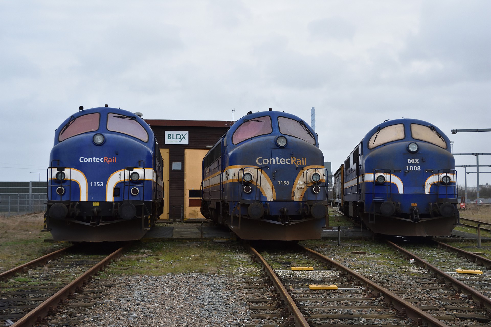 Søndag den 28 januar var jeg et tur forbi Køge på vej hjem fra Lolland Falster, og jeg skulle selvfølgelig lige et smut forbi BLDX / Contec Rail. Man må nærmest sige der var GM Træf da 6 rundsnuder var at finde. Følgende maskiner var at finde: MX 1008, MX 1017, MX 1018, MX 1019, MY 1153 og MY 1158.