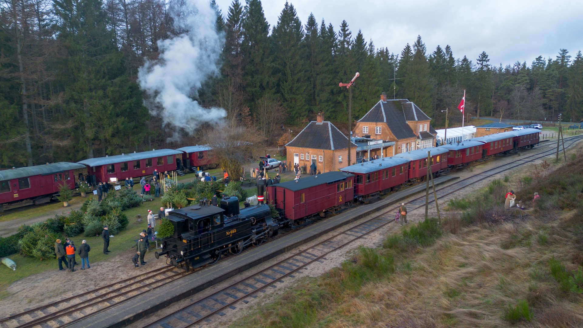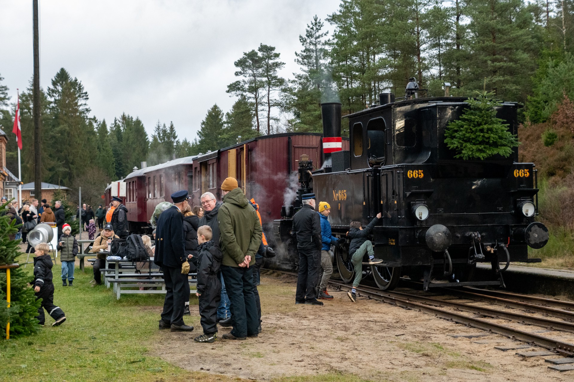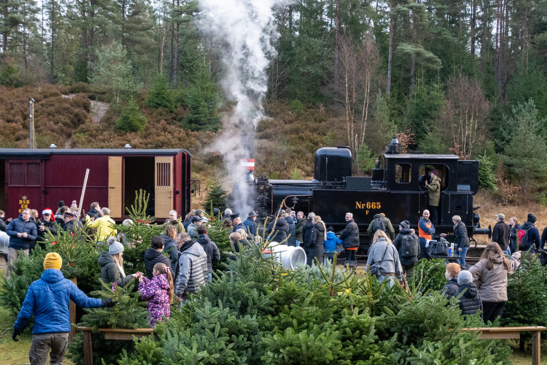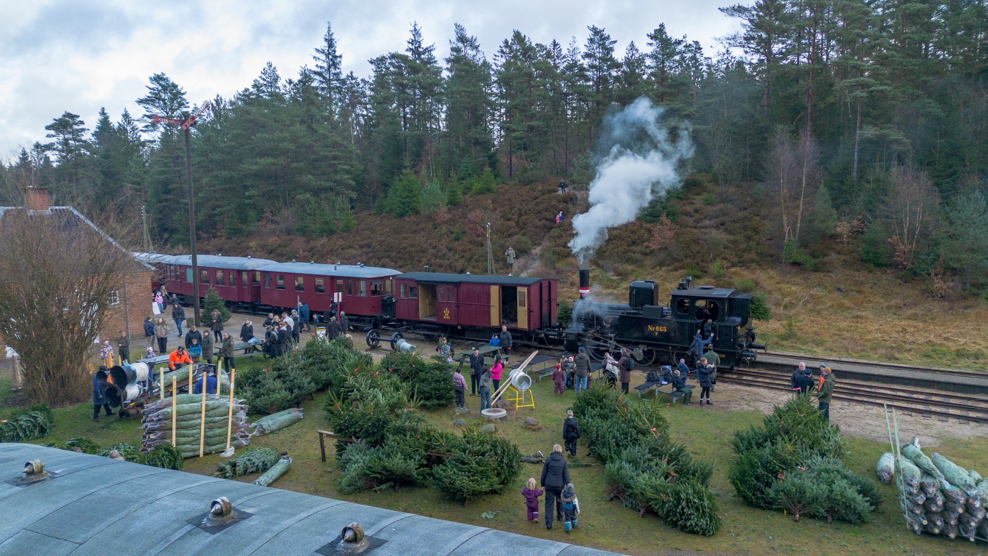 Juletræssalget er flyttet til området ved Vrads Station, hvor det tidligere lå ude ved “Juletræspladsen” på strækningen. Det giver god mening at have flyttet det, da gæsterne nu har flere muligheder for at se på juletræer i løbet af den times ophold, der er i Vrads.