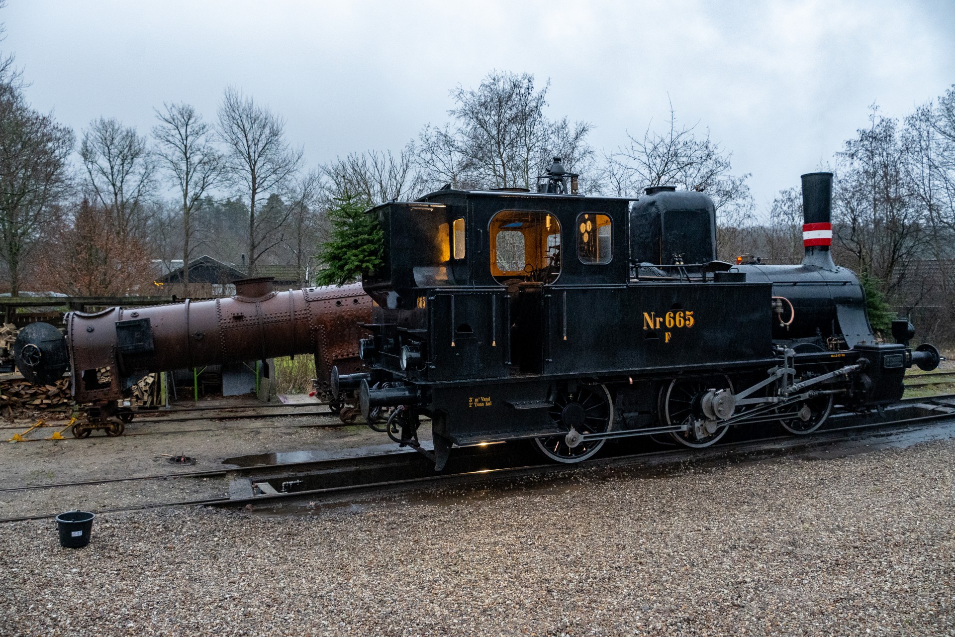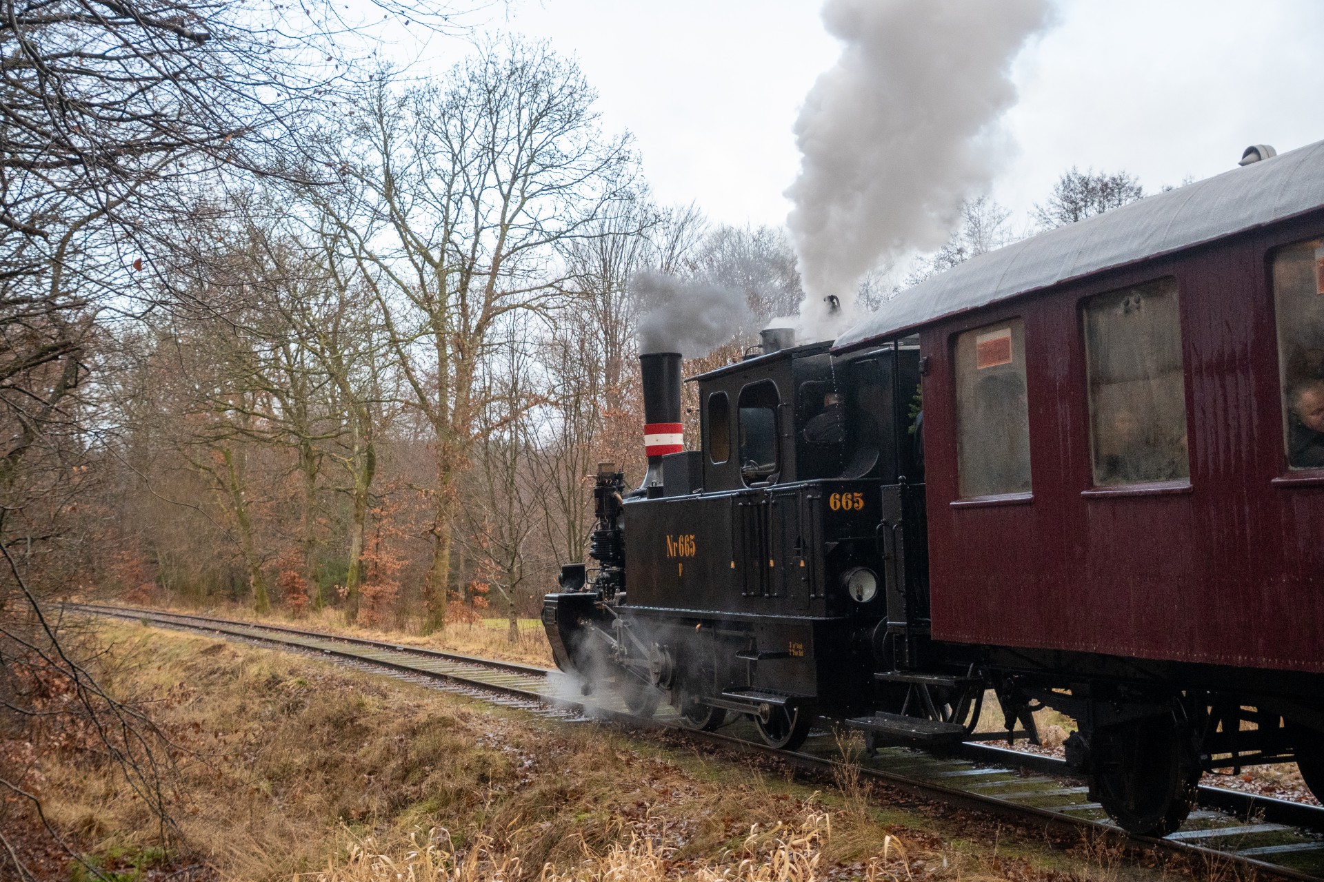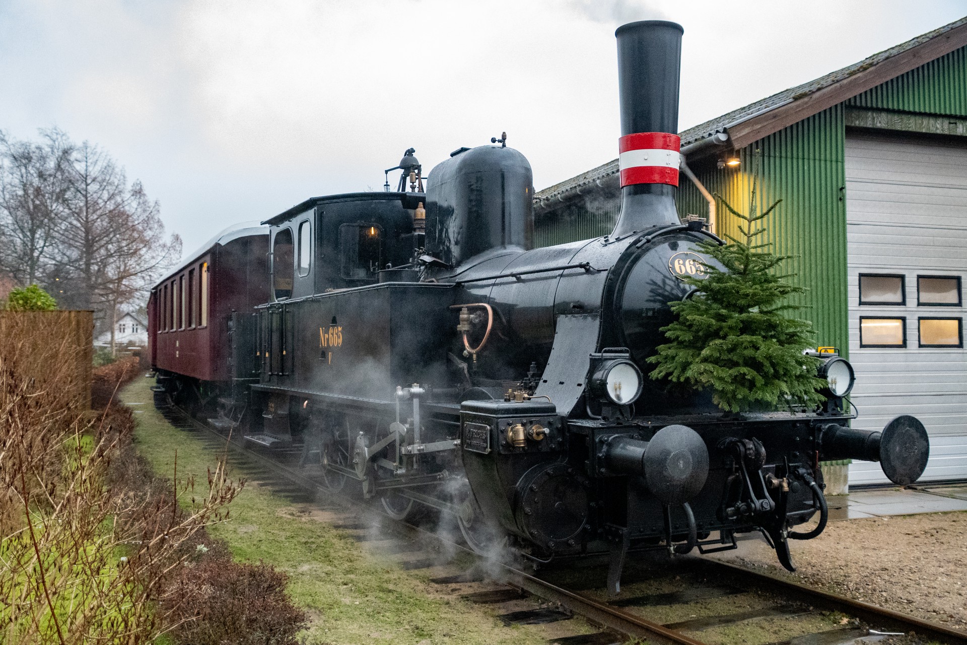 Juletogene blev kørt med damplokomotivet F 665, og jeg var mødt tidligt om morgenen for at se rangeringen af vognene, som blev foretaget af Køf – altid hyggeligt.