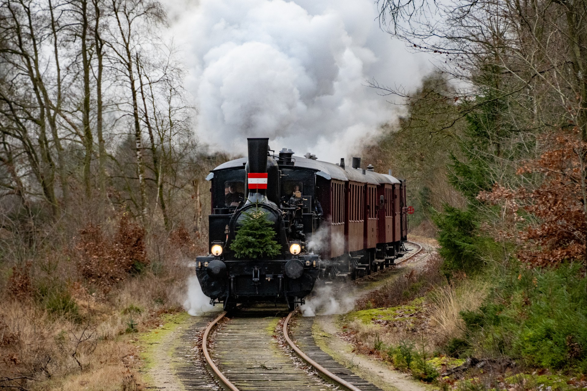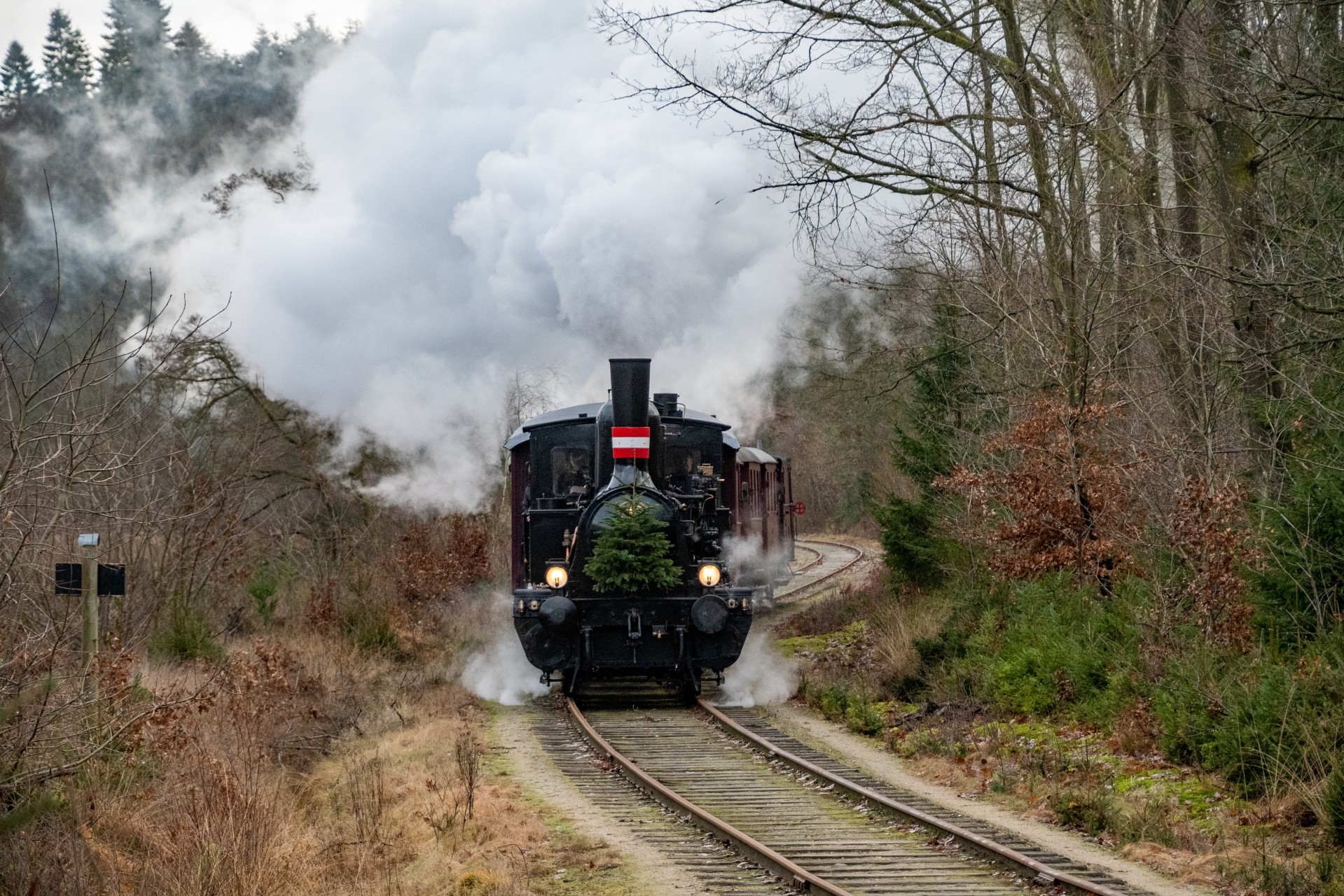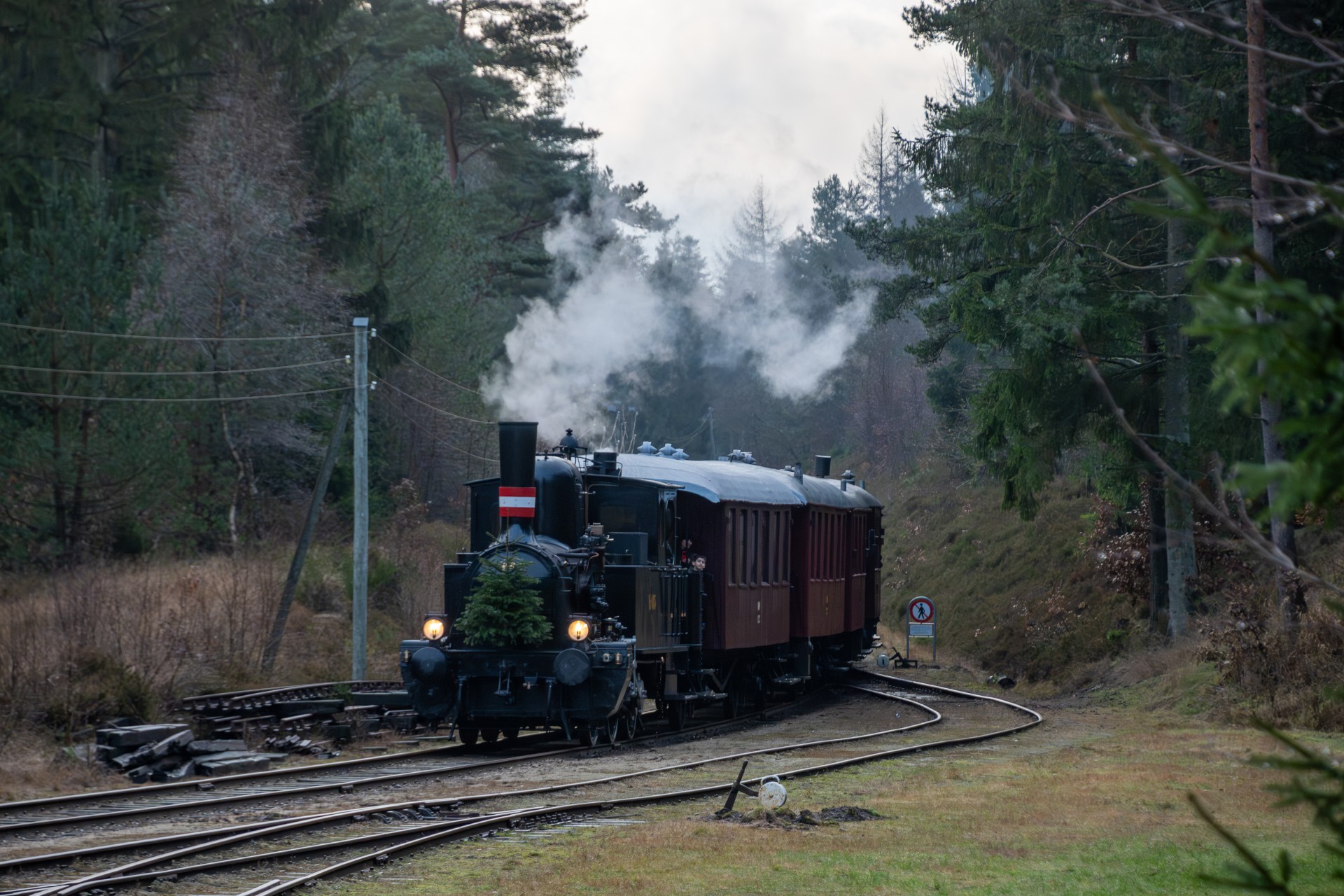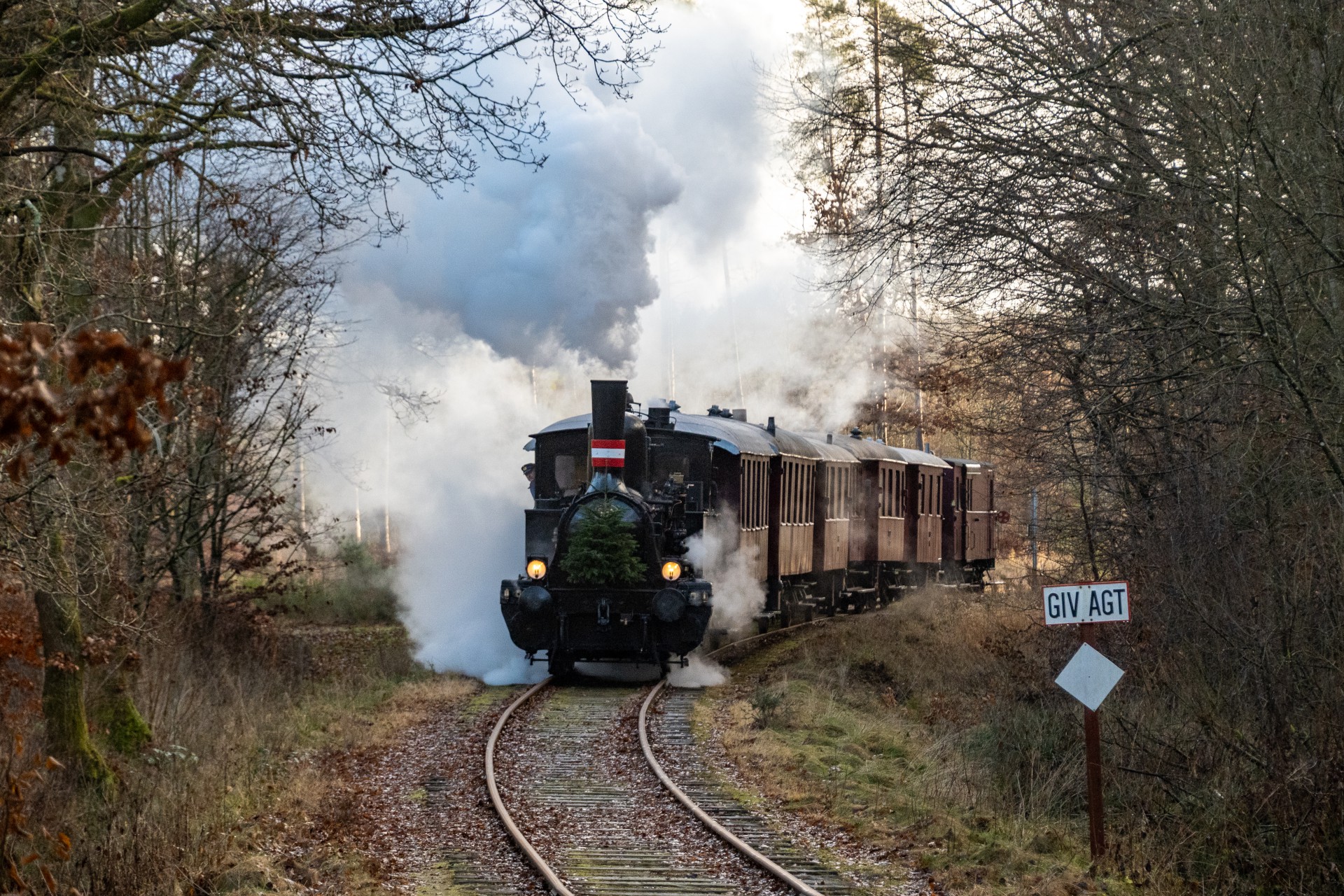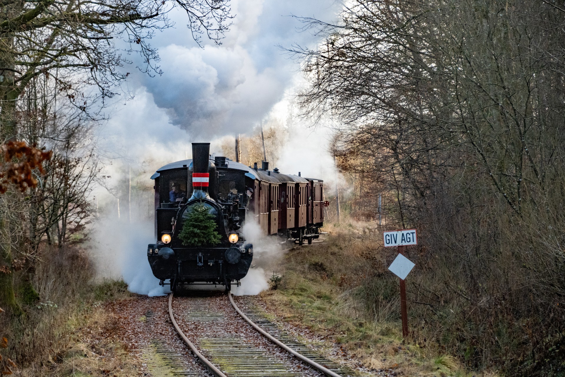 Jeg tjekkede lige, og det er faktisk tre år siden, jeg sidst var afsted for at fotografere juletoget. Dengang var landskabet pyntet med et fint lag sne – det var desværre ikke tilfældet denne gang, men sådan er det jo med vejret.