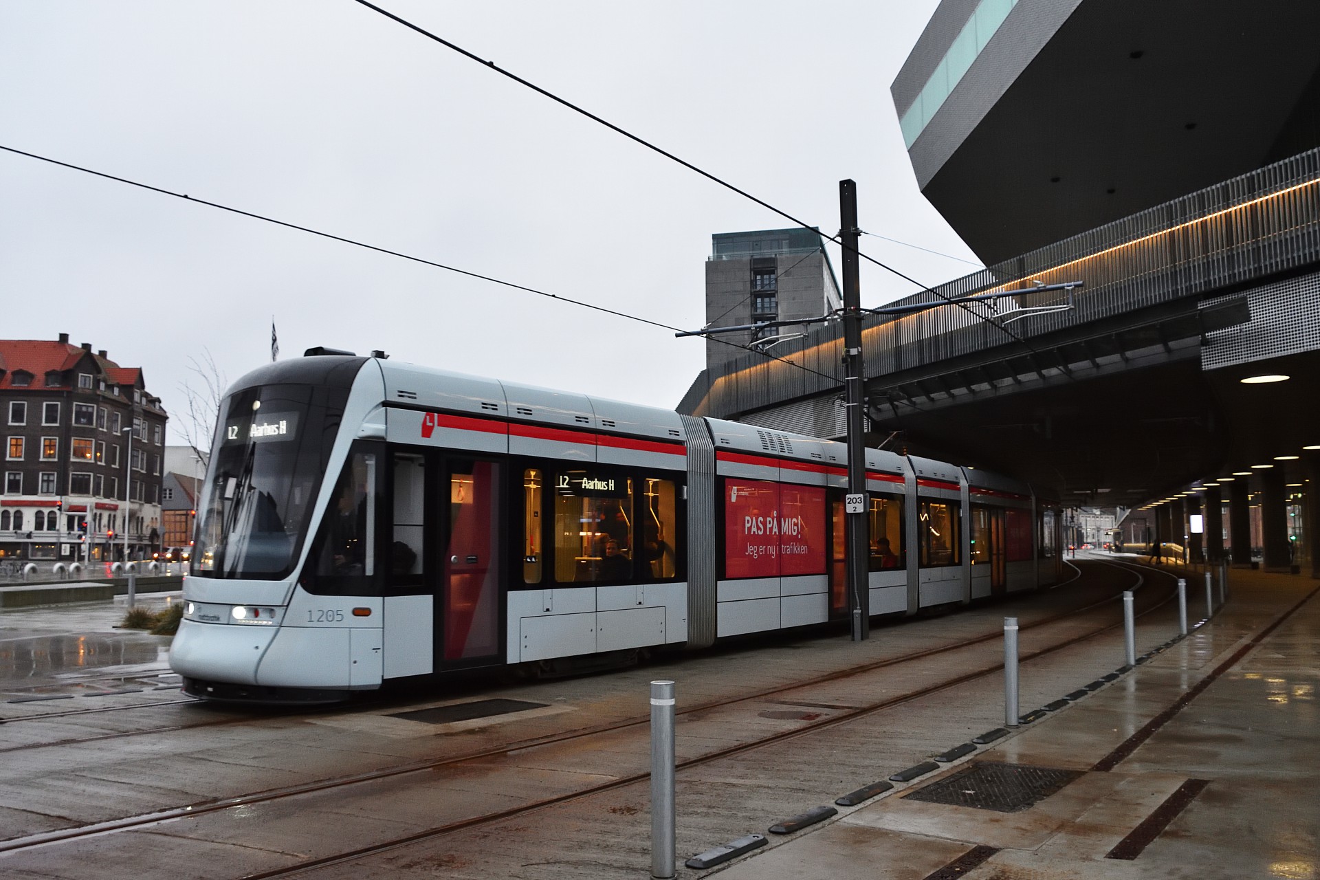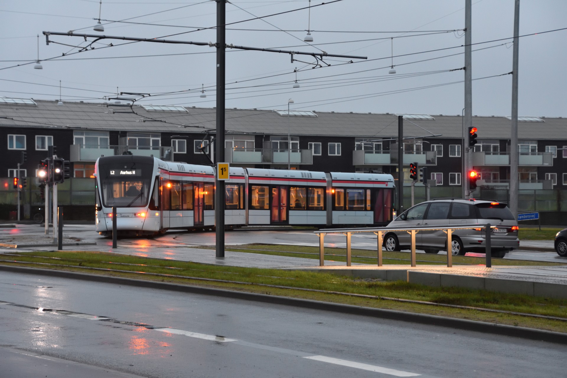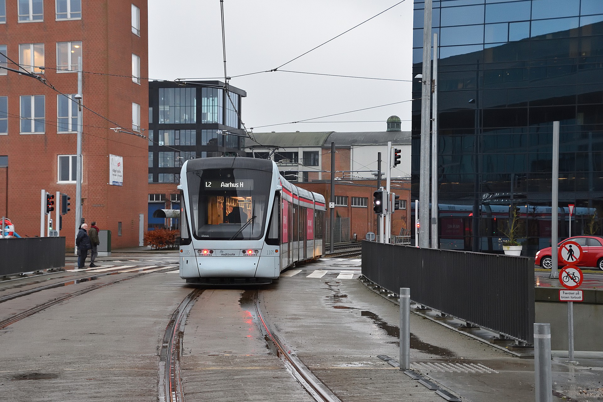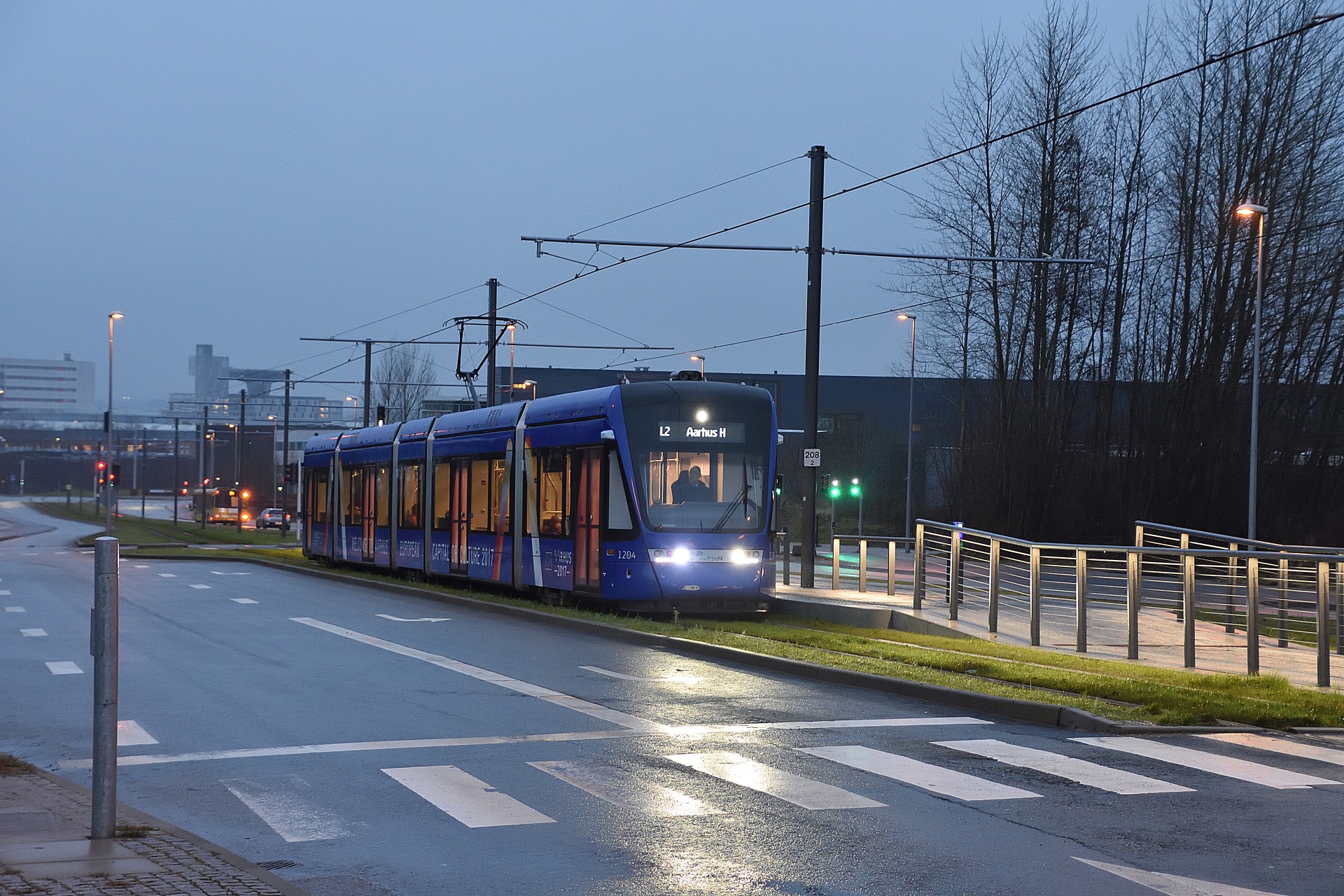 I forbindelse med jeg lørdag den 30. december var fordi Aarhus for at fotografere de 2 ME lokomotiver med de royale vogne, fik jeg også taget et par billeder af Letbanen fra forskellige lokationer.