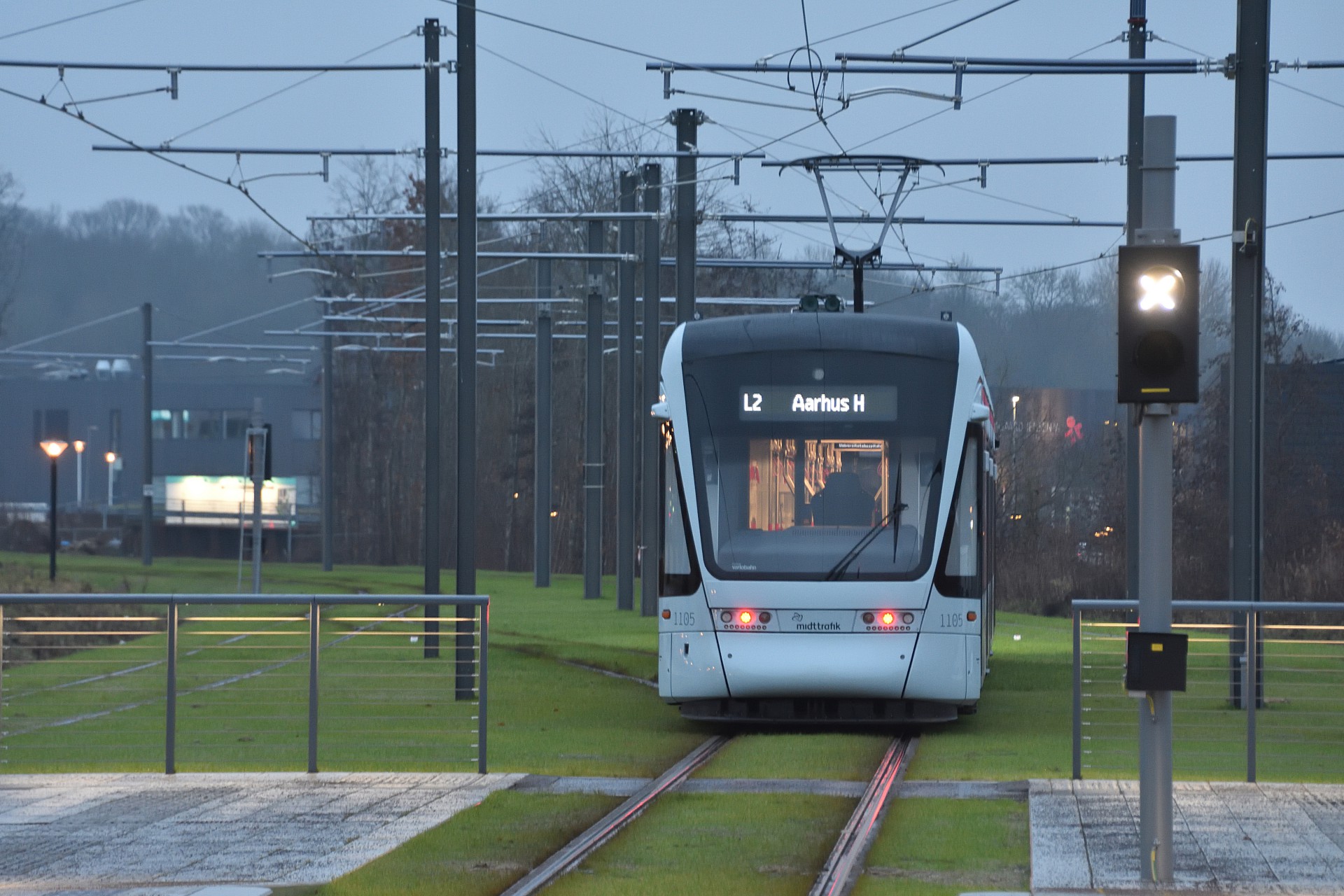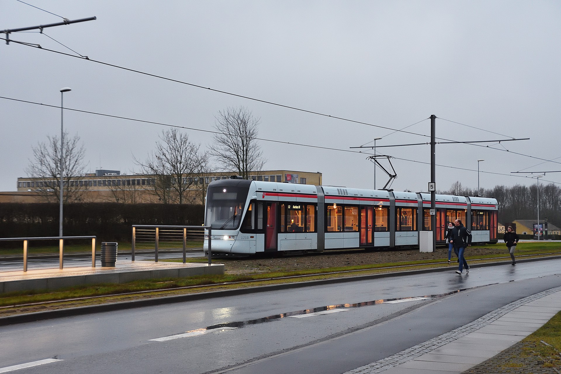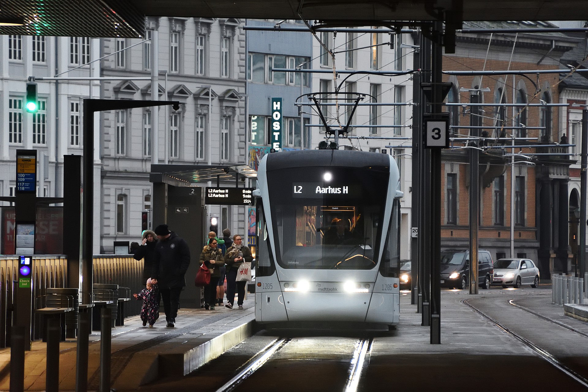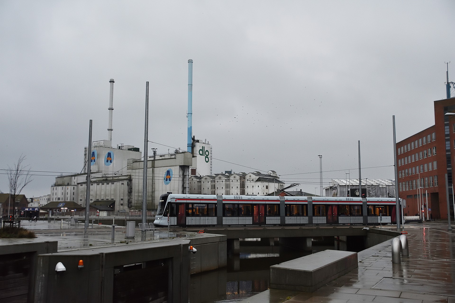 I forbindelse med jeg lørdag den 30. december var fordi Aarhus for at fotografere de 2 ME lokomotiver med de royale vogne, fik jeg også taget et par billeder af Letbanen fra forskellige lokationer.