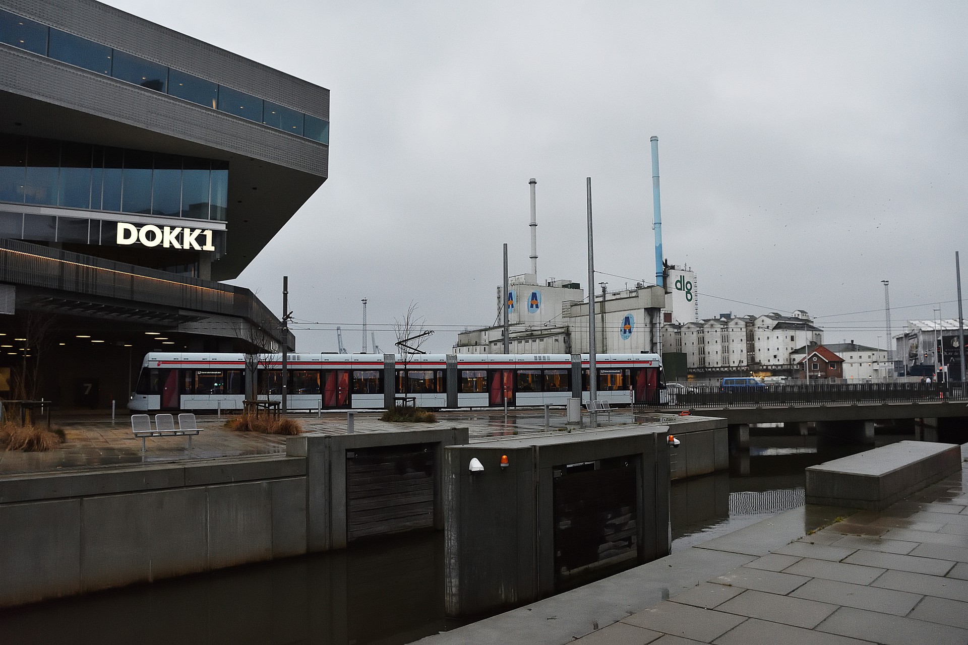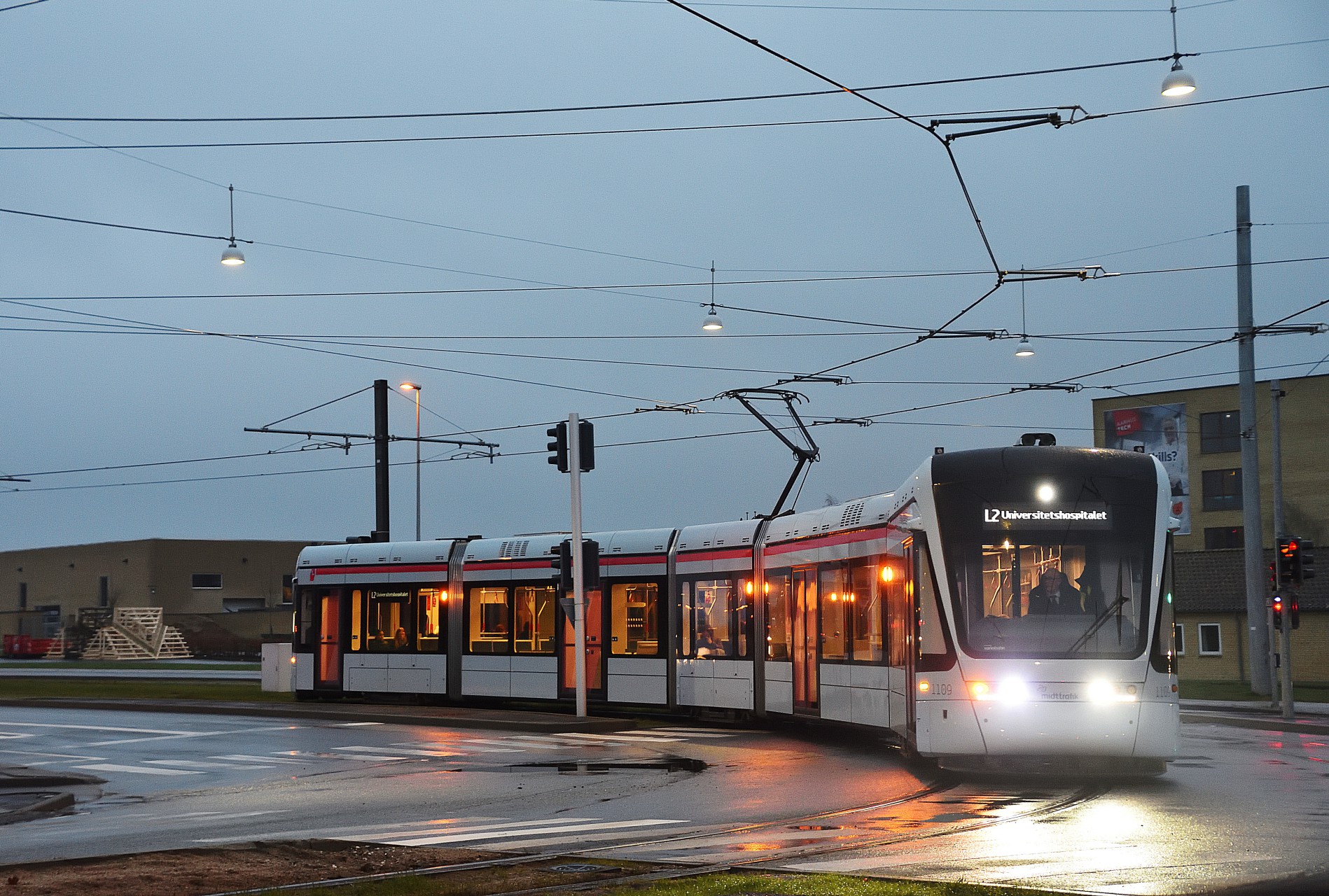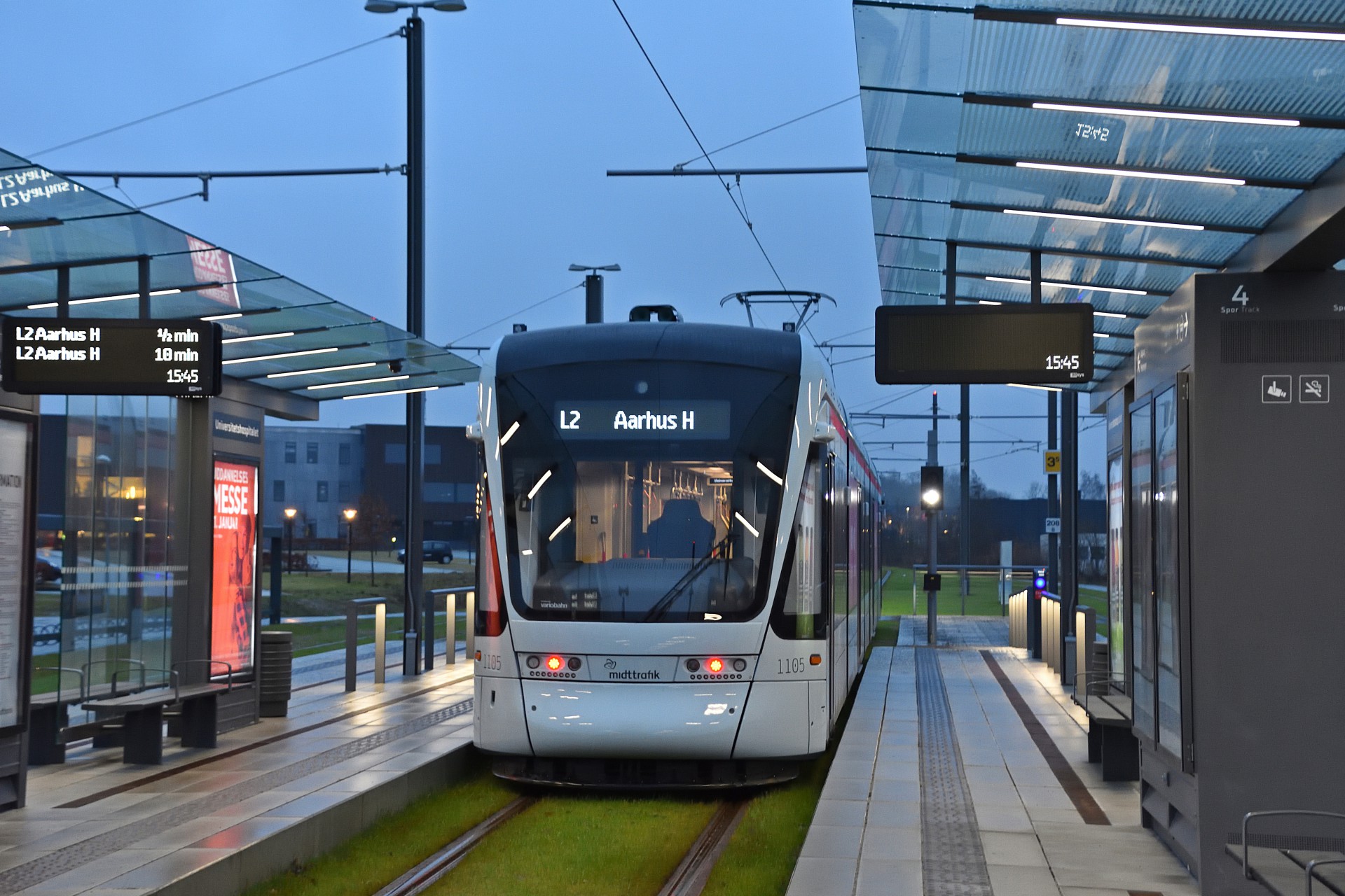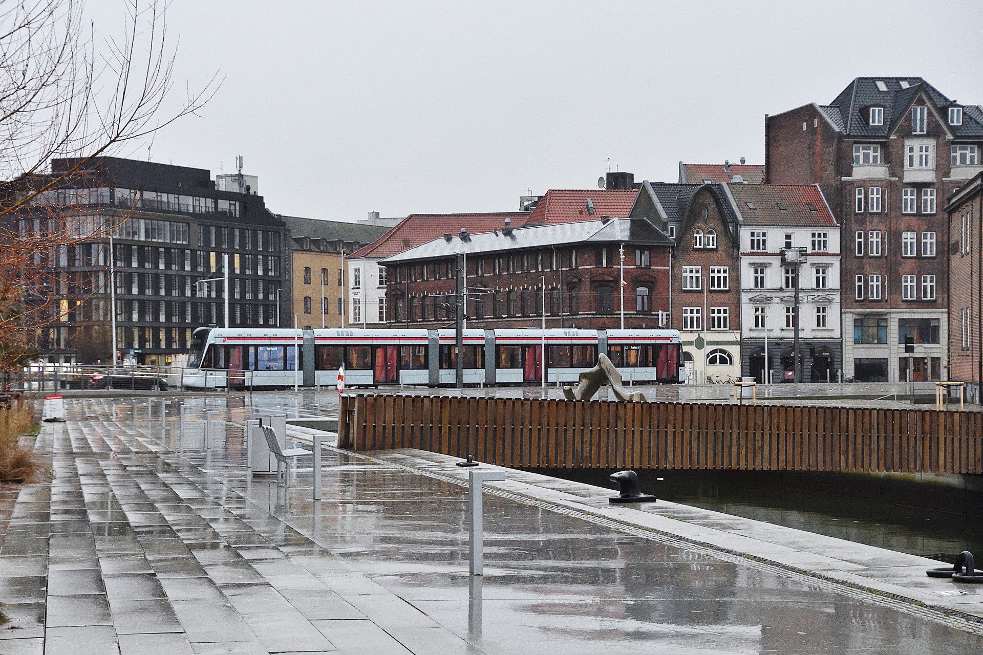 I forbindelse med jeg lørdag den 30. december var fordi Aarhus for at fotografere de 2 ME lokomotiver med de royale vogne, fik jeg også taget et par billeder af Letbanen fra forskellige lokationer.