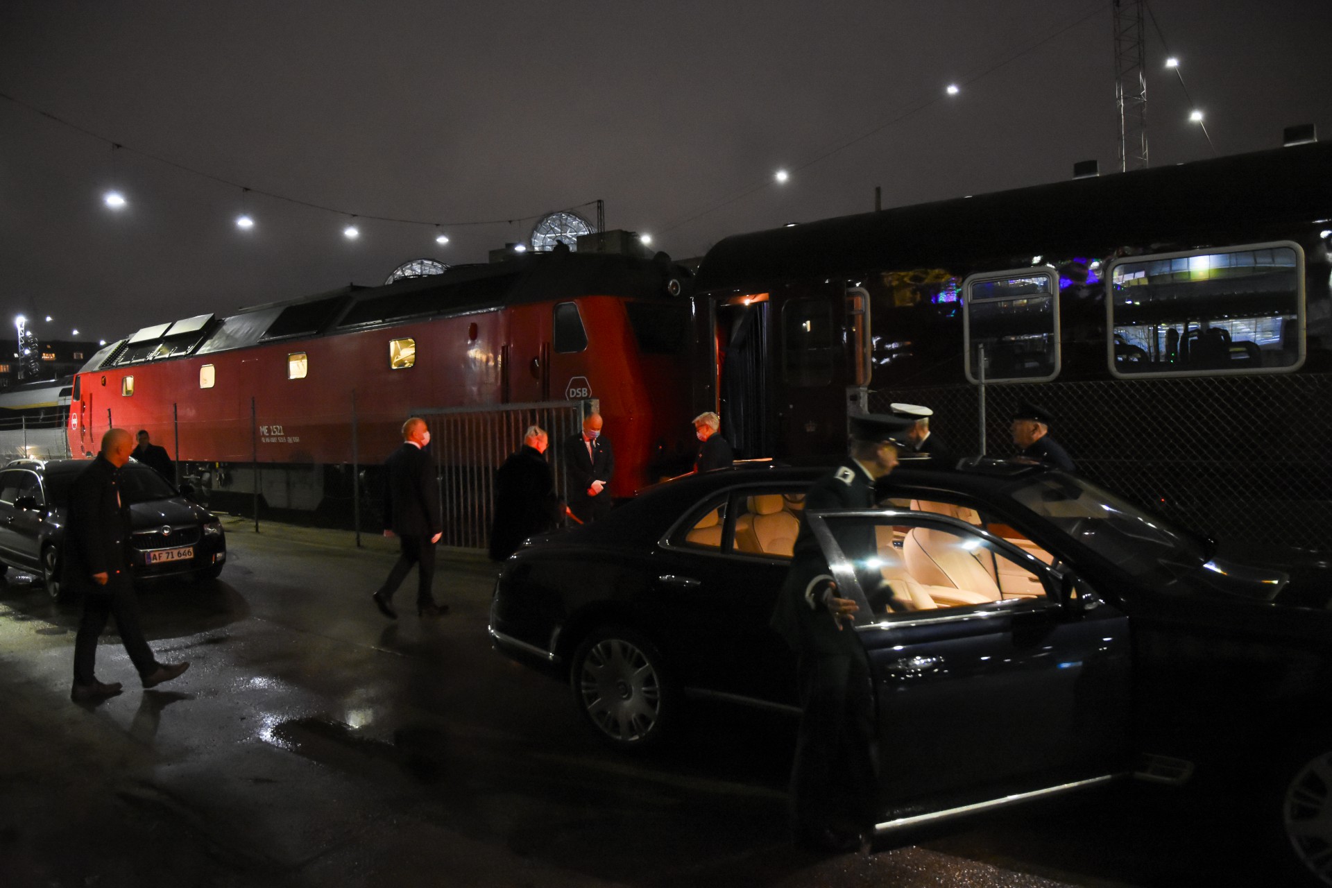 Herefter diverse billeder fra Aarhus efter ankomst, samt da Hendes Majestæt Dronning Margrethe II ankom til toget i Krone 121.