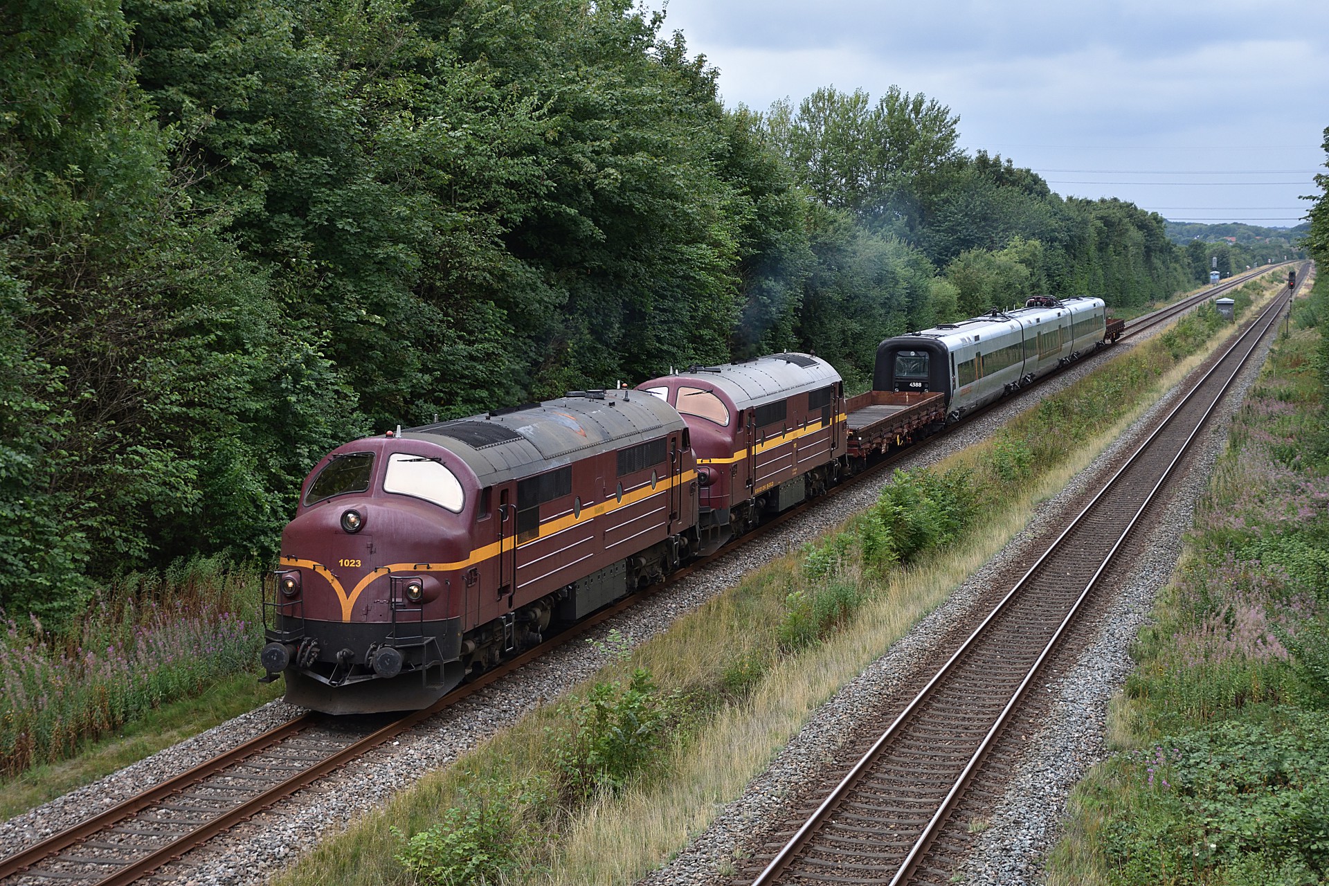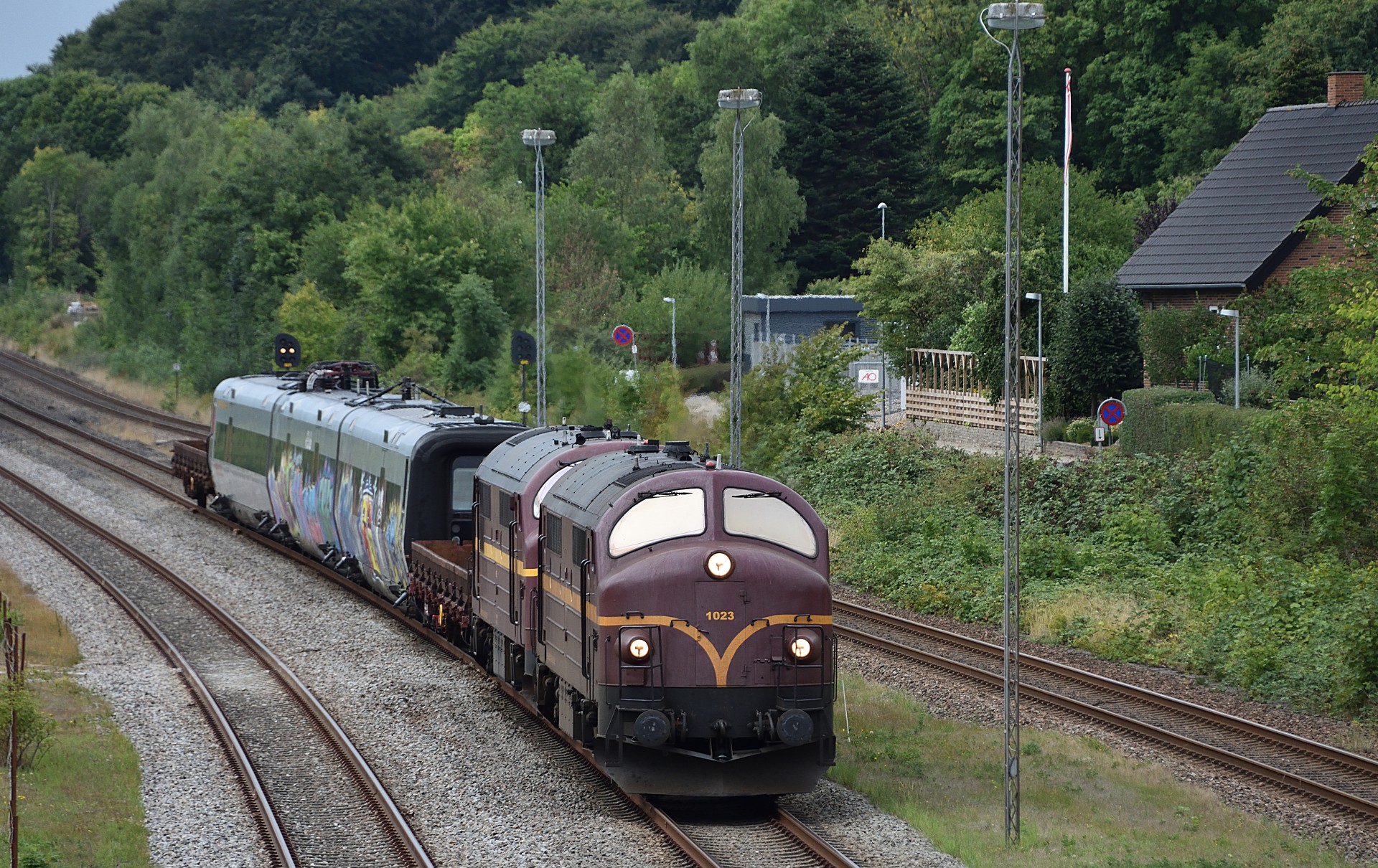 Tirsdag den 14. august kørte MX 1023 + MX 1029 en tur til Aarhus for at hente ET 4405 som skulle retur til Helgoland. Jeg nåede desværre ikke at fange MX 1023 + 1029 solo mod Aarhus, men på vej retur med ET på krogen fik jeg ved Hasselager det fotograferet, samt lidt normalt materiel. Onsdag den 15. august trak MX 1023 + 1029 så ET 4388 til Aarhus fra Helgoland. Toget blev fanget i Hørning, Hovvejen ved Hasselager blev det også lige til, da der var overhaling i Hørning. Over middag blev retur løbet også fanget ved Skanderborg – Gl. Randersvej.