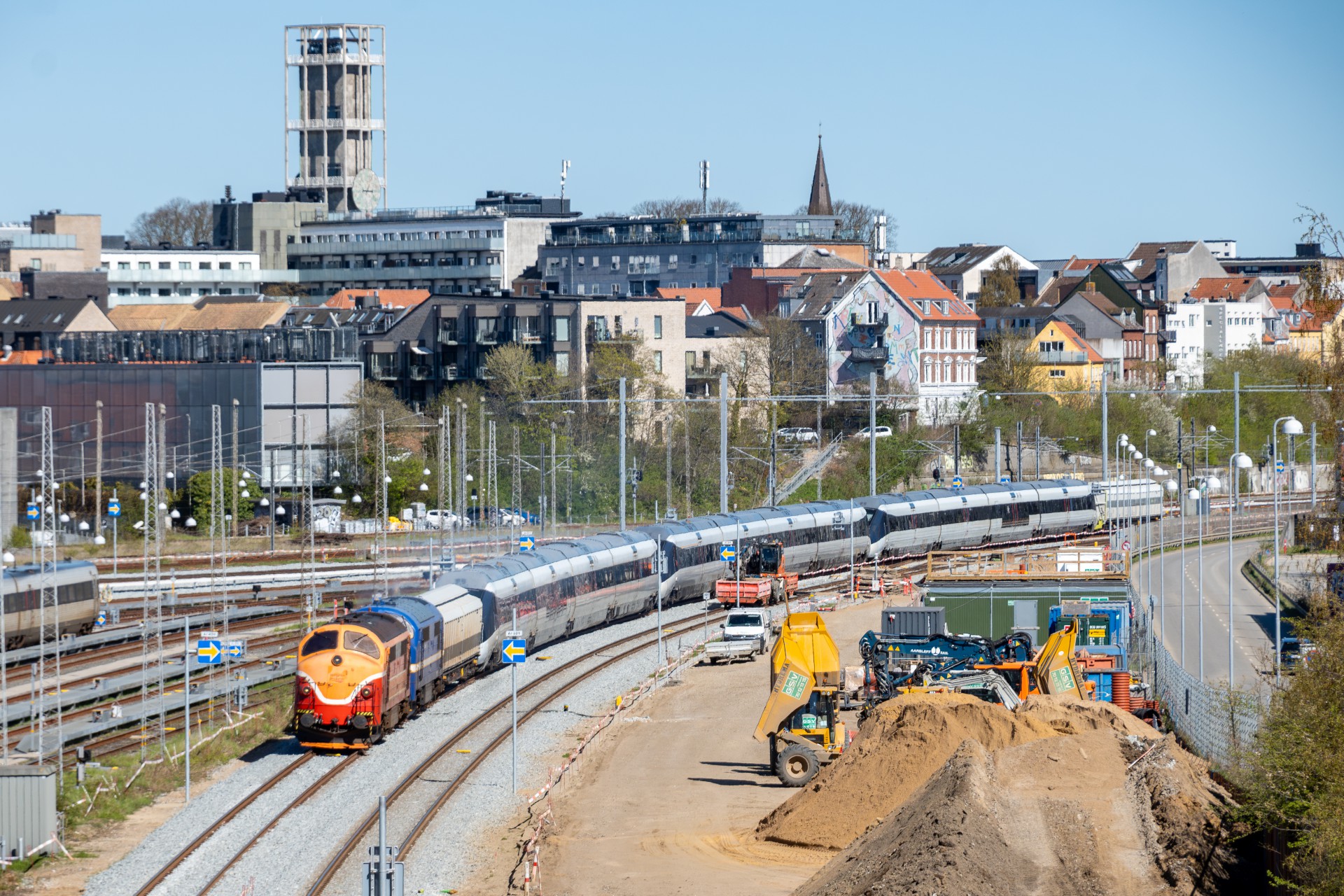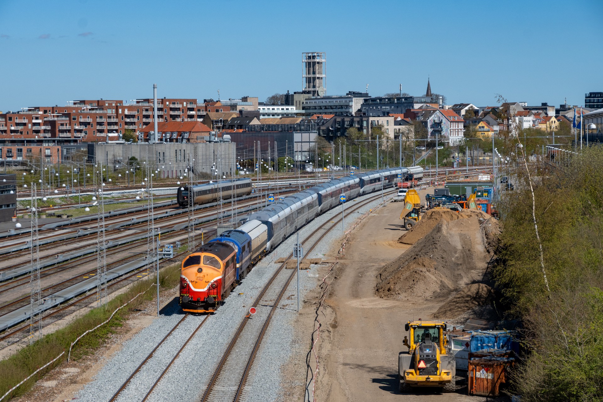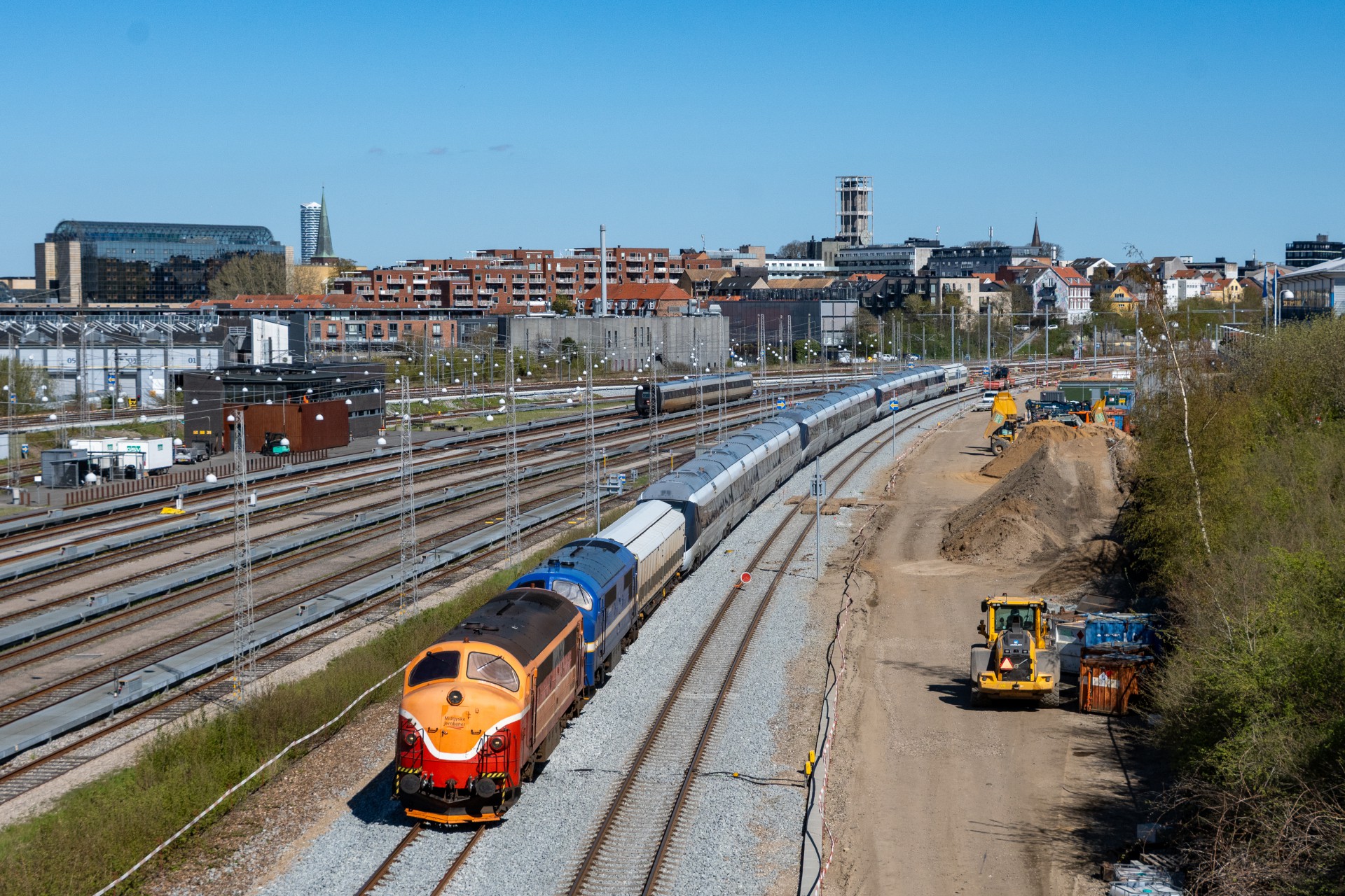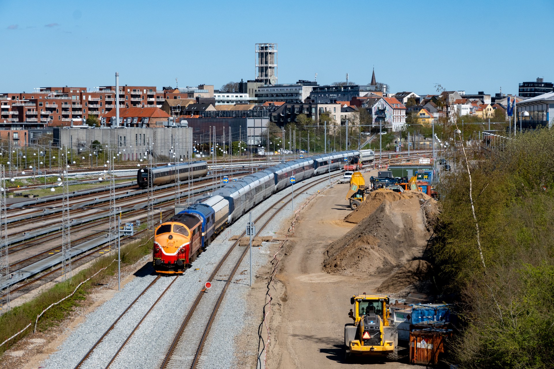 Fredag den 24. april kørte Contec Rail en ekstra transport af IC4 fra Aarhus til Fredericia, og dette blev kørt hele vejen i dagslys, da der køres fra Aarhus omkring 14.45. Jeg tilbragte tiden på Ringgadebroen og fik lidt forskellige af der blev rangeret og afgangen mod syd.
