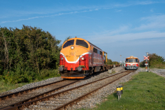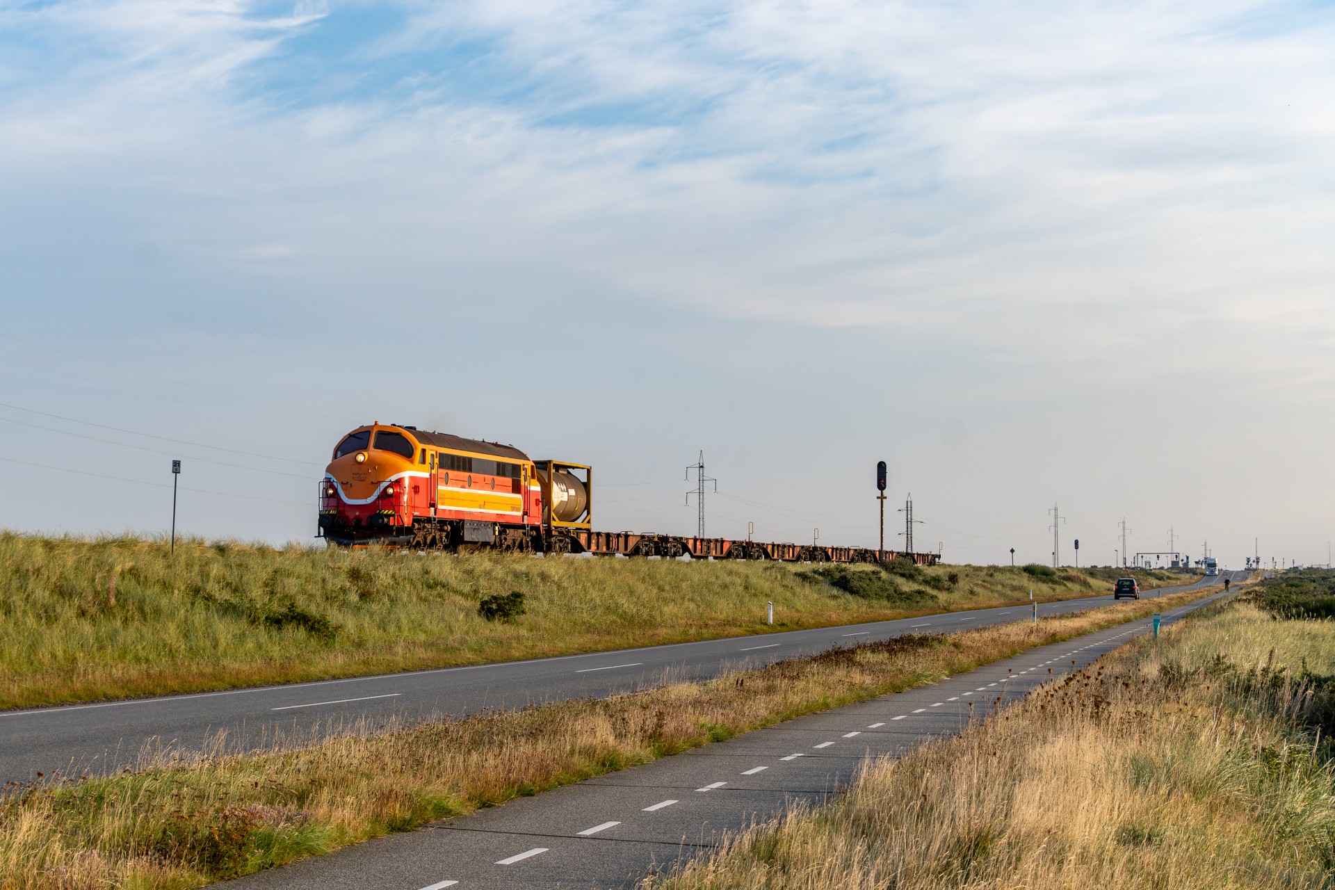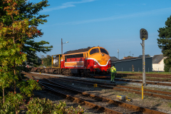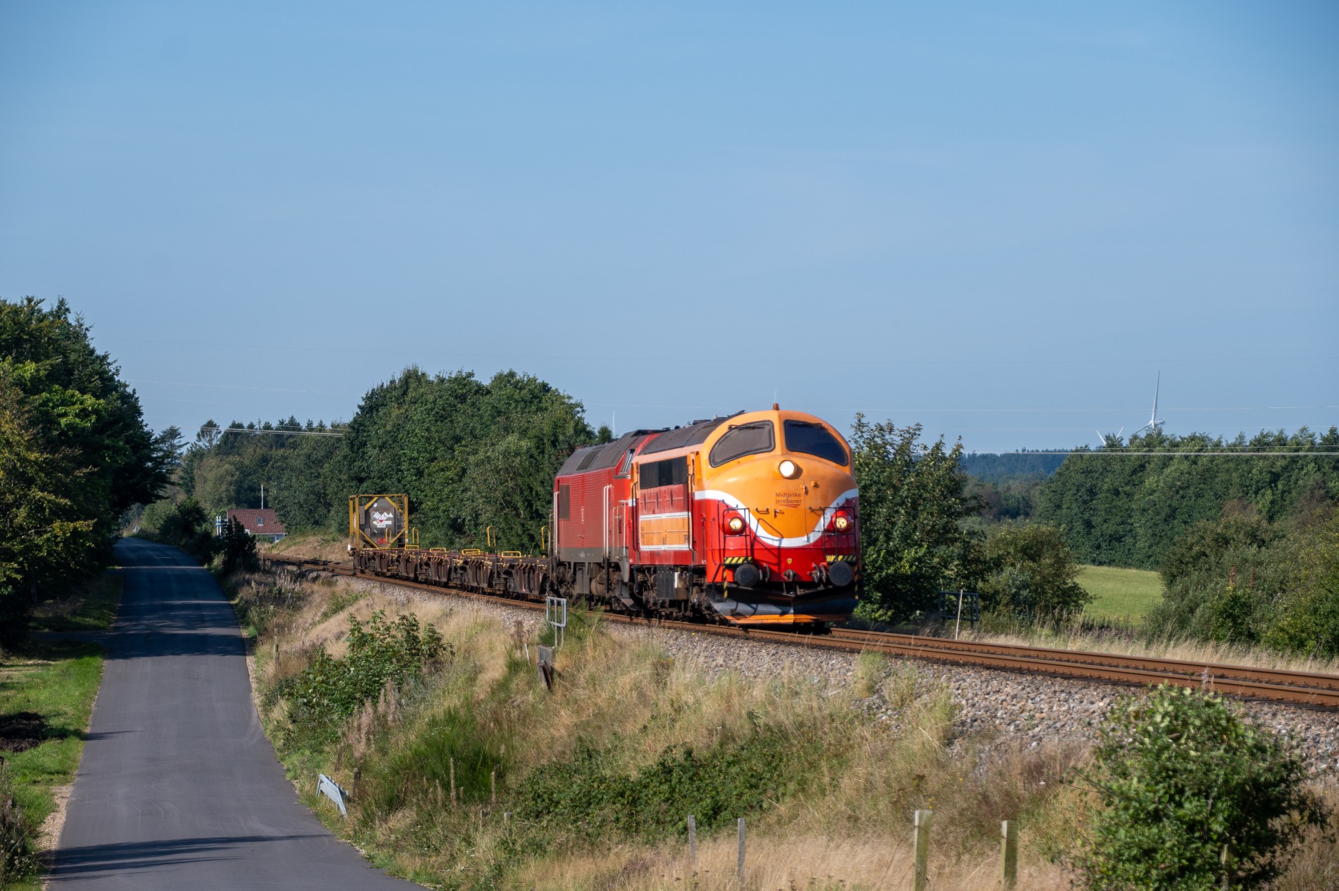 Onsdag morgen den 28. august kørte DB Cargo godstoget fra FMC, og denne gang var det med Tørfisken i front – helt fra Rønland. Tørfisken ses først ved FMC på denne flotte sensommer morgen, og ses herefter afgå fra Rønland. I Strande foretages der krydsning med Y-toget på vej mod Thyborøn. Herefter køres der mod Lemvig, hvor der foretages omløb, og MZ 1457 kobles mellem de 4 vogne og Tørfisken. Herefter ses toget lidt før Bækmarksbro, kort efter Vemb, ved indkørsel til Skjern, og så lige før Kibæk, hvor der blev foretaget endnu en krydsning. Herefter ses toget lidt efter Studsgård, og i Herning blev der så optaget en række lukkede vogne. Til slut ses toget lige før Kølkær og i Grejsdalen ved Vejle.