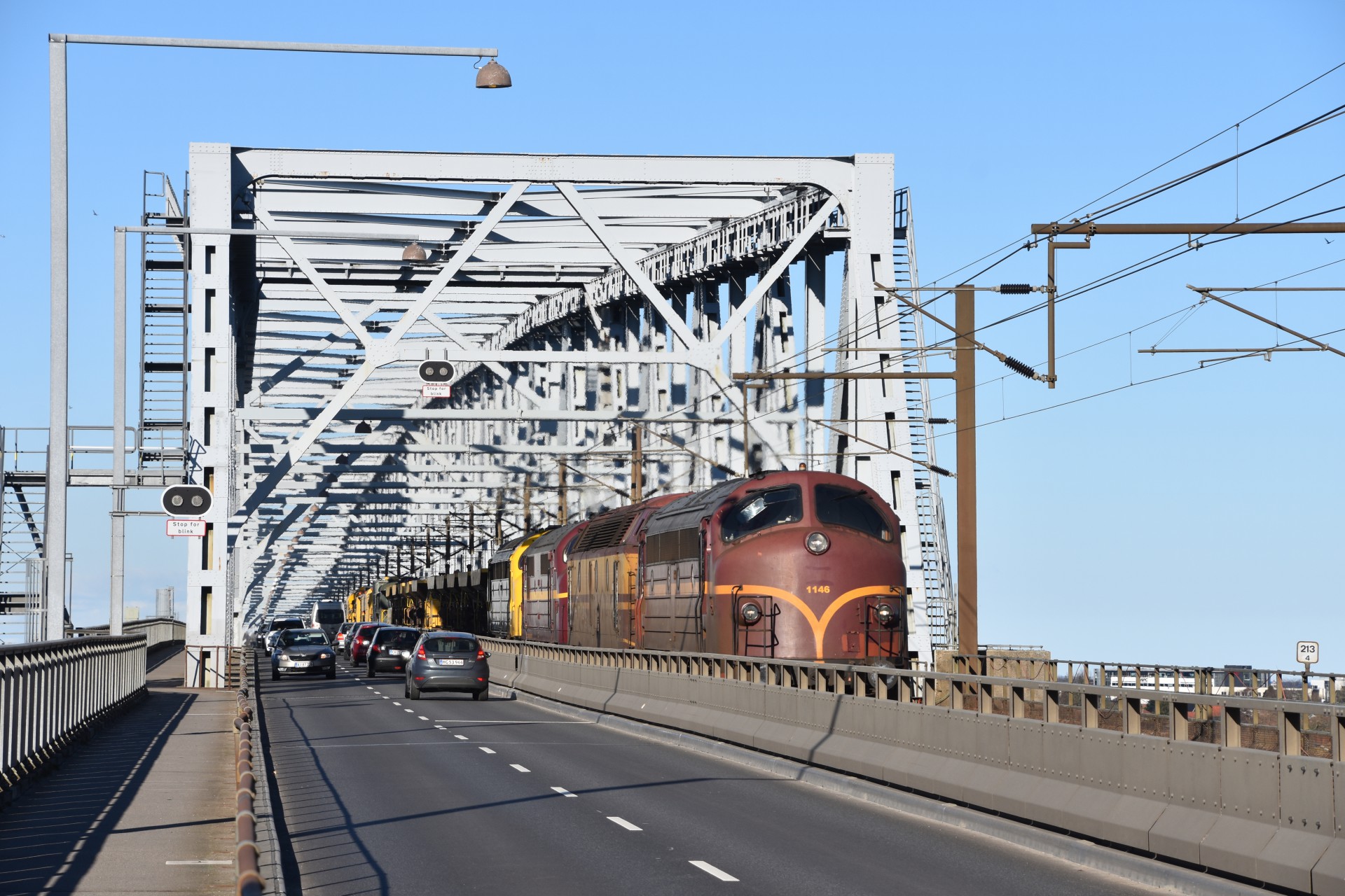 Så kørte jeg ellers nord på, nærmere bestemt lidt nord for Sommersted. Steder var ikke helt optimalt i forhold til solen, men da jeg ikke så kendt syd på, i forhold til gode fotosteder, måtte det gå an. Efter toget var passeret her, kørte jeg videre mod Lillebæltsbroen, hvor solen til gengæld stod perfekt, og det blev til nogle fine billeder.
