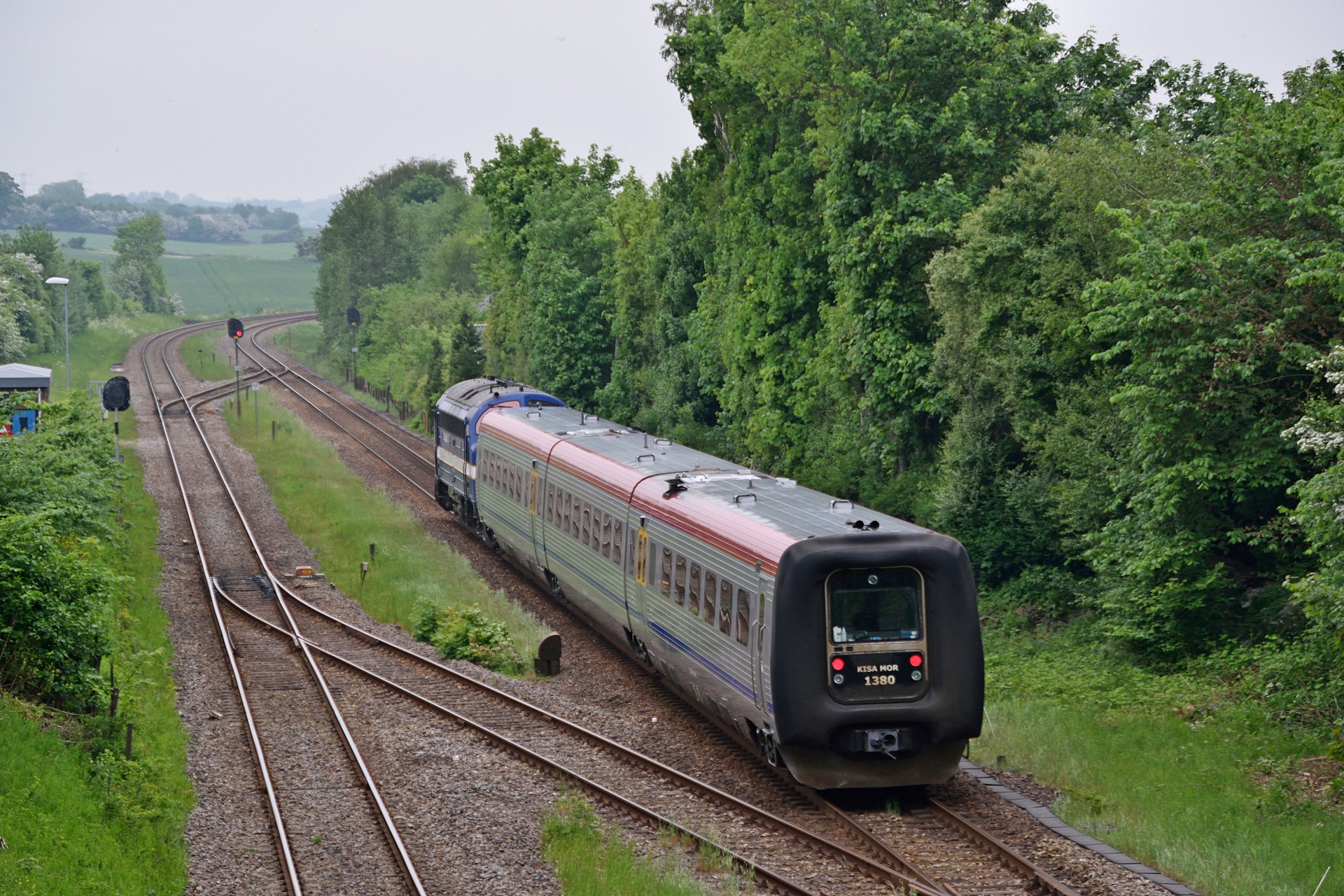 Mandag den 29 maj var jeg et smut forbi både Hørning og Mundelstrup, da jeg regnede med at fange tagplade toget som havde været i Aalborg. Desværre var det kørt 1 time senere, så jeg besluttede mig for istedet at se om jeg kunne fange det ved Mundelstrup. Men sådan gik det ikke, da det kom forbi før jeg ankom der til, men det fandt jeg først ud af senere. Istedet var jeg heldig at fange MY 1153 med et Svensk IC3 sæt (SJ Y2 – 1380 Kisa Mor), men desværre stod jeg i den forkerte side på broen, så det blev kun til bagenden.