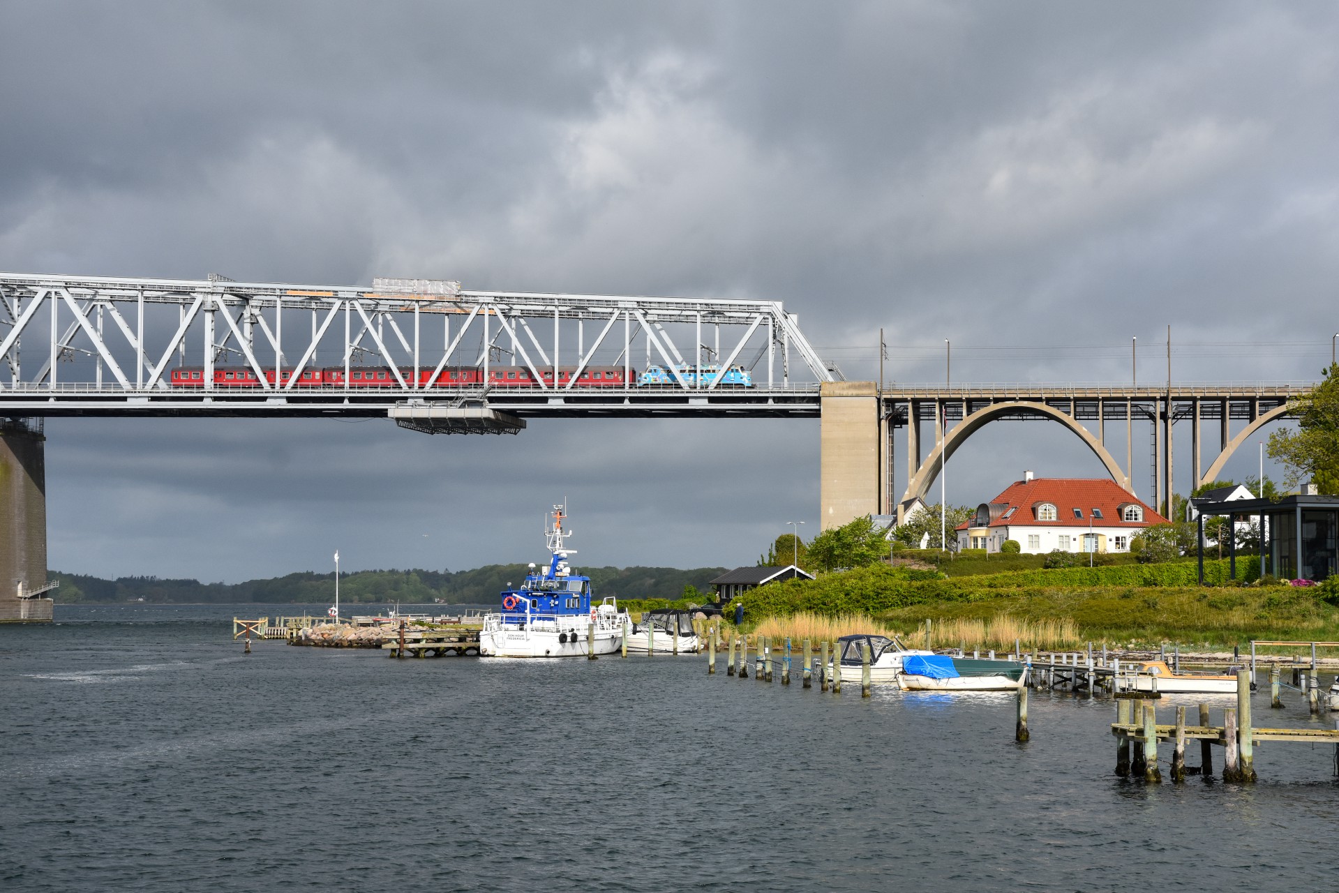Jeg startede ud med at følge toget fra Snoghøj(Den Gamle Lillebæltsbro), og dagen startede godt ud med at toget passerede broen i flot solskin, med nogle ellers noget truende skyer i baggrunden.