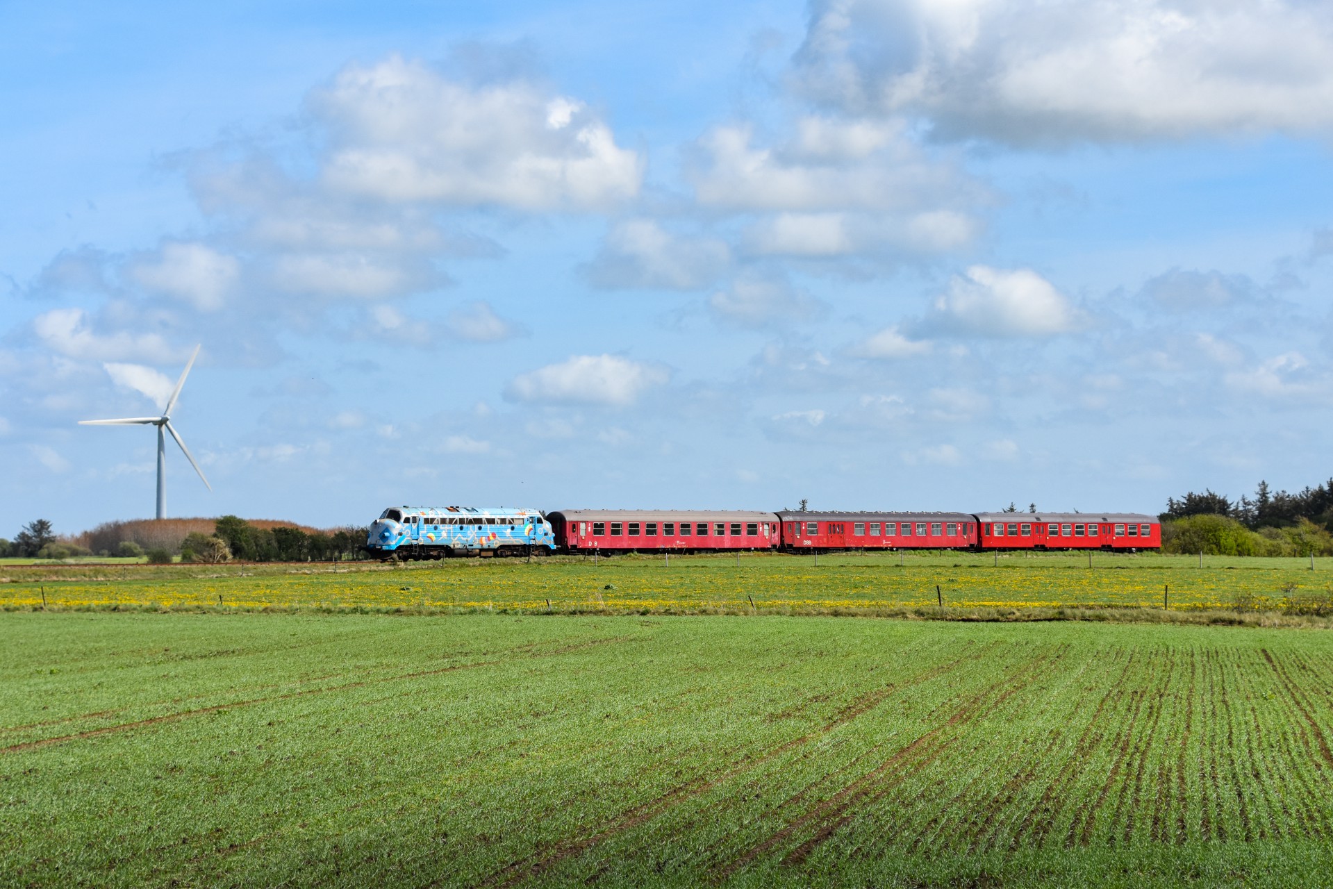 Derefter var der en god times tid til at der igen skulle køres mod Tønder, så tiden blev brugt på at udforske om der var nogen raps marker der var op af banen. Det lykkes heldigvis at finde en, og her fra blev det til et par billeder, da toget igen kørte mod Tønder. Herefter et par billeder af toget på vej mod nord ved et lille hus ude på landet.