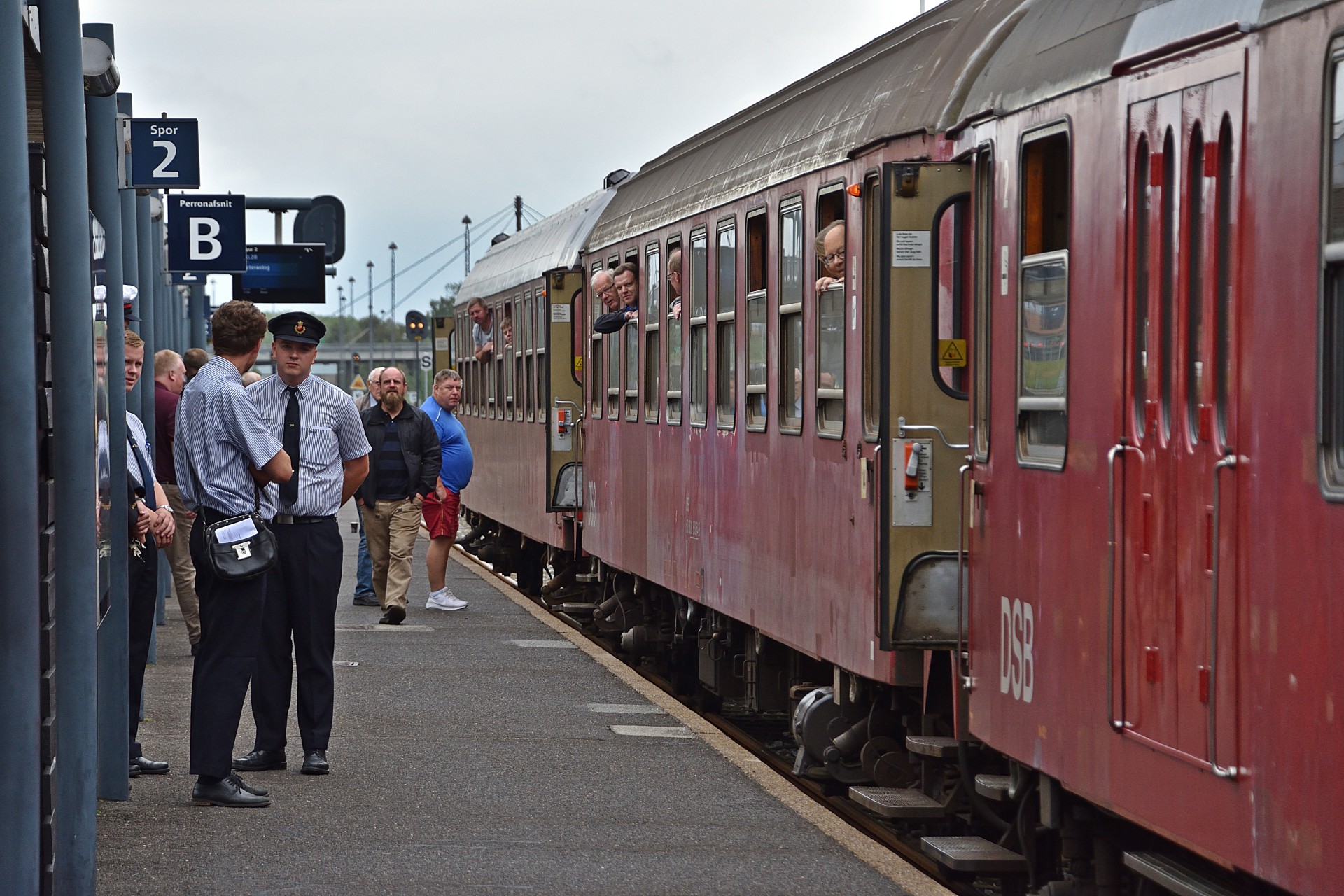 Så istedet blev en hurtig nødplan igangsat. Jeg kørte bilen til Ribe, hvor min ven Enrico, som jeg plejer være på MY Veterantog sammen med, samlede mig op, og så gik turen ellers i fuld fart mod Fredericia, så vi kunne nå at ankomme inden toget kørte der fra. Vi nåede heldigvis frem i fin tid, godt 15 min før MY Veterantog kom rullende ind på perronen lidt i 9.