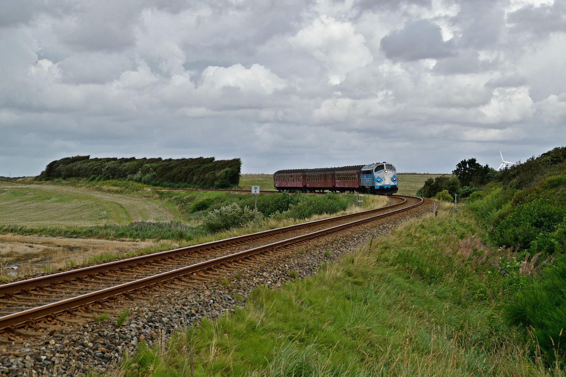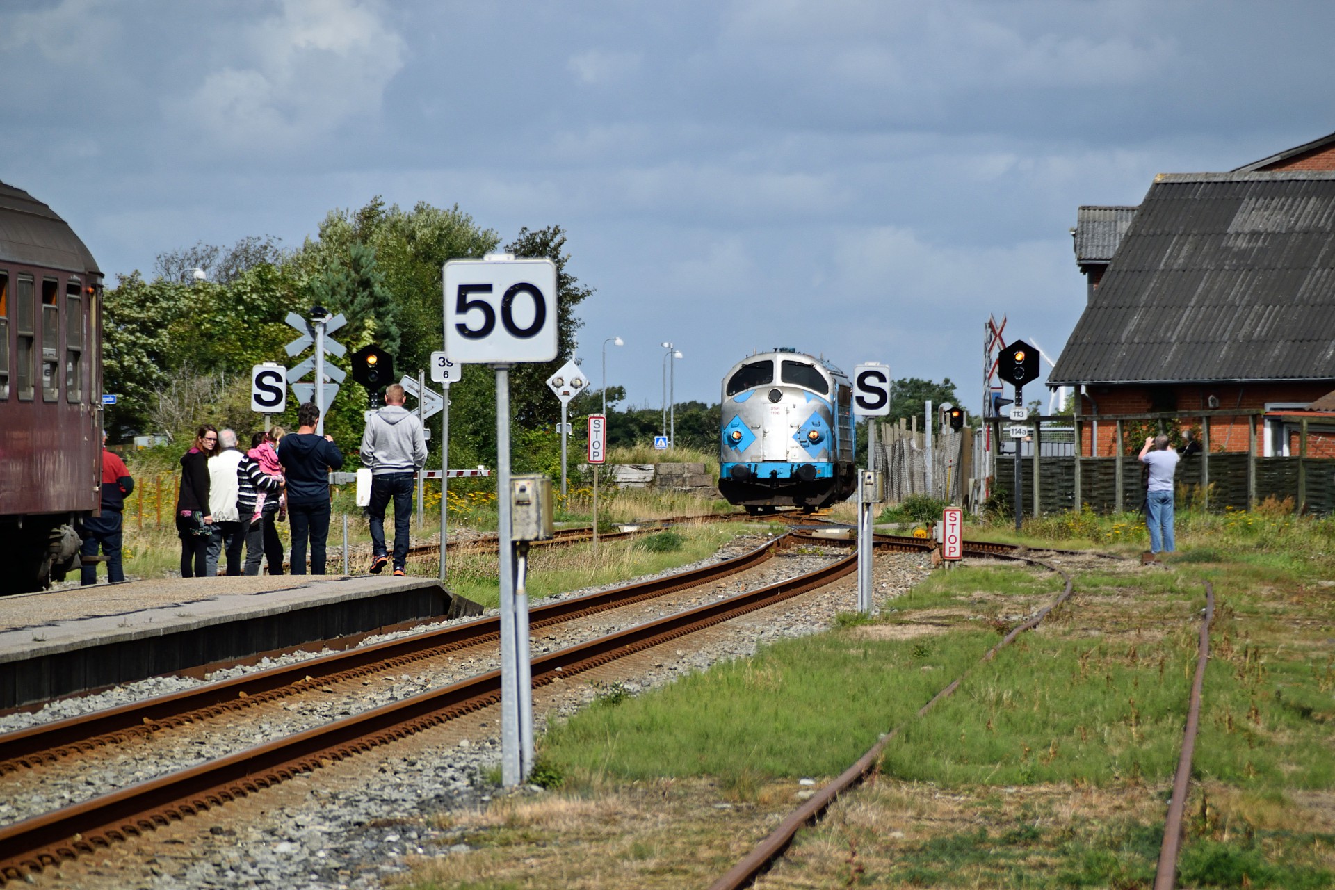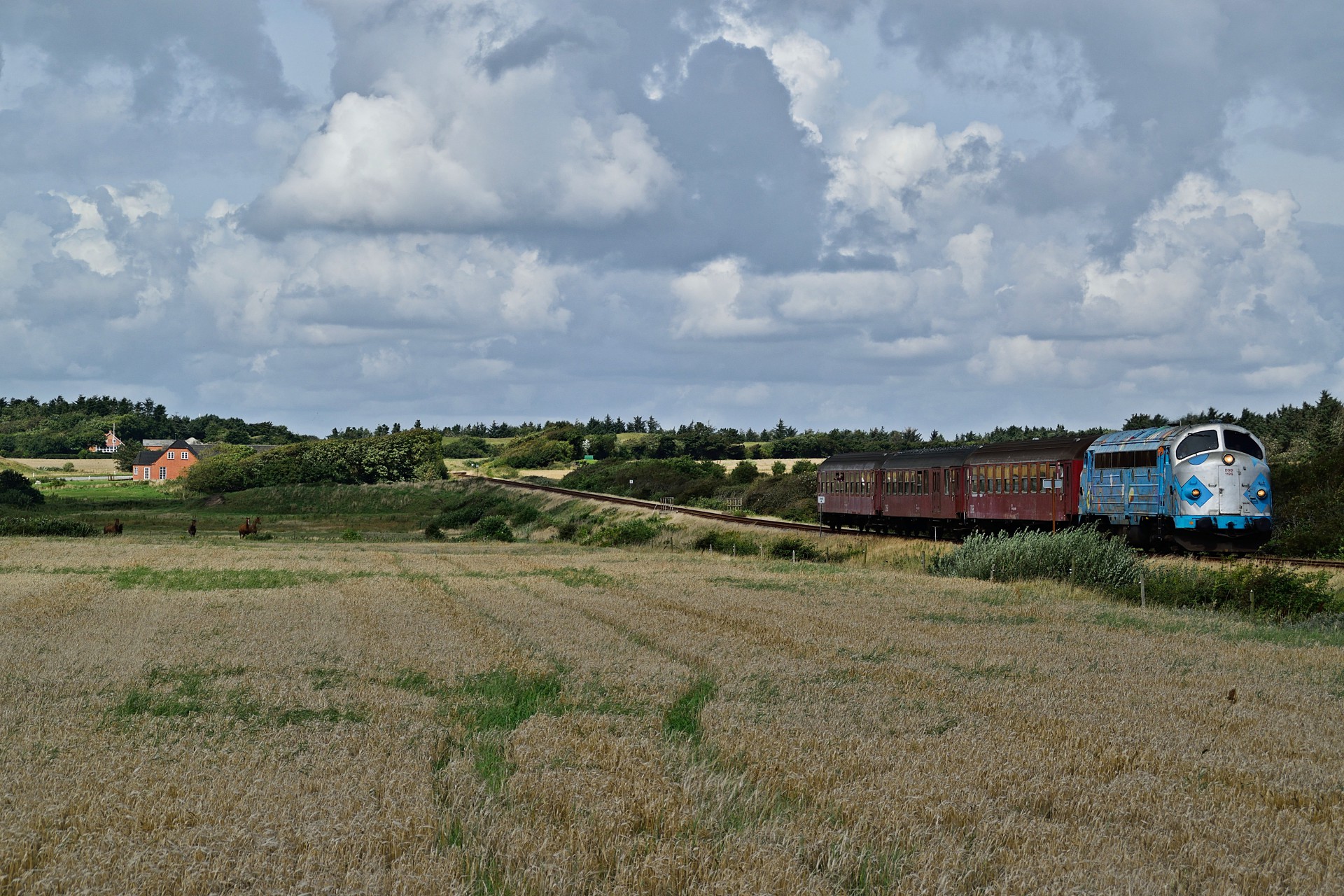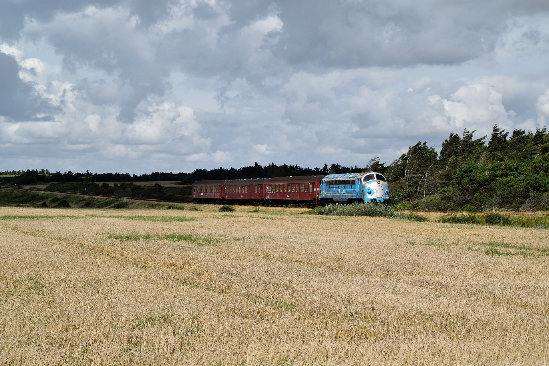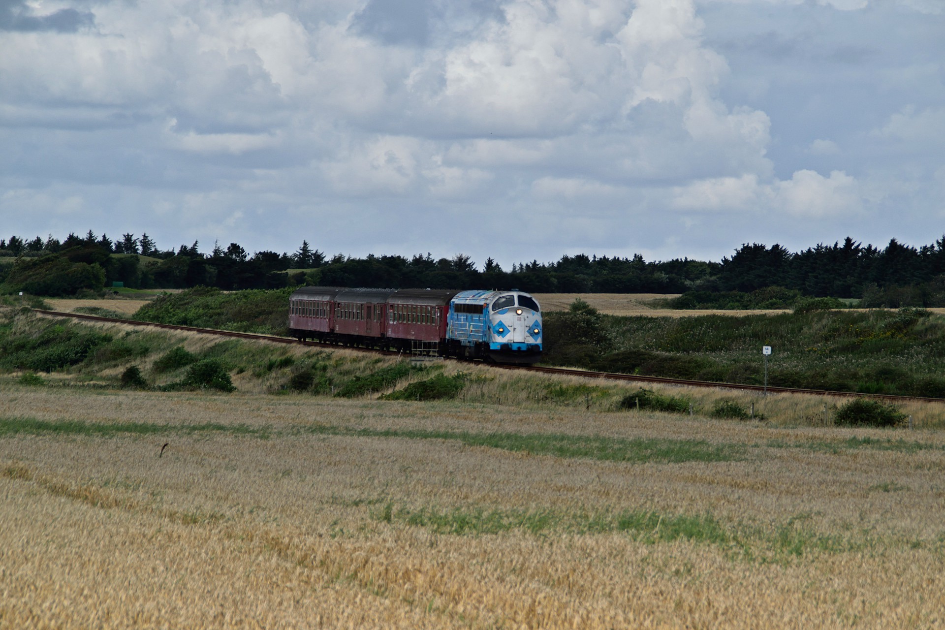 Lørdag den 19. august stod den på Jyllandstur med MY Veterantog, og i år gik turen til Struer, og herefter med mulighed for at køre en tur til Hurup Thy. Da familien og jeg var i sommerhus godt en times kørsel fra Struer i denne weekend, besluttede jeg mig for at køre i bil til Struer, og herefter tage IC Lyn til Vejle. Fra Vejle stod jeg så på MY Veterantog´s tog og som flere af de tidligere Jyllands ture startede rejsen fra Odense, men jeg valgte Vejle da jeg ellers skulle have været endnu tidligere oppe for at nå det. Efter påstigning af toget blev der uddelt den bestilte morgenmad, og det var muligt at købe diverse forplejninger fra salgsvognen. Fra Vejle gik turen så videre til først Herning og senere Holstebro, indtil vi ankom til Struer. Undervejes var det muligt et par gange at komme ud og få et par billeder i kassen, da der skulle laves krydsninger med andre tog på strækningen.