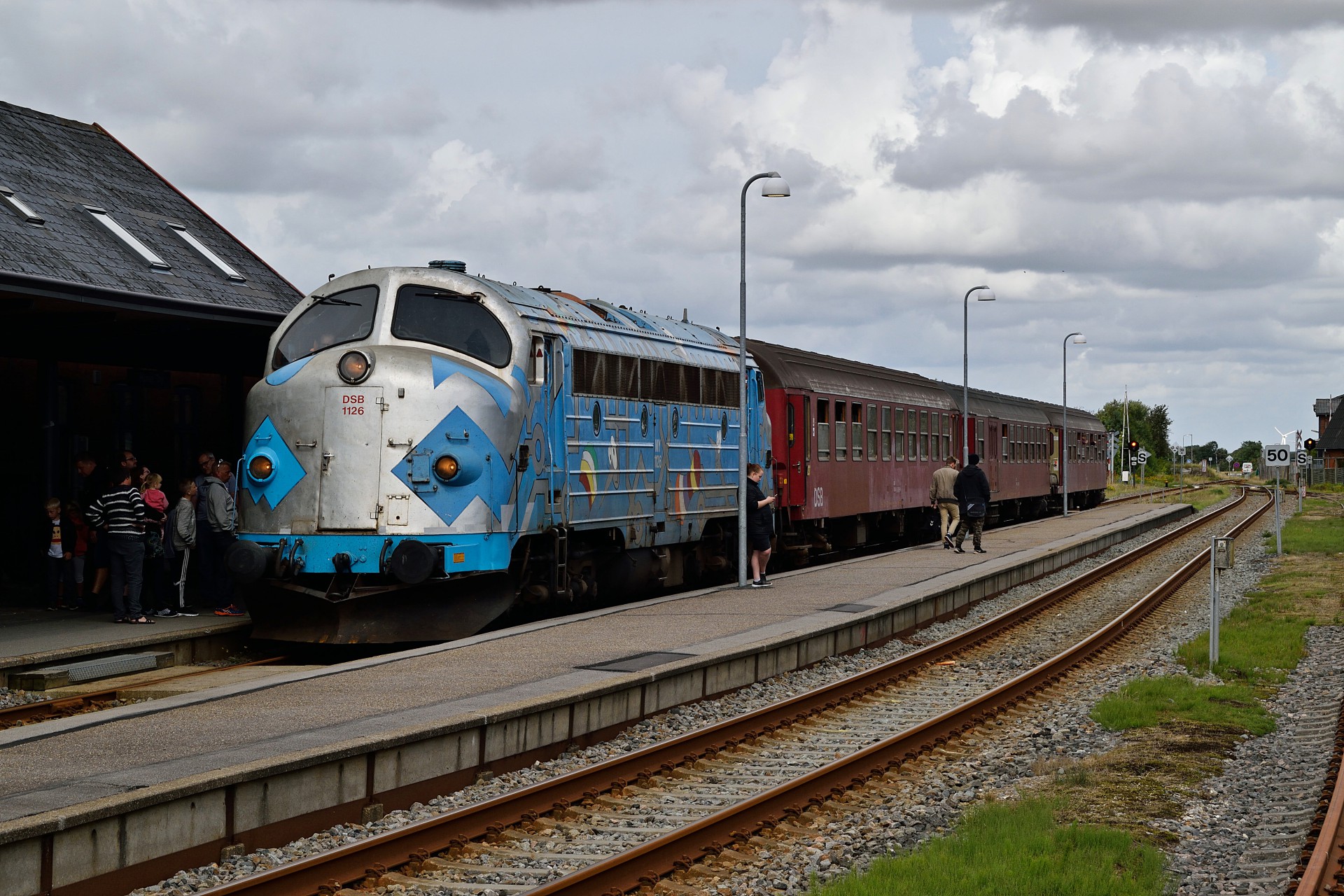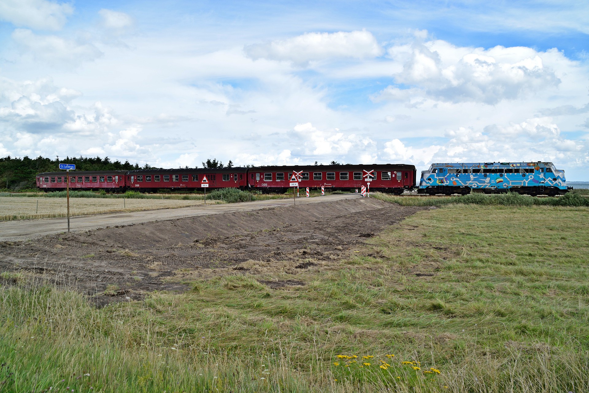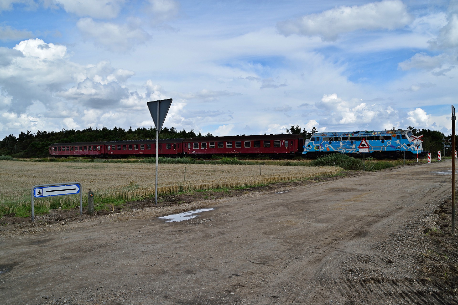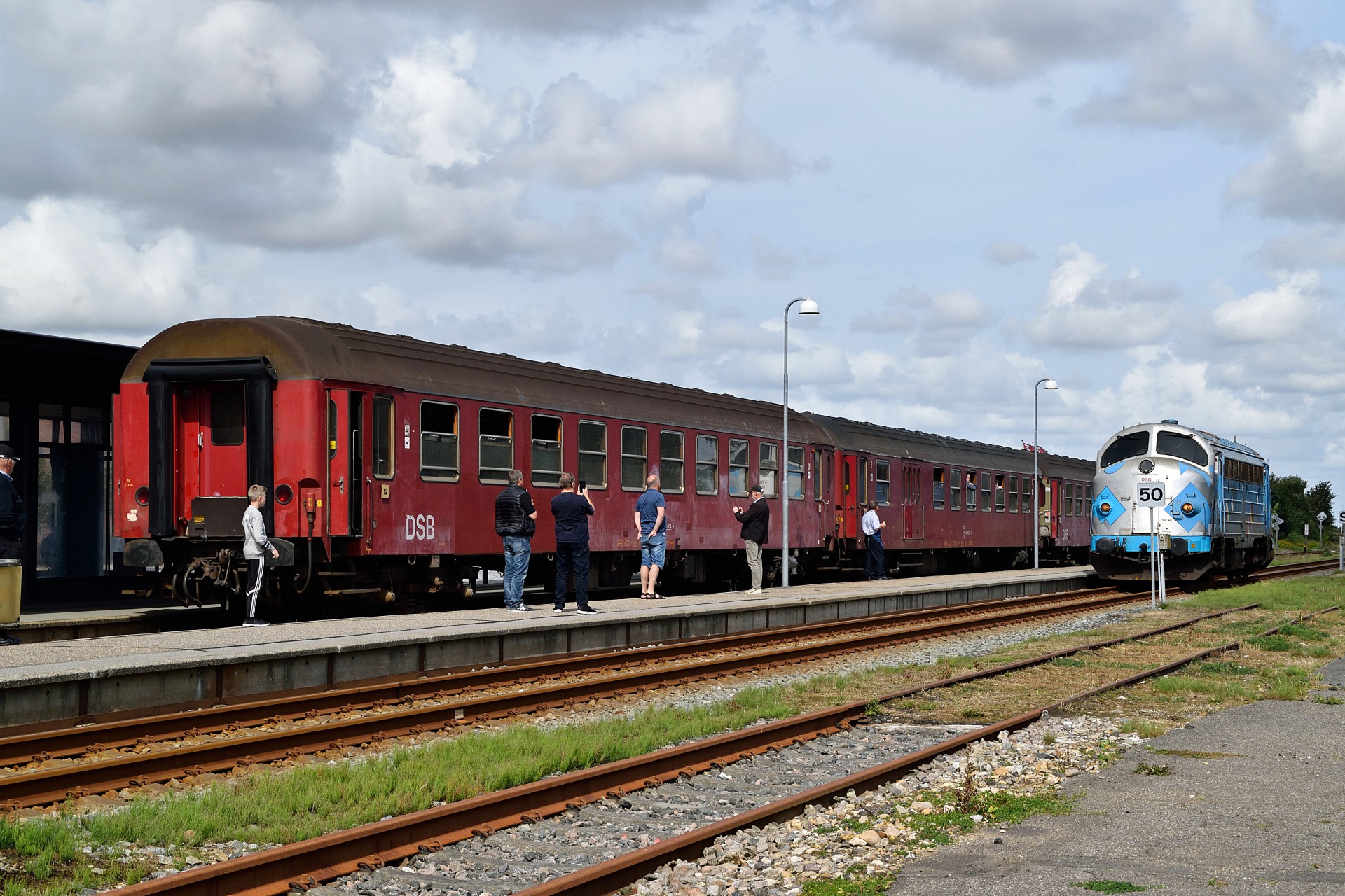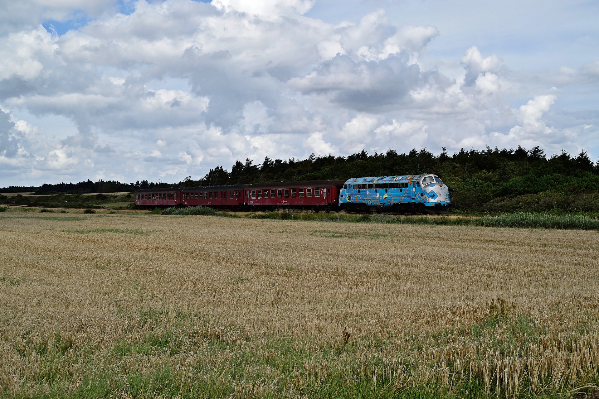 Lørdag den 19. august stod den på Jyllandstur med MY Veterantog, og i år gik turen til Struer, og herefter med mulighed for at køre en tur til Hurup Thy. Da familien og jeg var i sommerhus godt en times kørsel fra Struer i denne weekend, besluttede jeg mig for at køre i bil til Struer, og herefter tage IC Lyn til Vejle. Fra Vejle stod jeg så på MY Veterantog´s tog og som flere af de tidligere Jyllands ture startede rejsen fra Odense, men jeg valgte Vejle da jeg ellers skulle have været endnu tidligere oppe for at nå det. Efter påstigning af toget blev der uddelt den bestilte morgenmad, og det var muligt at købe diverse forplejninger fra salgsvognen. Fra Vejle gik turen så videre til først Herning og senere Holstebro, indtil vi ankom til Struer. Undervejes var det muligt et par gange at komme ud og få et par billeder i kassen, da der skulle laves krydsninger med andre tog på strækningen.