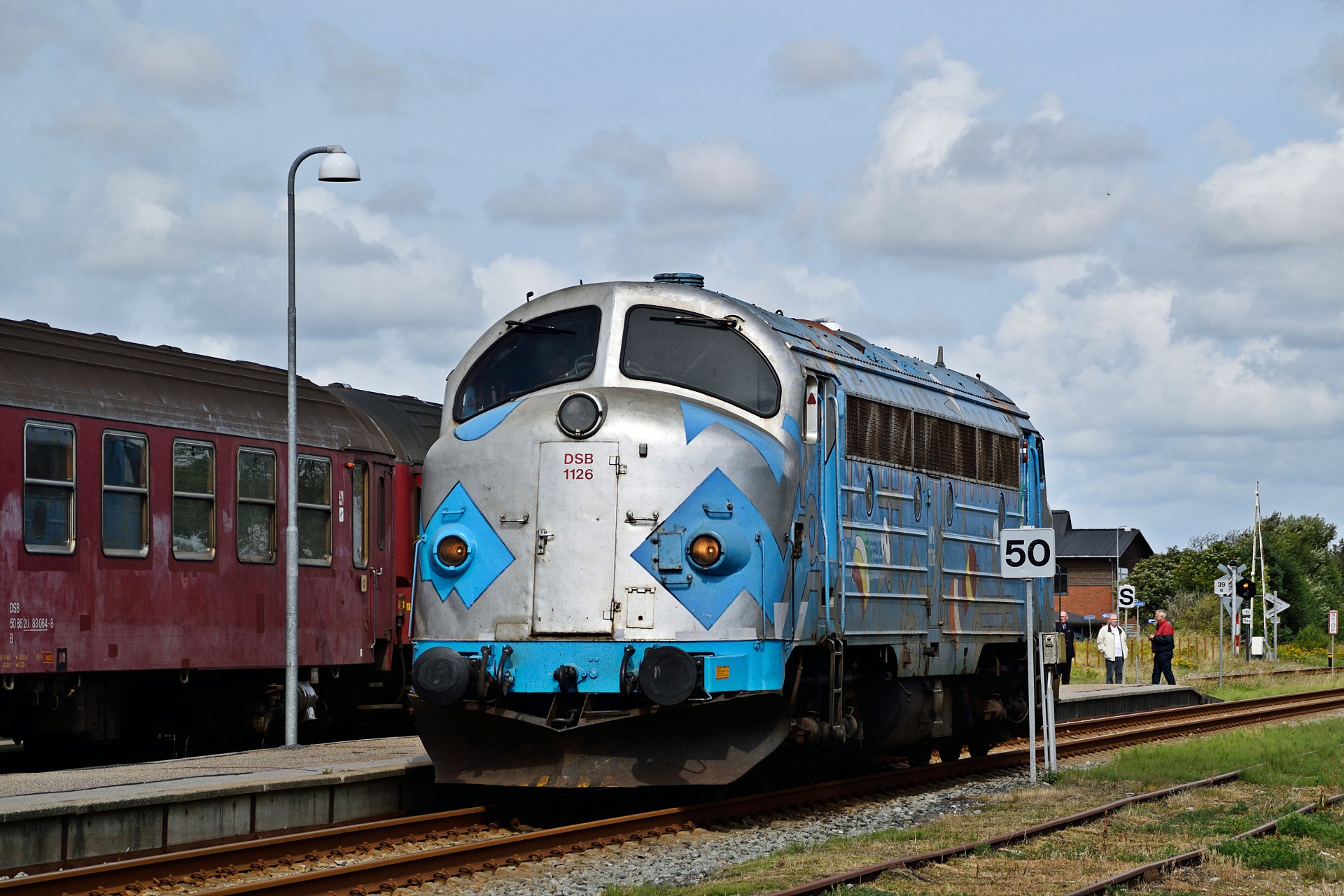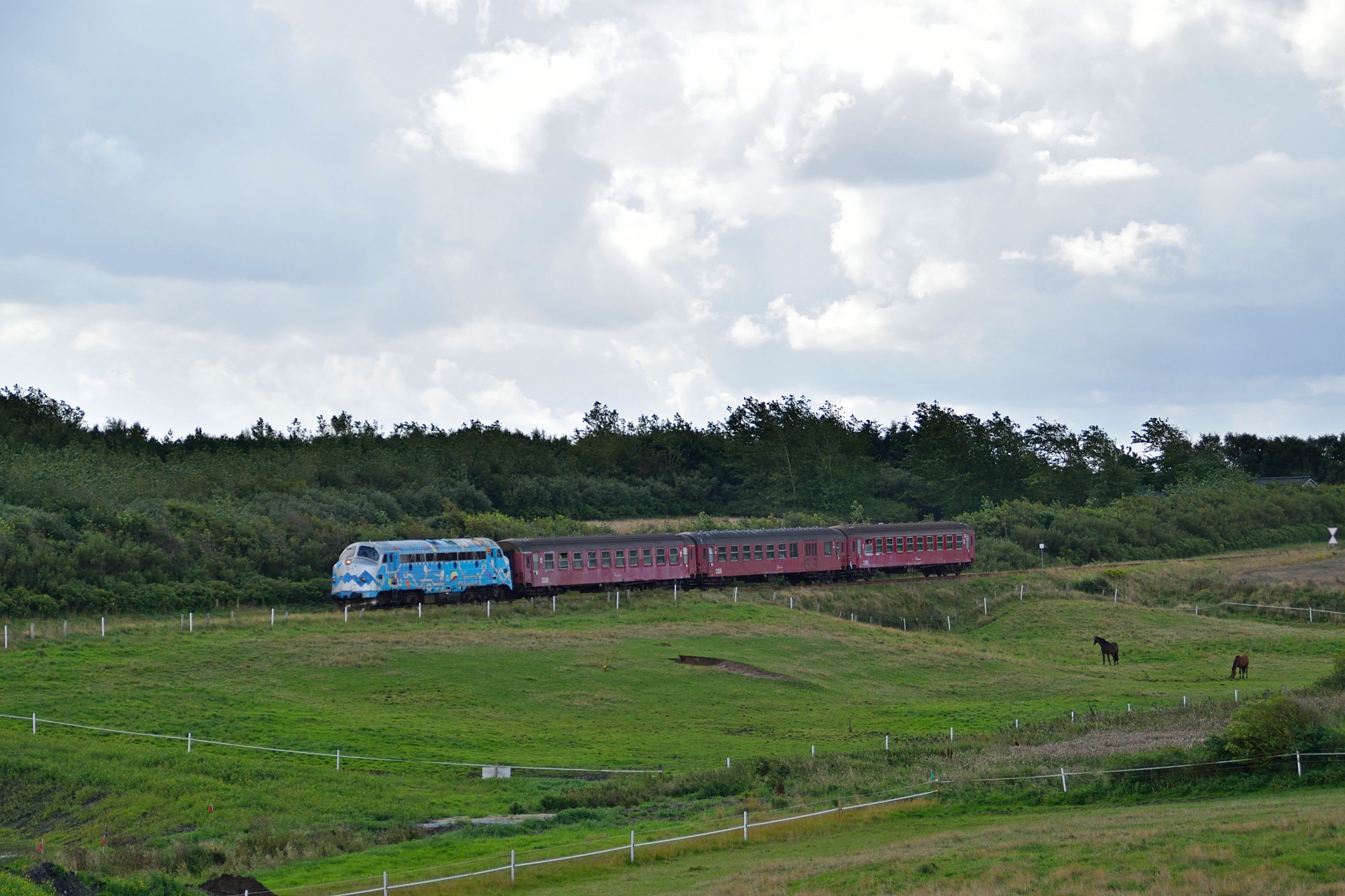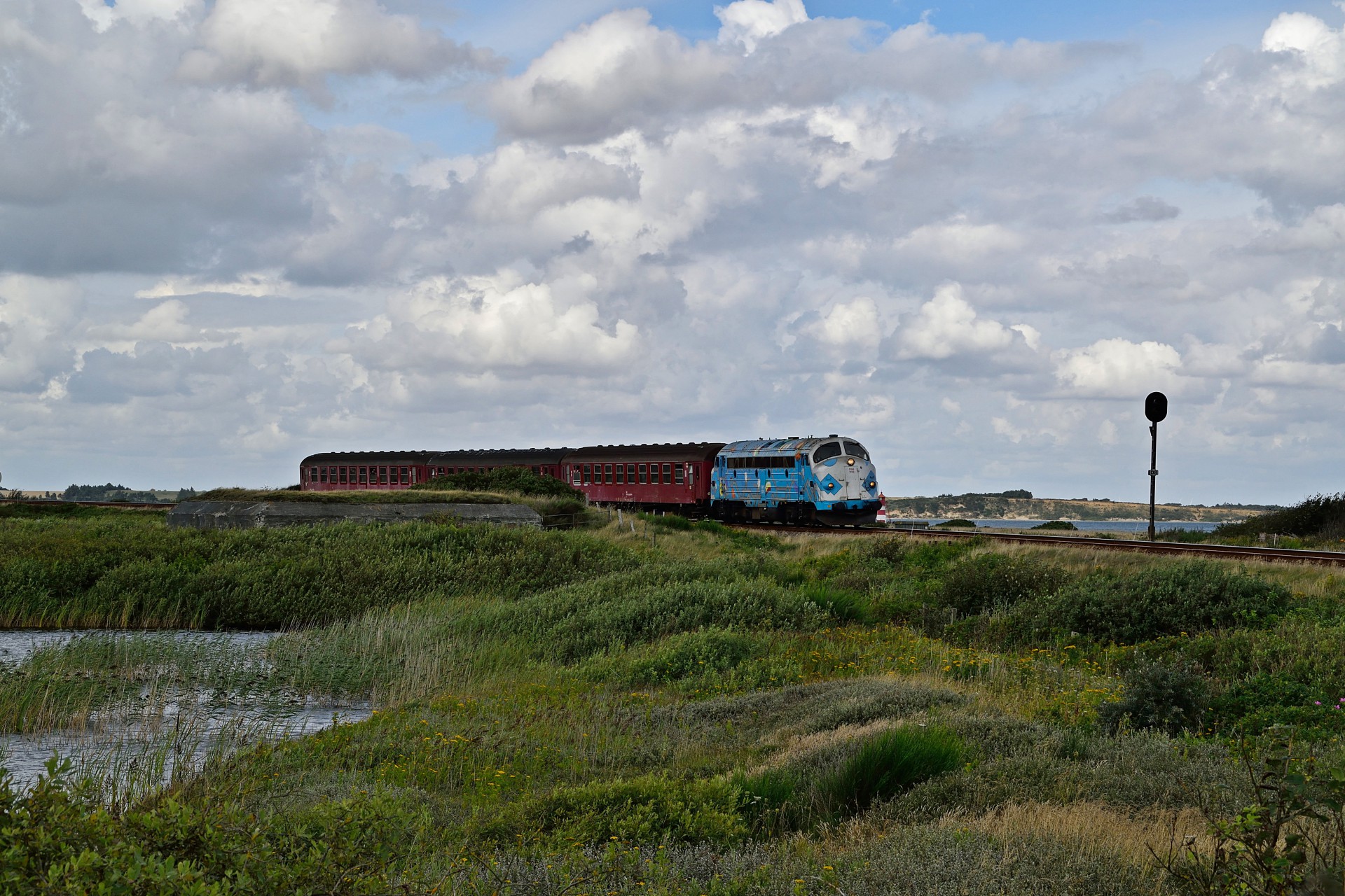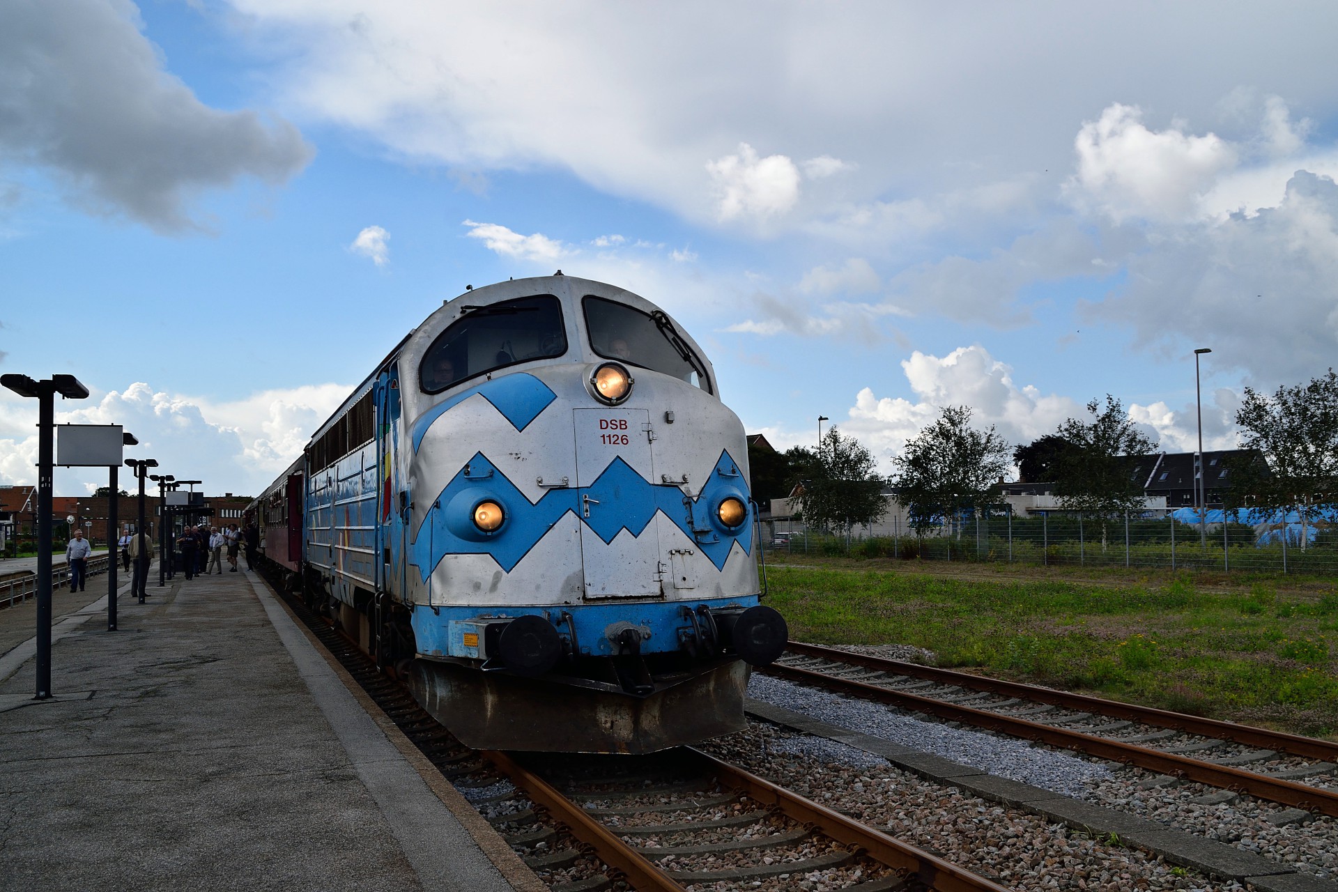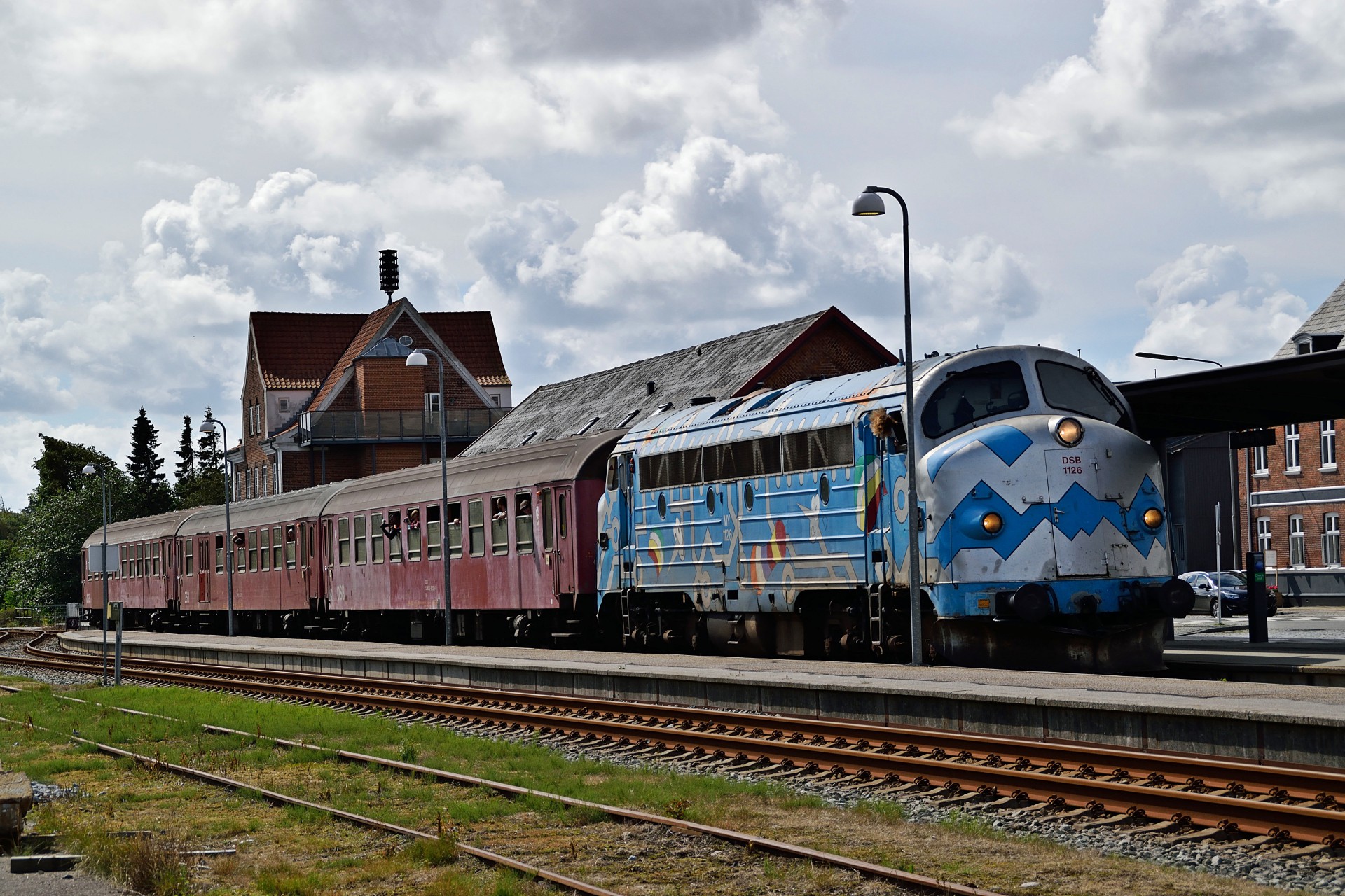 Lørdag den 19. august stod den på Jyllandstur med MY Veterantog, og i år gik turen til Struer, og herefter med mulighed for at køre en tur til Hurup Thy. Da familien og jeg var i sommerhus godt en times kørsel fra Struer i denne weekend, besluttede jeg mig for at køre i bil til Struer, og herefter tage IC Lyn til Vejle. Fra Vejle stod jeg så på MY Veterantog´s tog og som flere af de tidligere Jyllands ture startede rejsen fra Odense, men jeg valgte Vejle da jeg ellers skulle have været endnu tidligere oppe for at nå det. Efter påstigning af toget blev der uddelt den bestilte morgenmad, og det var muligt at købe diverse forplejninger fra salgsvognen. Fra Vejle gik turen så videre til først Herning og senere Holstebro, indtil vi ankom til Struer. Undervejes var det muligt et par gange at komme ud og få et par billeder i kassen, da der skulle laves krydsninger med andre tog på strækningen.