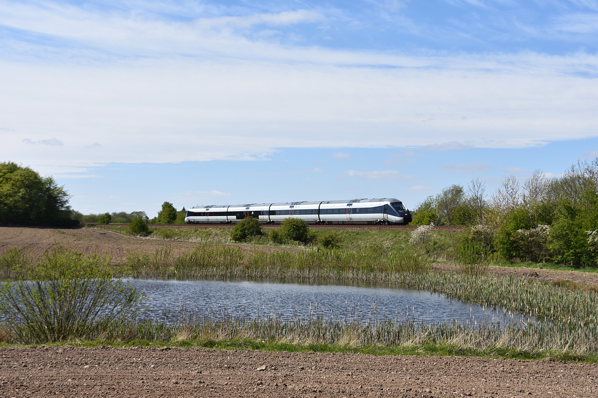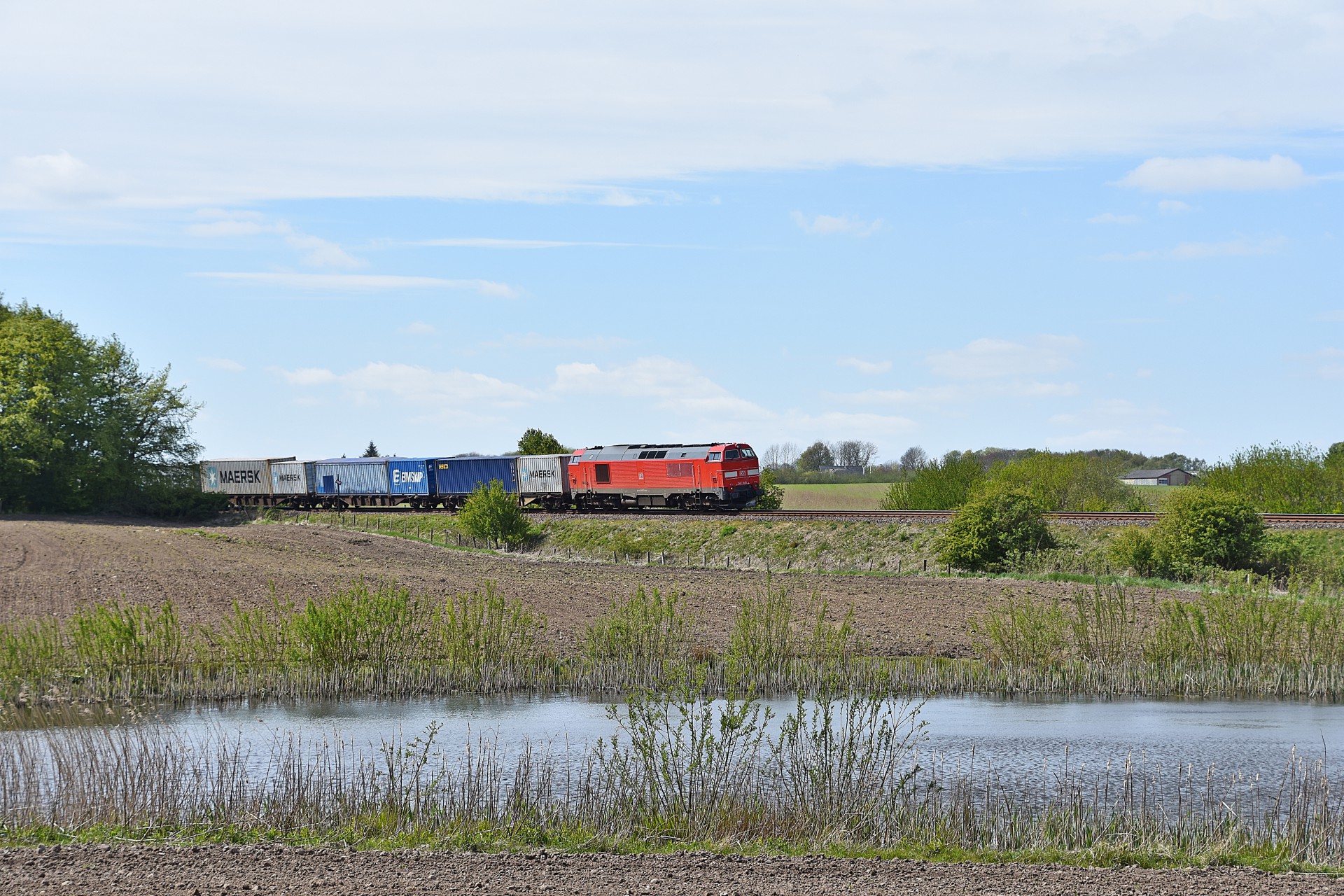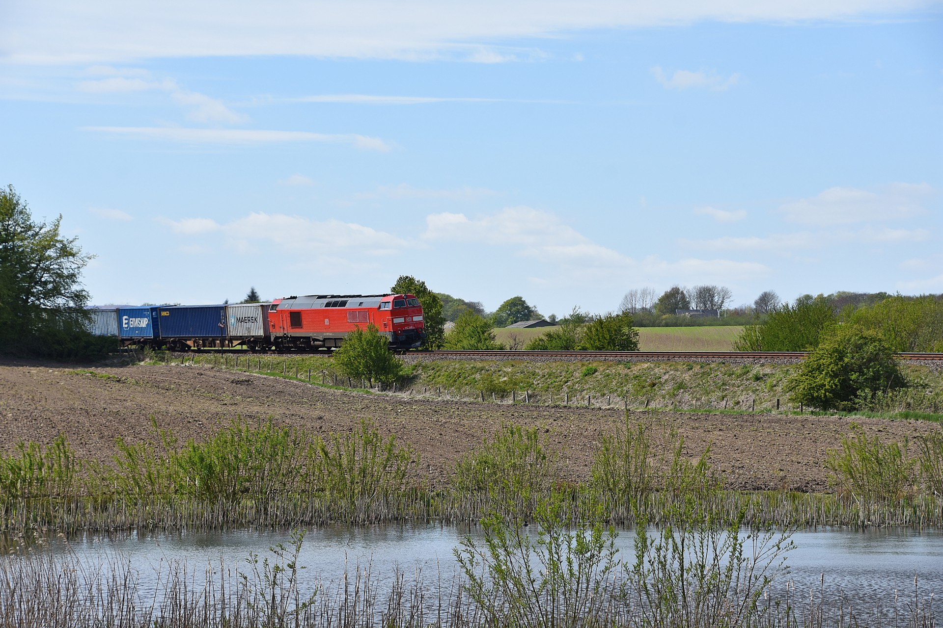 Onsdag den 6. maj kørte MZ 1449 med Mærsktoget og denne gang skulle en ny lokation testes af ved Hasselager. Stedet er som sådan fint nok, men passer ikke så godt til lange tog som Mærsktoget 🙂