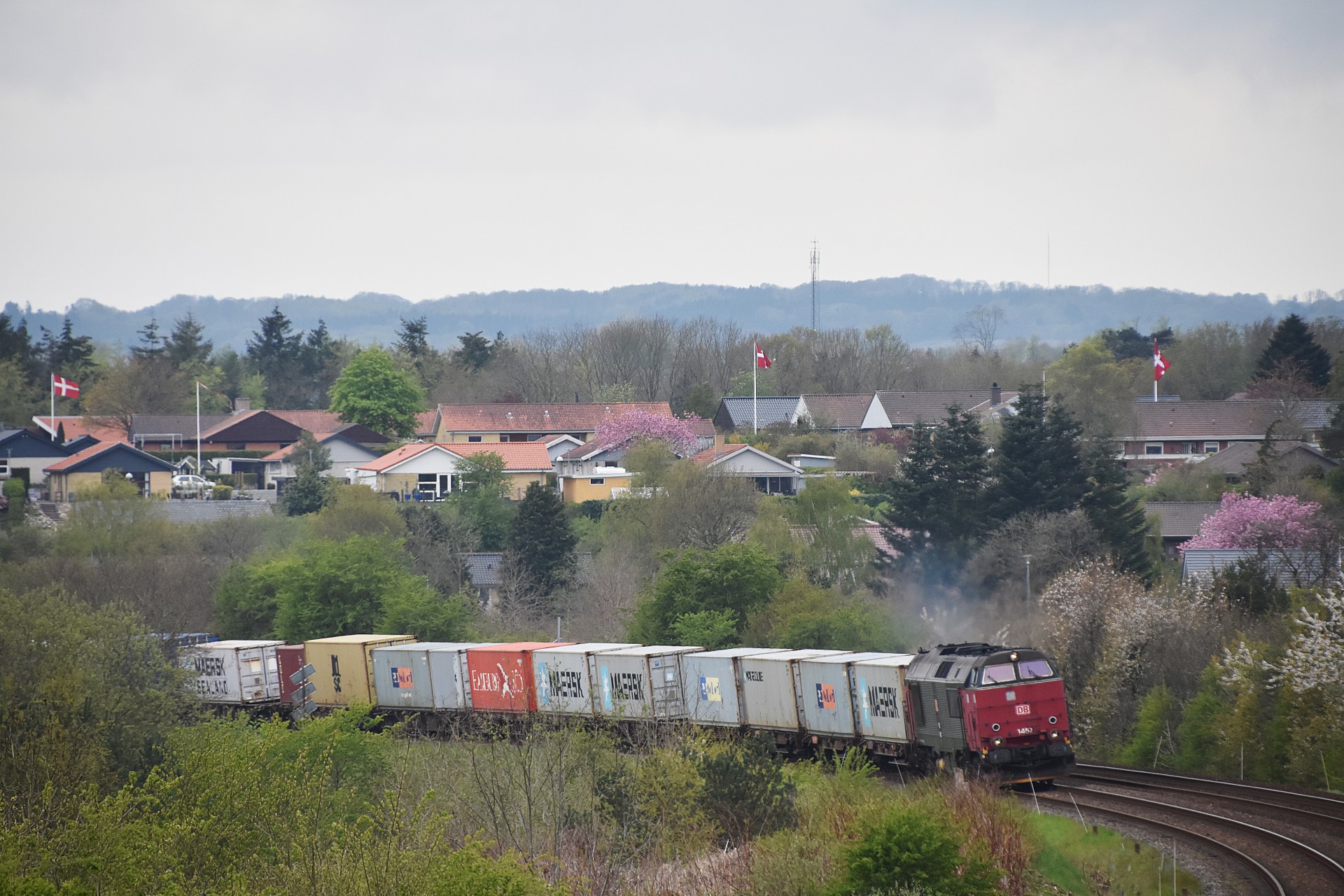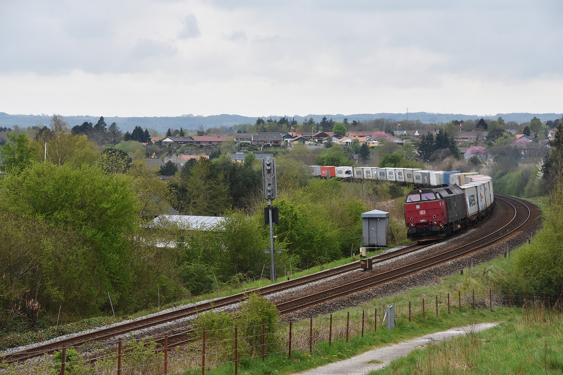 Onsdag den 29. april var det MZ 1452 der kørte med Mærsktoget. Jeg fik et par billeder af det på vej nord på ved Skanderborg, og denne gang fra en ny fundet lokation.