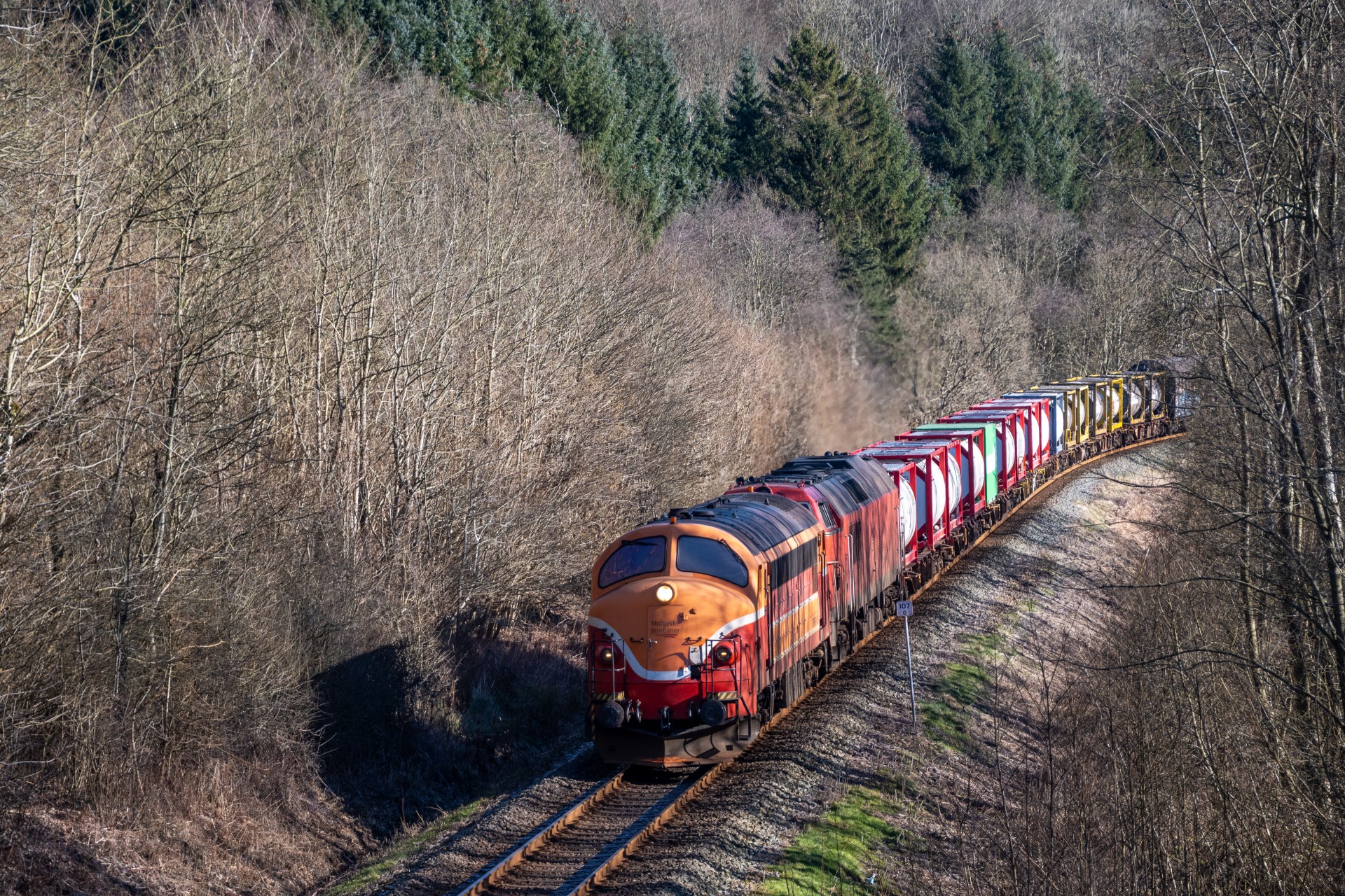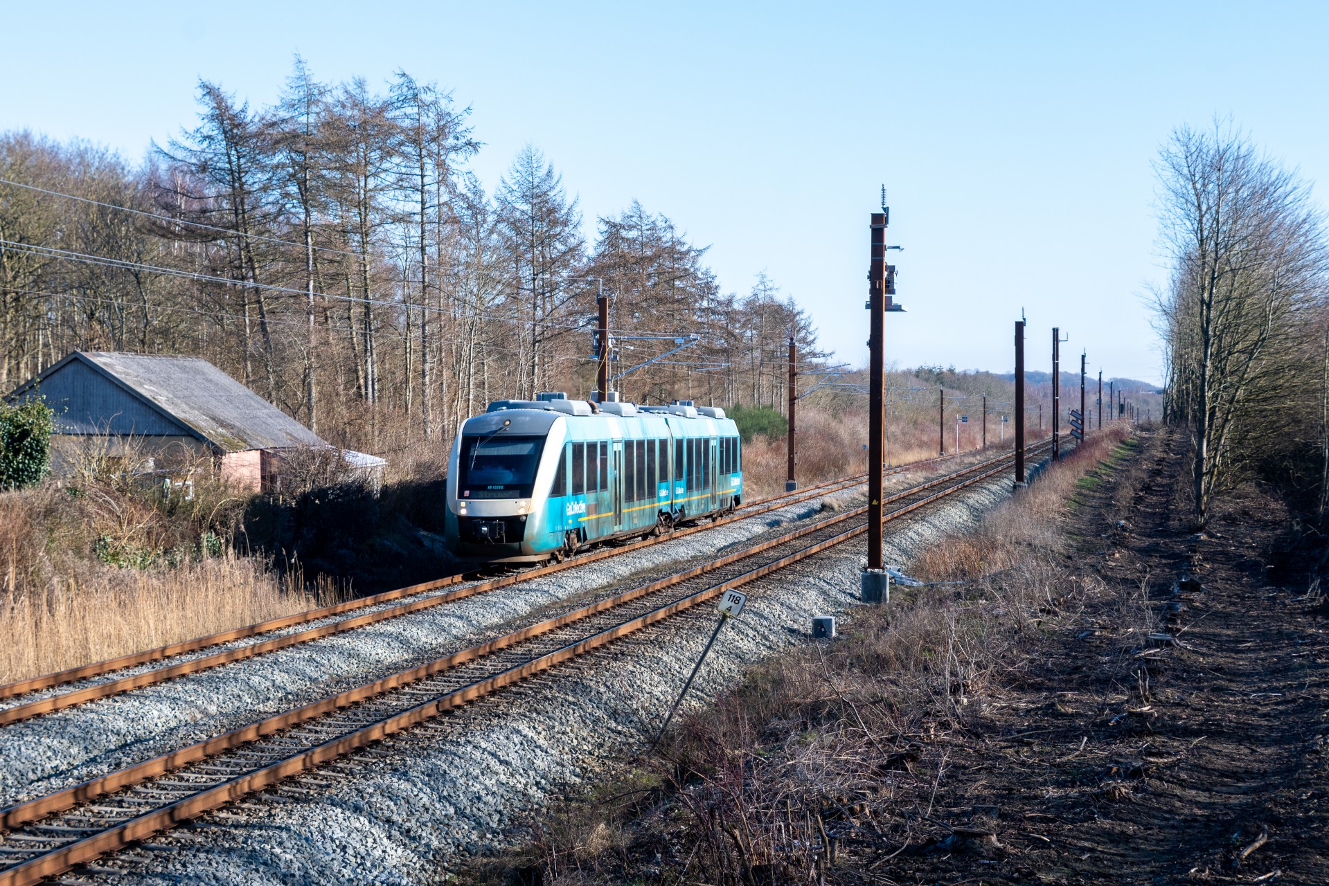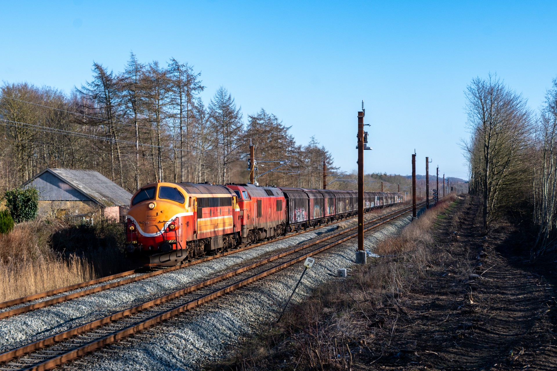 Tirsdag den 18. februar i forbindelse med at jeg var ude for at fotografere transporten af Midtjyske Jernbaners nye batteritog, blev det også til lidt “hverdags” billeder i Grejsdalen.