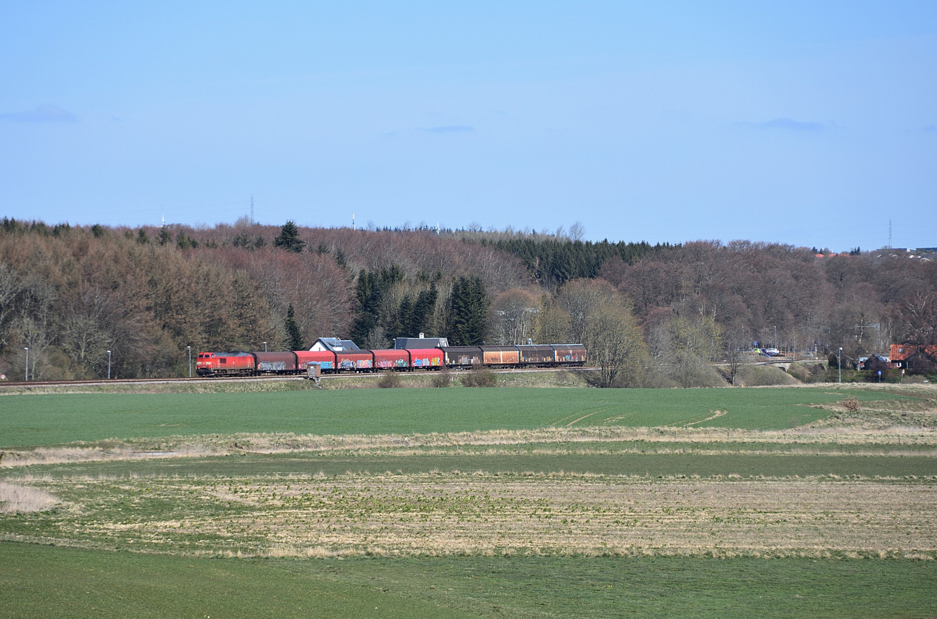 Jeg fik et par billeder af MZ 1459 med 9 vogne på krogen, da turen gik syd på igen, denne gang ved Hinnerup.