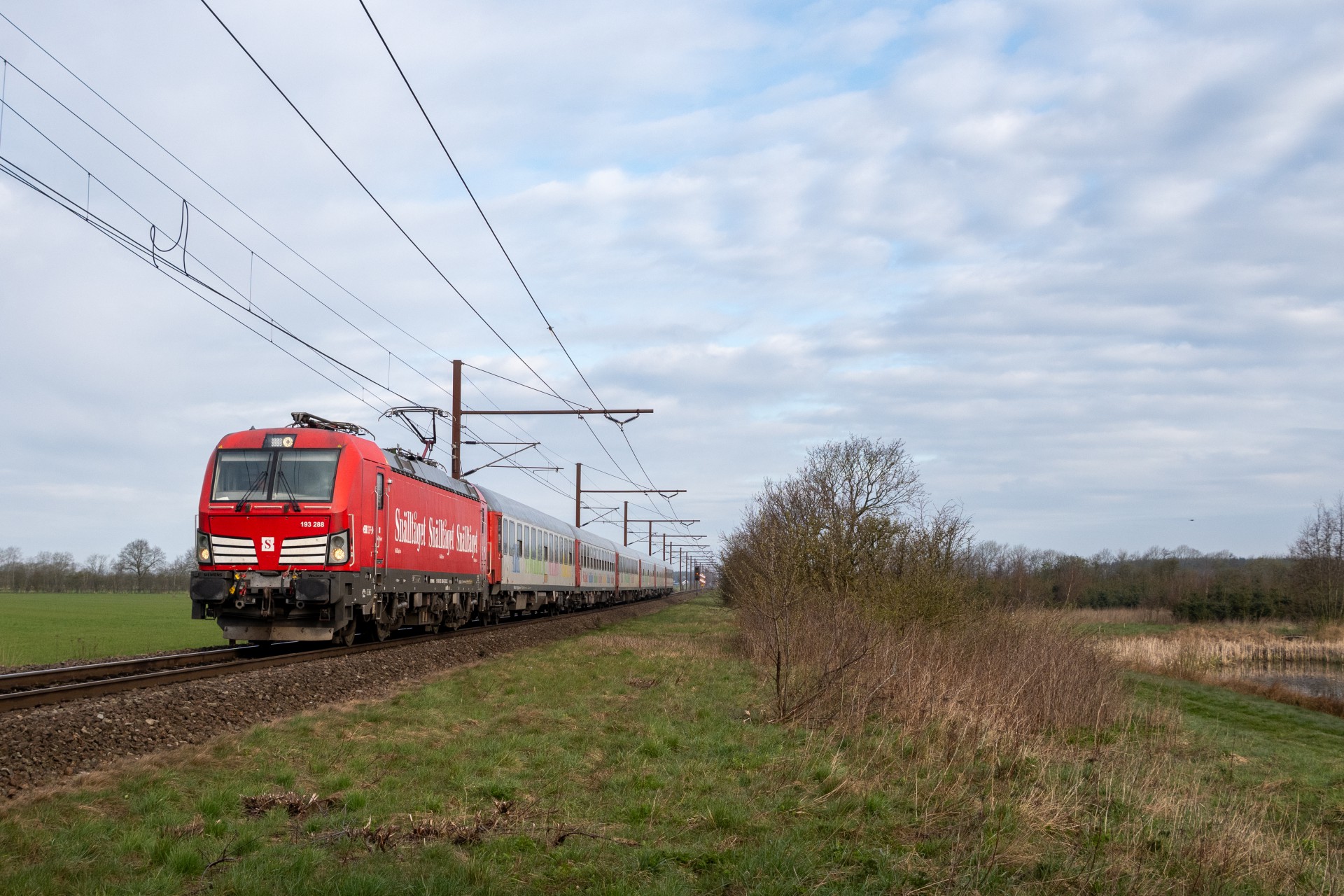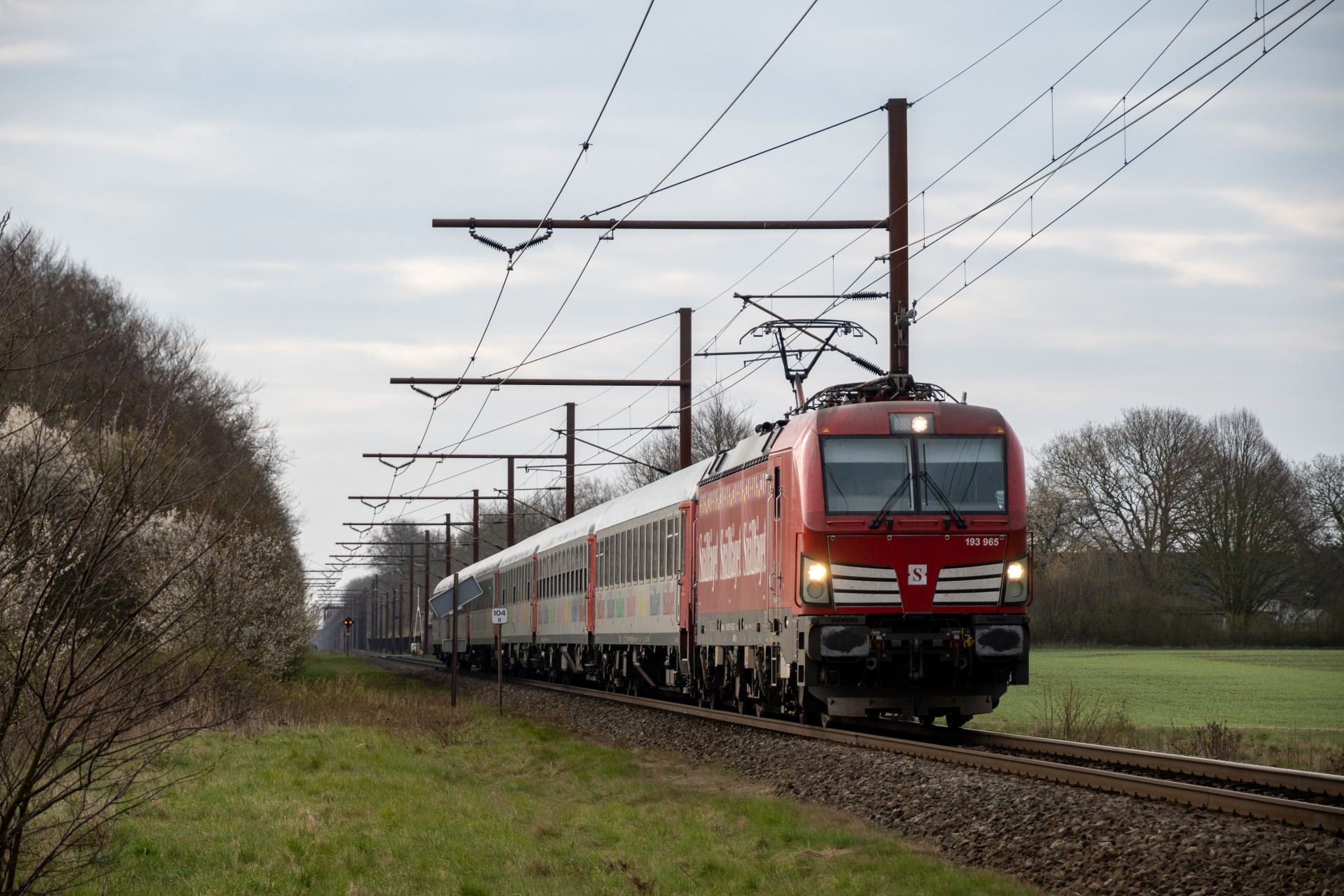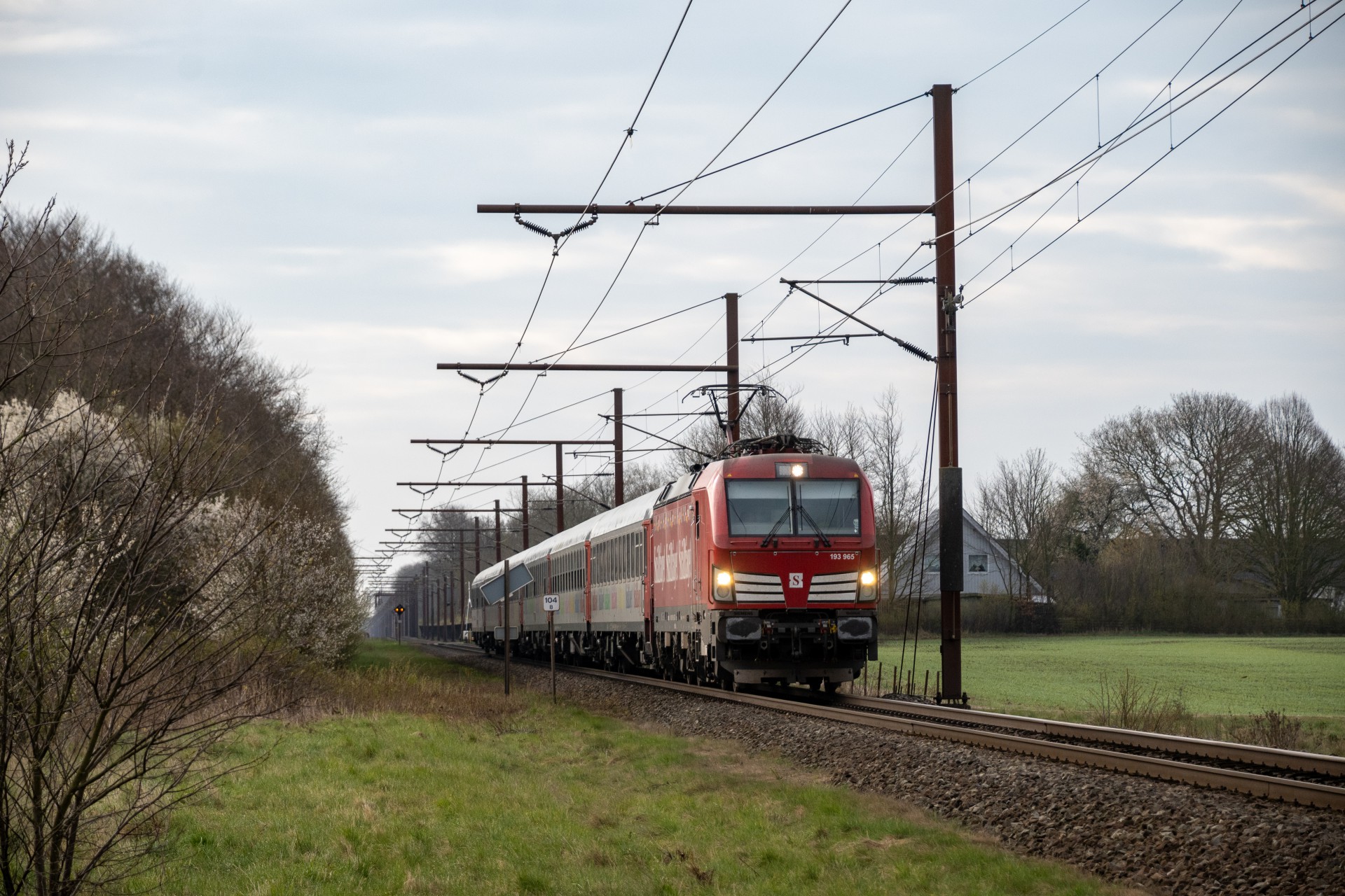 Snälltåget’s nattog i dagslys og diverse tog nord for Padborg – 15-04-2026