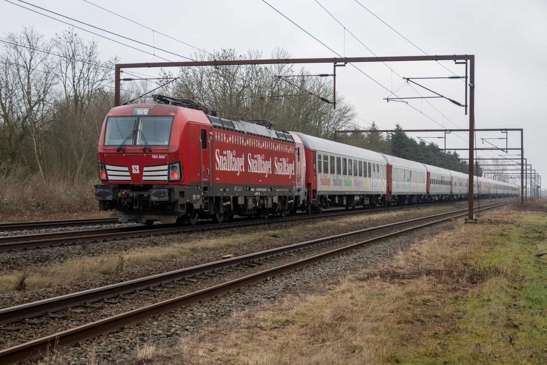 Søndag den 18. januar tilbragte jeg det meste af formiddagen ved Kauslunde, hvor jeg fik fotograferet lidt godt og blandet, og dagens højde punkt var Snälltåget´s skitog på vej fra Østrig til Malmø/Stockholm.