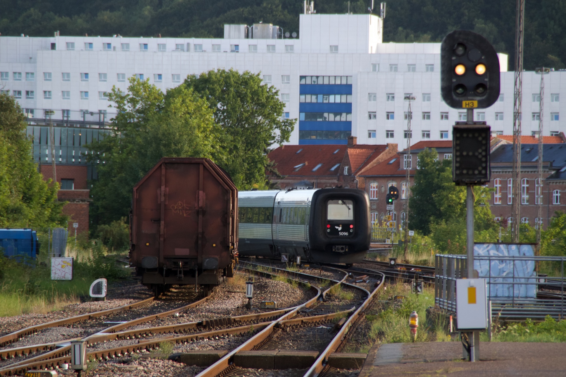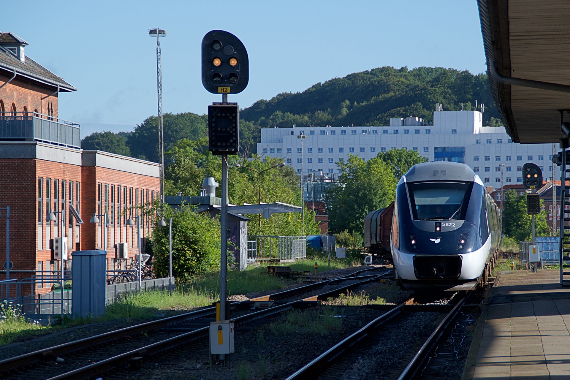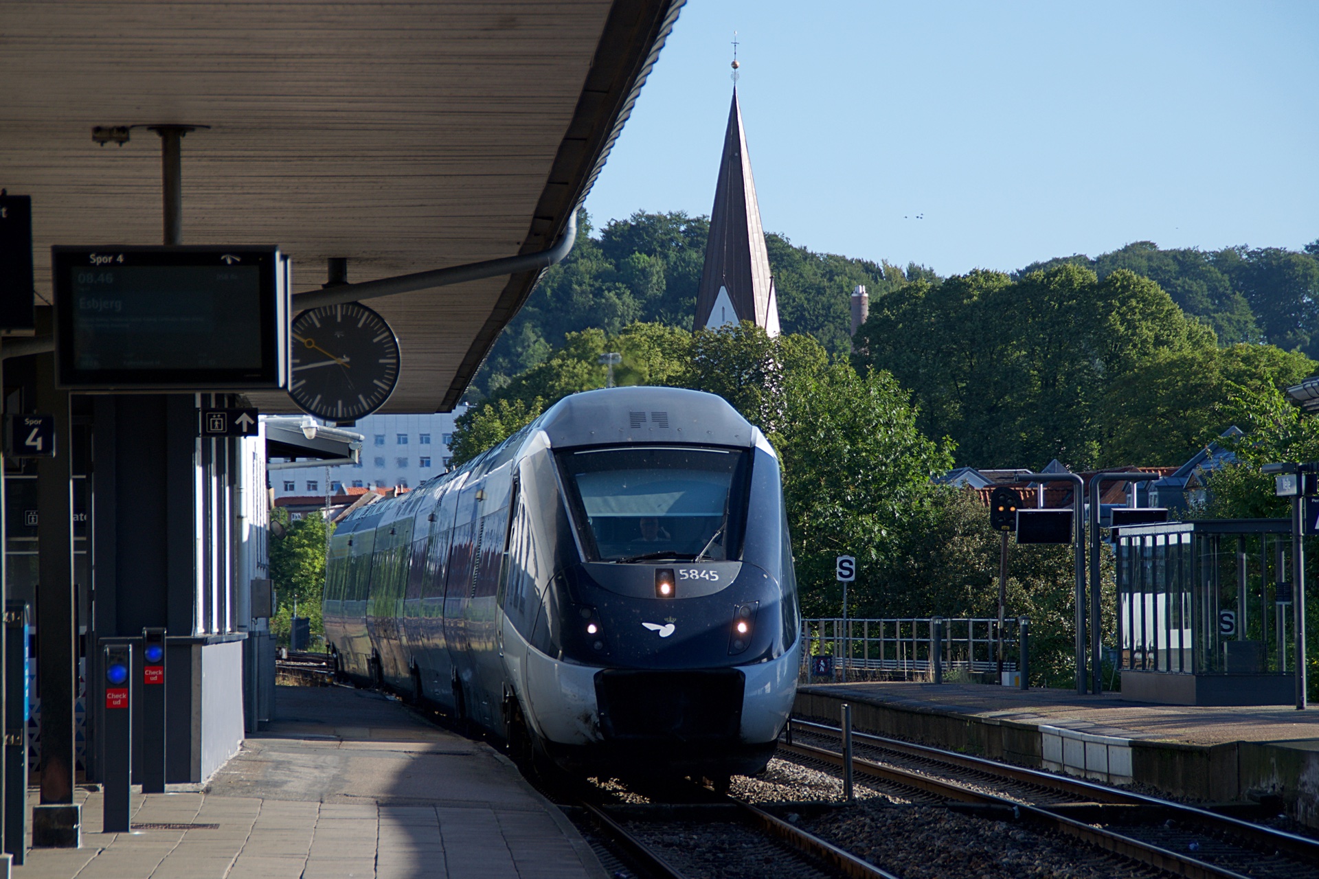 Lørdag den 19. august stod den på Jyllandstur med MY Veterantog, og i år gik turen til Struer, og herefter med mulighed for at køre en tur til Hurup Thy. Da familien og jeg var i sommerhus godt en times kørsel fra Struer i denne weekend, besluttede jeg mig for at køre til Struer i bil, og herefter tage IC Lyn til Vejle. Herefter så med MY Veterantog tilbage til Struer. Her kommer den første runde billeder, hvilket er lidt daglig dags billeder fra først Struer, og senere Vejle. MY 1158 soler sig i solen, med et række skærvervogne på krogen.
