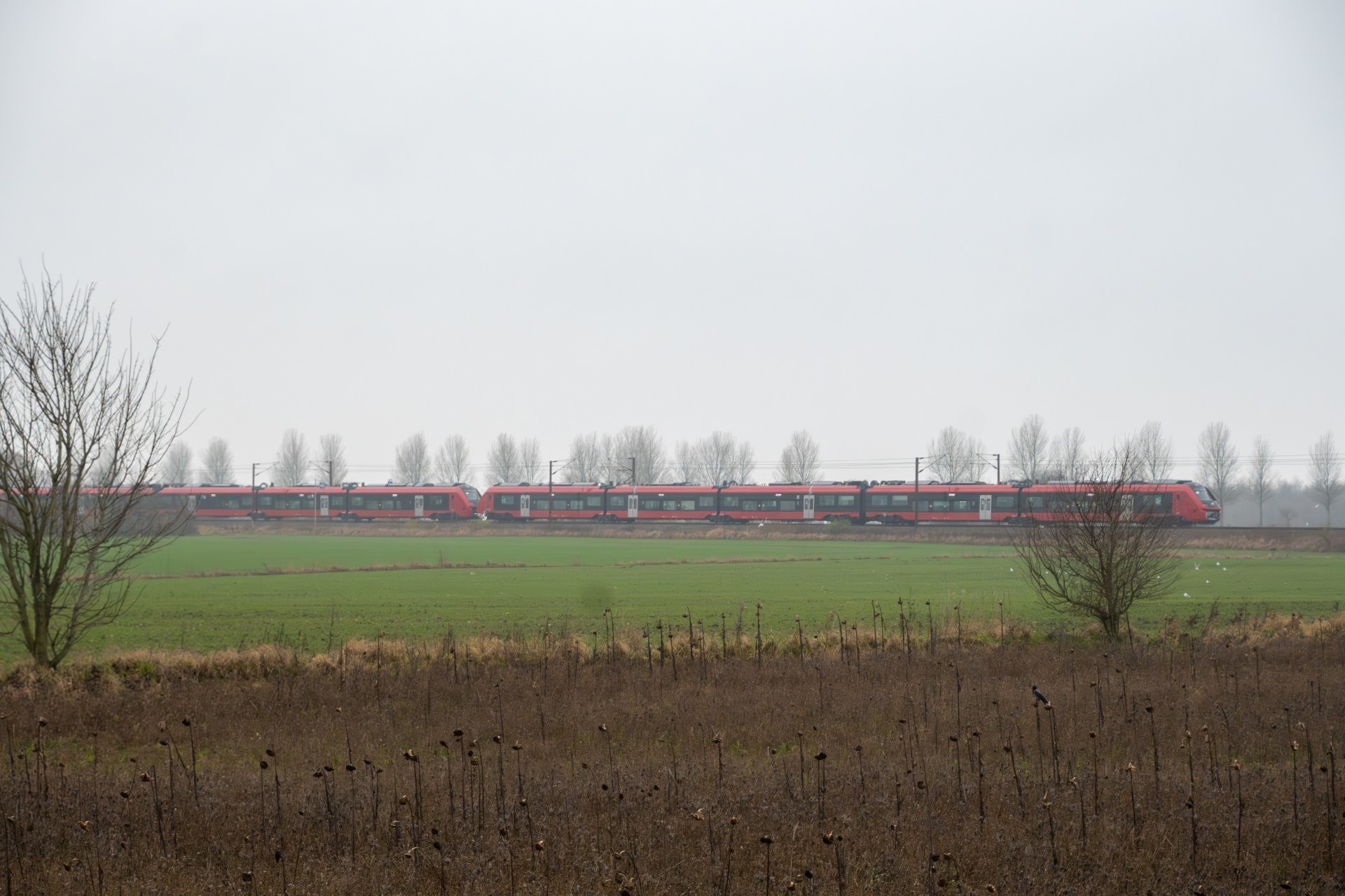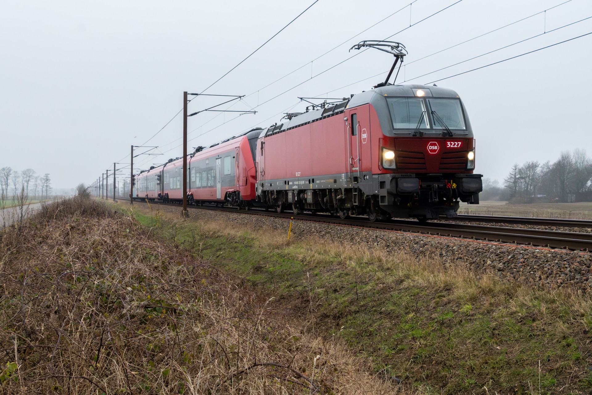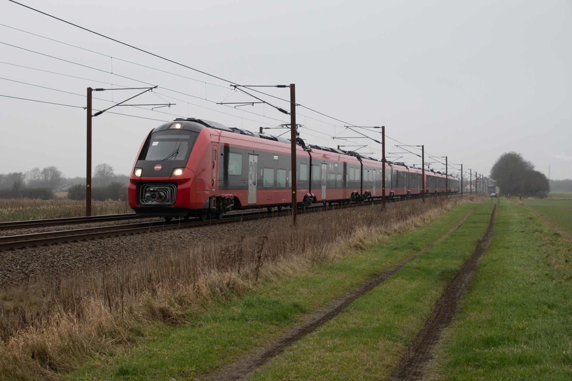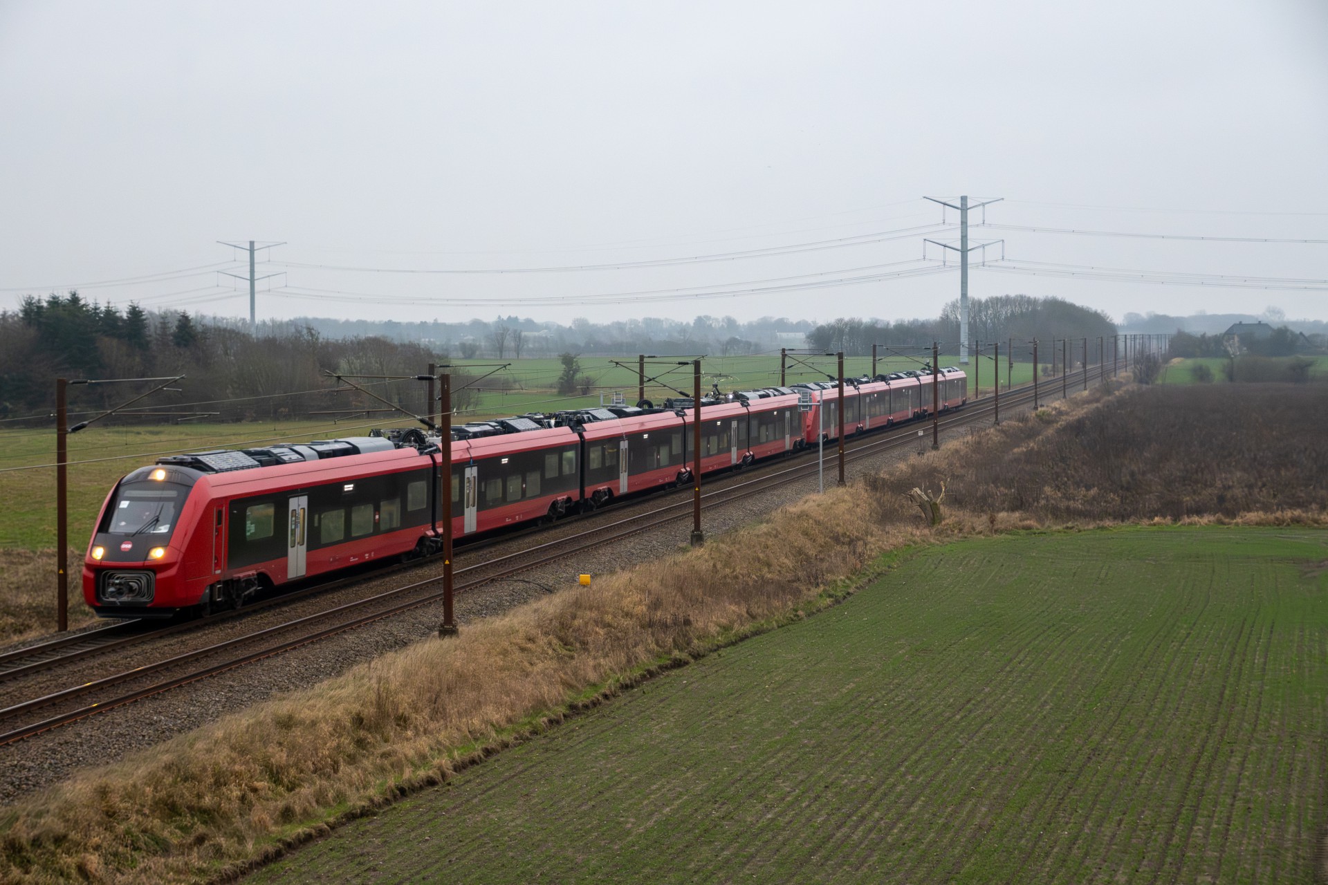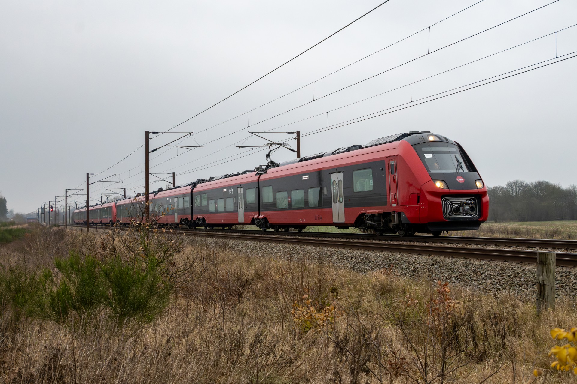 I dag den 5. december var jeg taget til Sønderjylland for at følge testkørslerne af DSB’s nye IC5-togsæt – og denne gang med to enheder koblet sammen (ES 2504 + ES 2505). Det, der gør dagens testkørsel ekstra interessant, er, at de giver et konkret indblik i, hvordan IC5 kommer til at fungere i noget, der minder om fuld længde. Når togene sættes i drift, vil de nemlig kunne køre med op til tre sæt koblet sammen, og dagens test er derfor endnu et vigtigt skridt i retning af den endelige konfiguration.