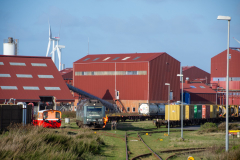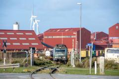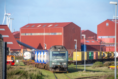 Så kørte jeg til Lemvig, hvor det blev til en række billeder imens der blev foretaget omløb. Da det begyndte at nærme sig tid til afgang, kørte jeg til Heldum kirke lidt uden for Lemvig, hvor det blev til et par billeder fra. Derefter kørte jeg til klitten nær ved Vrist, hvor det også blev til et par fine billeder i det noget blæsende vejr. Og efter toget så var passeret her, kørte jeg til Rønland, hvor FMC som er kunden til dette godstog har til huse. Herfra blev det til en hel del billeder også. Efter toget havde rangeret vognende på plads, og retur godset var kommet på krogen kørte jeg til Harboøre, hvor det blev til et par billeder af toget med FMC i baggrunden. Efter dette kørte jeg til Strande, hvor toget afventede en krydsning.