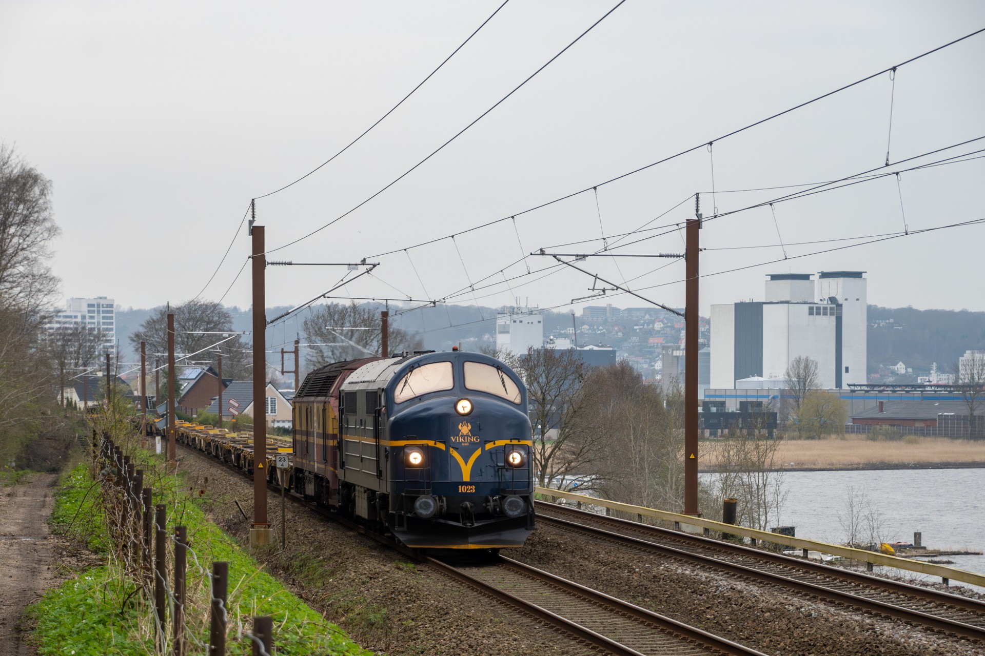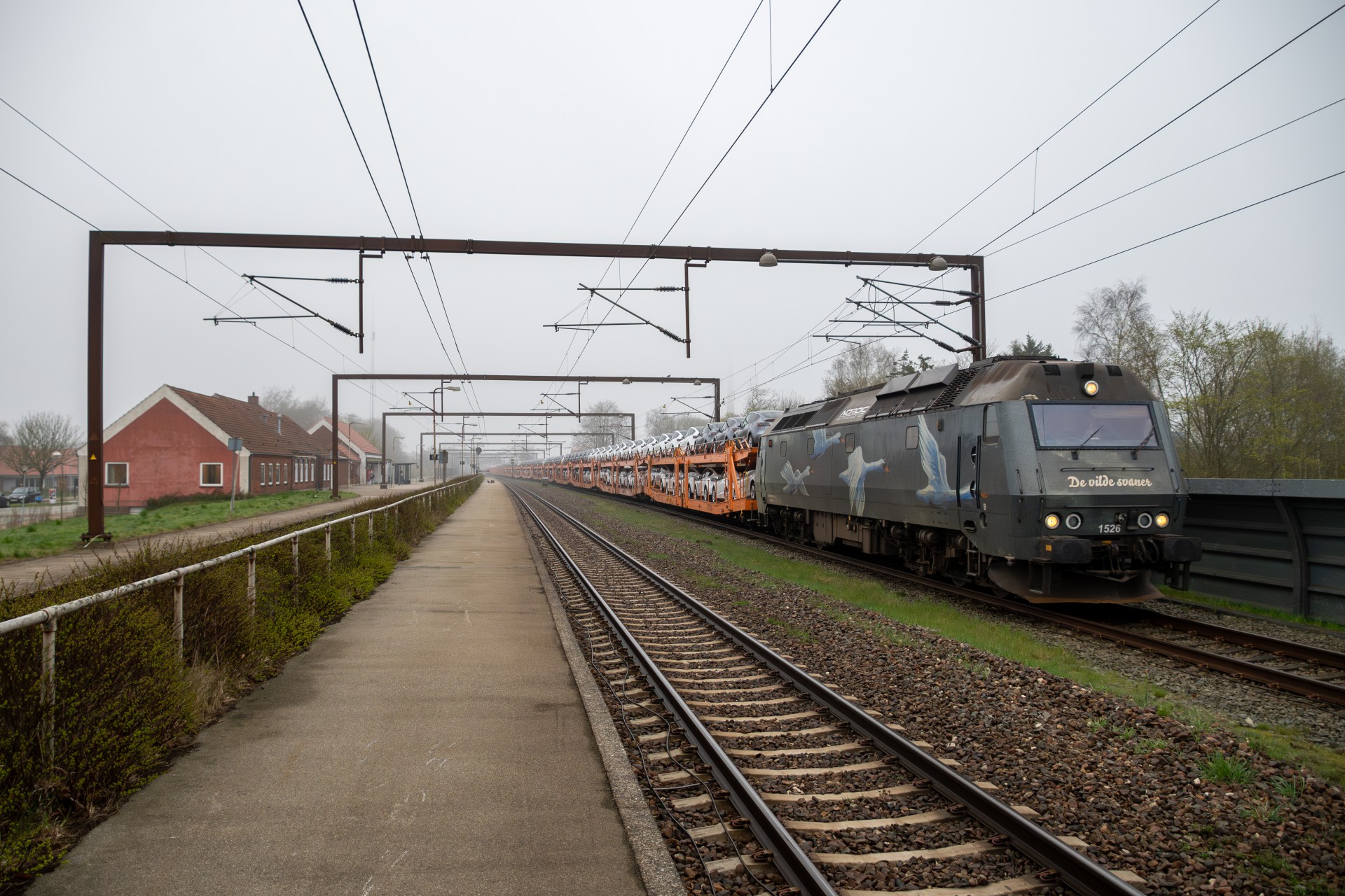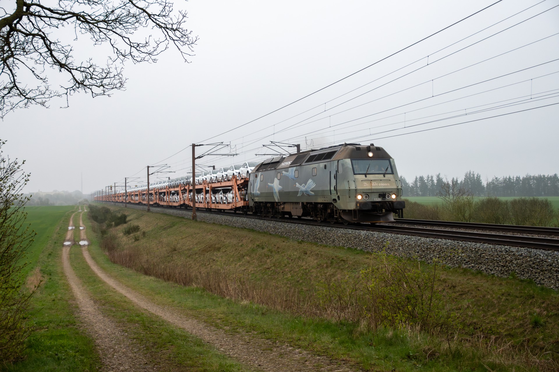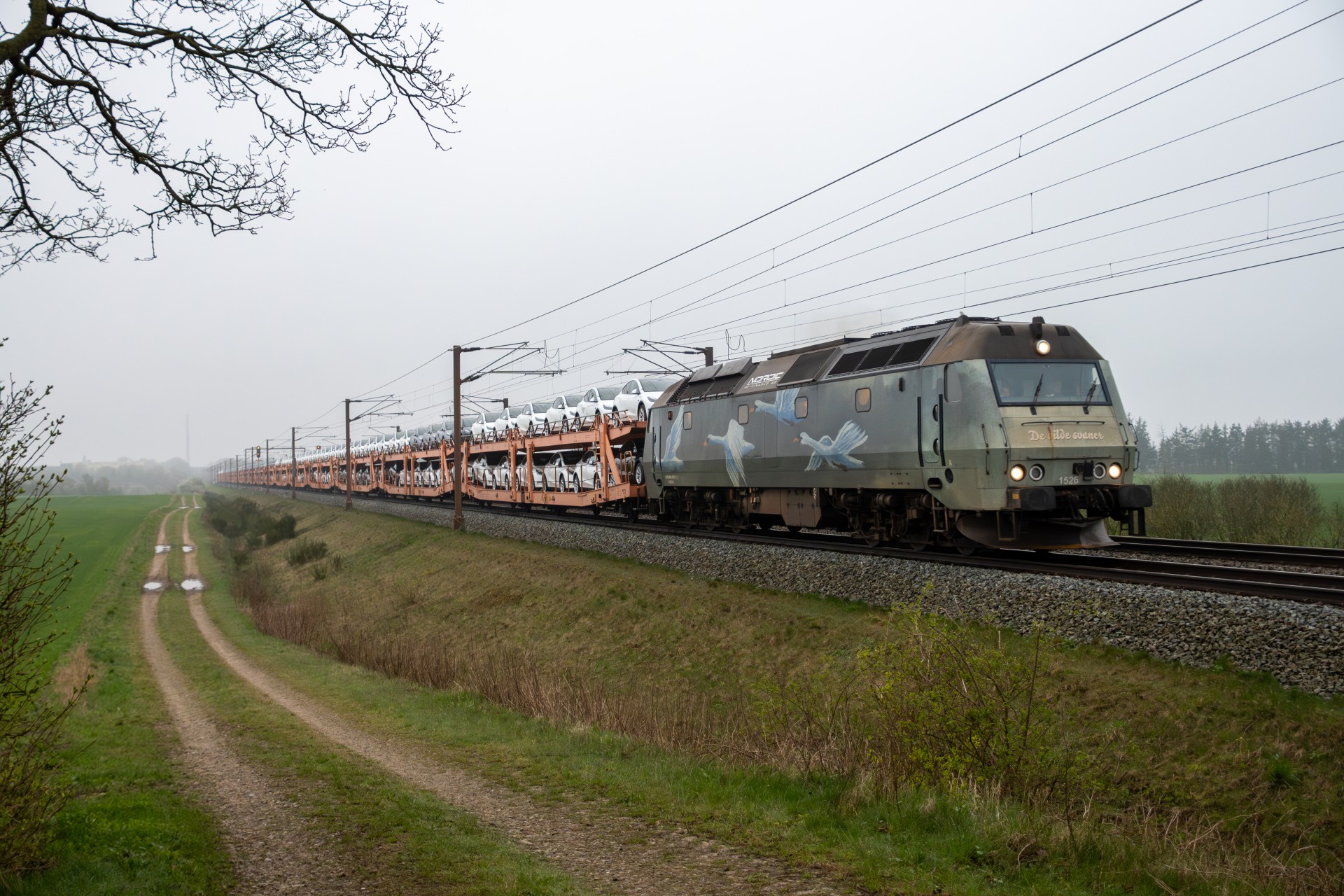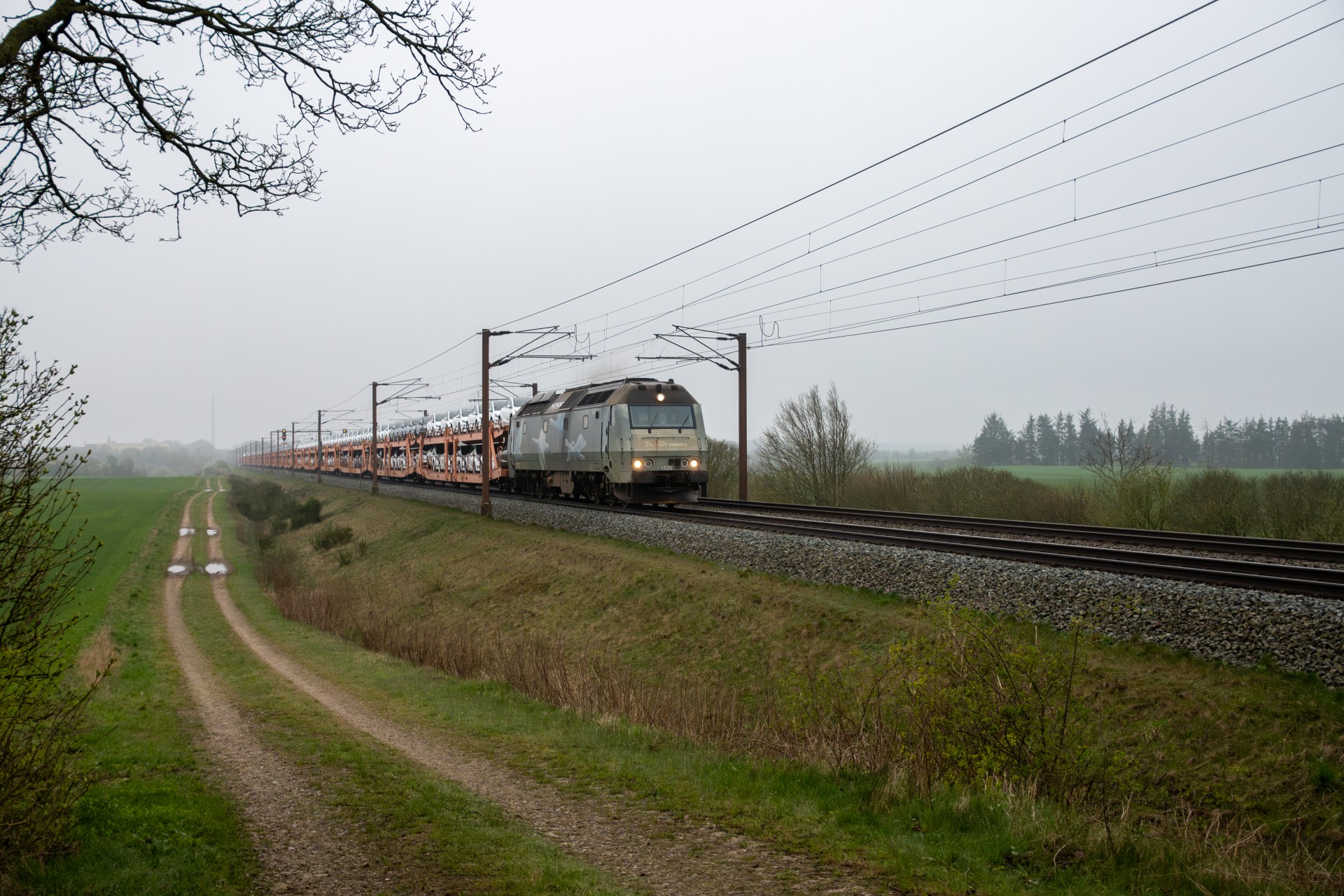 Tirsdag den 9. april blev det til en del forskellige steder. Jeg startede ud mellem Sommersted-Farris hvor C Rail Safety med TME 1526 passerede med biltog læsset med Tesla Model Y biler. Herefter kørte jeg til Vamdrup, hvor jeg fik en del billeder under omløb samt rangering ud til Auto Logik. Derefter kørte jeg til Vejle, hvor det blev til et par billeder af VIKING-Rail med tomt Mærsk tog fra Aarhus til Taulov pga. væltet træ, nedreven køreledning ved Hedensted dagen før. Det var MX 1023 + 1833 der trak dette tog.