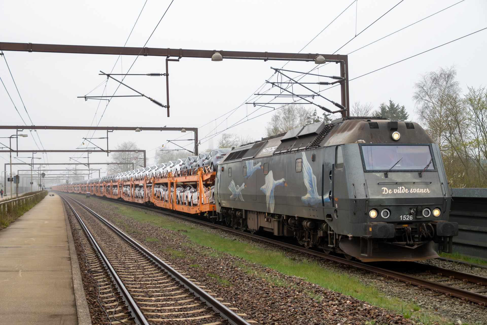 TME 1526 med Tesla biltog, MX 1023 + 1833 med tom Mærsktog, Z70 + MZ 1457 med Hr/Røn samt MY 1152 + 183x med Cement – 09-04-2024