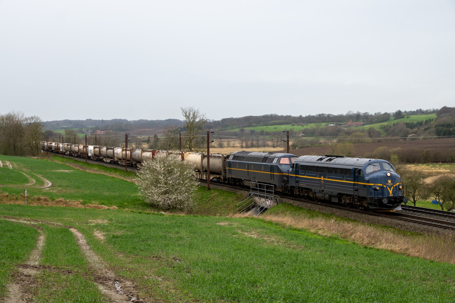 Ved middags tid blev det så til et par billeder af DB Cargo med Z70 + MZ 1457 med godstoget til Herning/Rønland i Grejsdalen. Der var en del containertanke med, der ud over 2 vogne læsset med træstammer, som jeg ikke før har set indgå i dette tog. Desværre havde jeg lidt problemer med fokus på kameraet, så det blev kun til et par billeder. Til slut blev det så til billeder af forsinket Cement tog ved Gudsø, trukket af VIKING Rail MY 1152 + 183x.