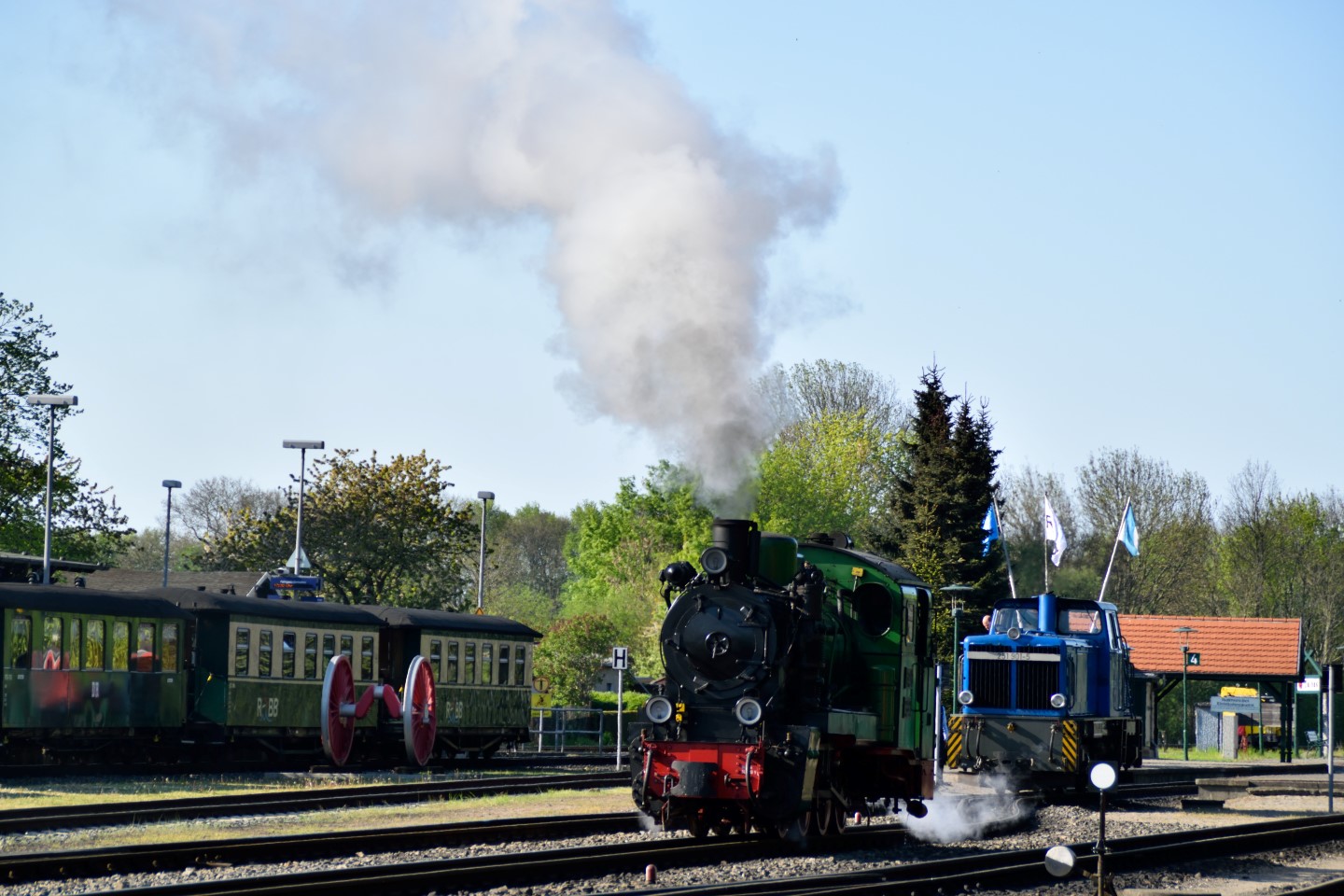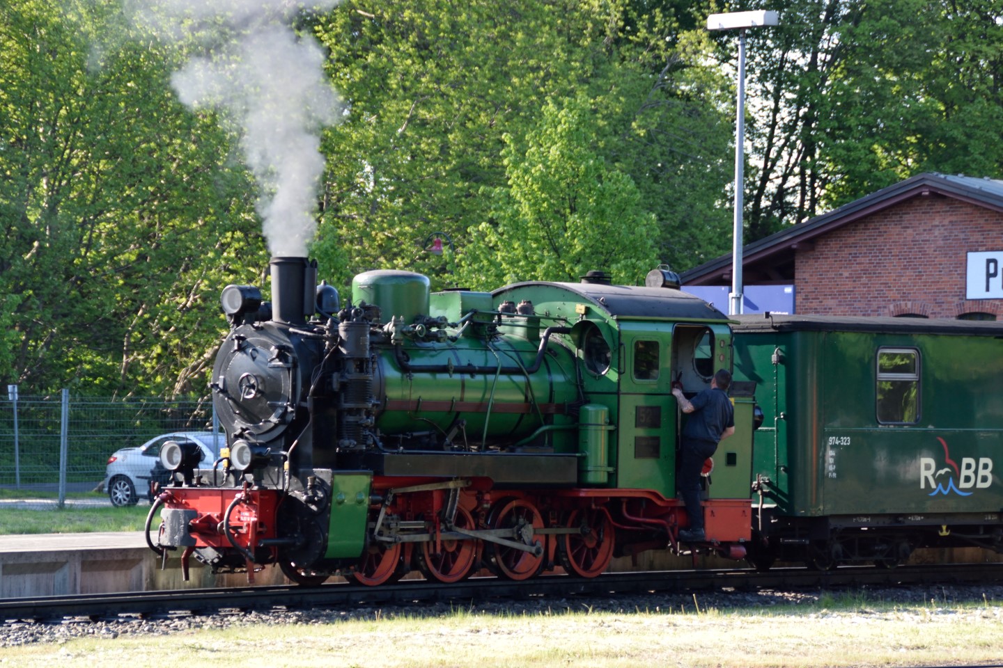 Fredag den 13 maj var turen så kommet til at besøge Rügen Bahn(BahnRügensche BäderBahn – “Rasender Roland”). Banen er en smalsporsbane med sporvidde på 750 mm, og strækker sig fra Lauterbach Mole til Putbus(som er hovedstation) til byen Göhren og har en længde på 24,1 km.