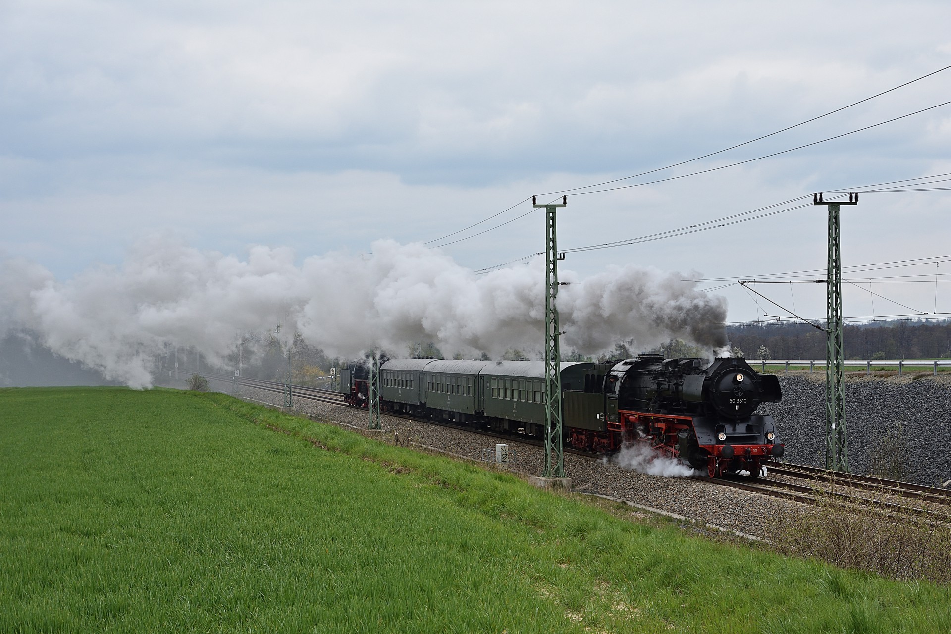 Herefter kørte vi nord for Dresden for at finde en placering til at fotografere toget mod Berlin, samt også at få nogle billeder af en materiel transport af BR 50 3610 samt BR 03 2155 til Dresden. Vi havde fundet en lang lige strækning, hvor der var en bro over banen. Så på grund at der ikke var så meget sol(og dermed ikke modlys), kunne vi blot vende os den anden vej og afvente BR 01 202 køre mod Berlin, efter at BR 50 3610 samt BR 03 2155 først var kommet forbi godt 15 minutter før mod Dresden.