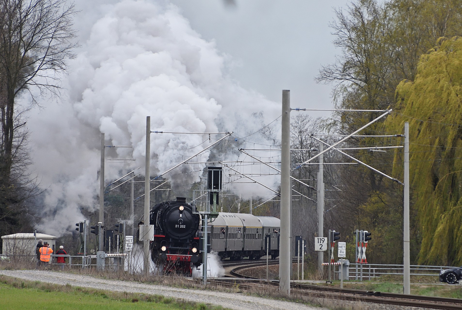Efter begge var passeret kørte vi lidt nord for Elsterwerda for at håbe på at kunne fange BR 01 202 endnu en gang, da den skulle gøre et ophold i Elsterwerda. Det lykkes heldigvis at finde et sted i god tid. Efter den var passeret så kørte vi mod Dresden for at besøge selve remise området hvor de forskellige lokomotiver som ikke var ude at køre var at finde, mere her om senere i næste opslag.