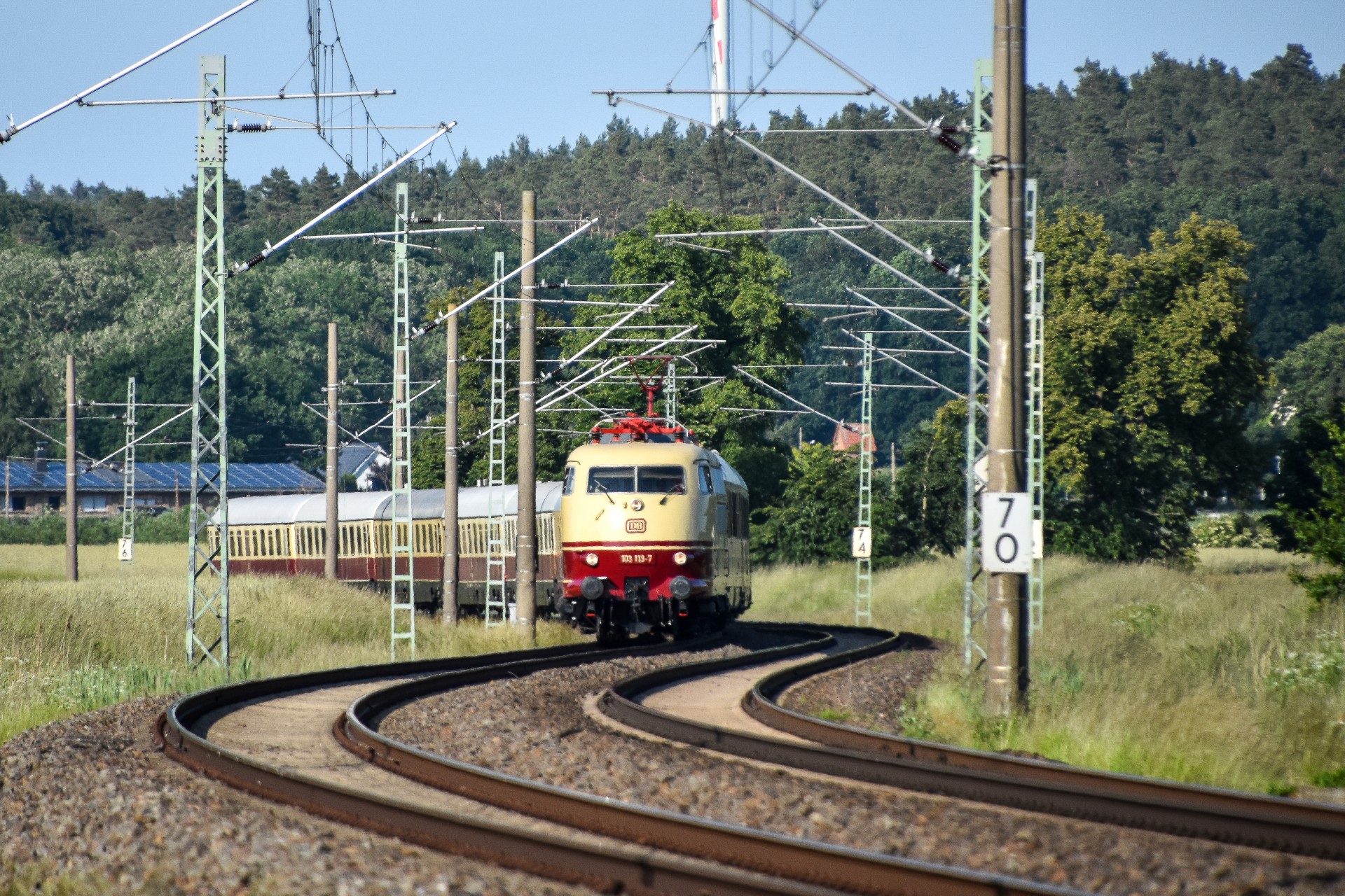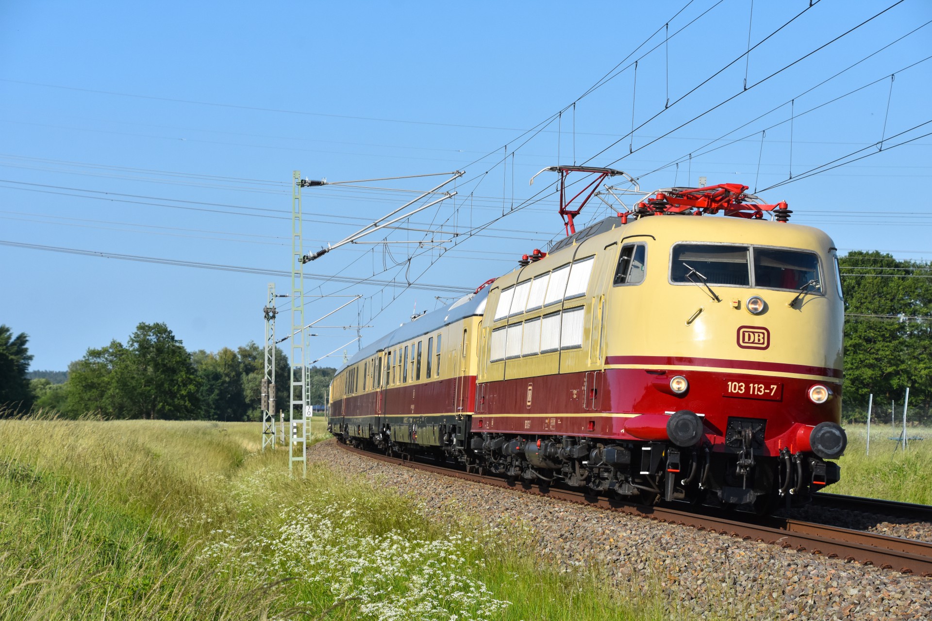 Lørdag aften den 11. juni kørte vi lidt syd for Rostock, da vi om fredagen havde set at der ville være endnu en “103er” i området. Det var nemlig DB Museum´s 103 113-7 fra Koblenz som var kommet til Rostock fra Fulda. Det blev til et par billeder af toget Schwaan og Bötzow, ikke den 100% mest optimale placering(til fotografering), men det blev da nogenlunde.
