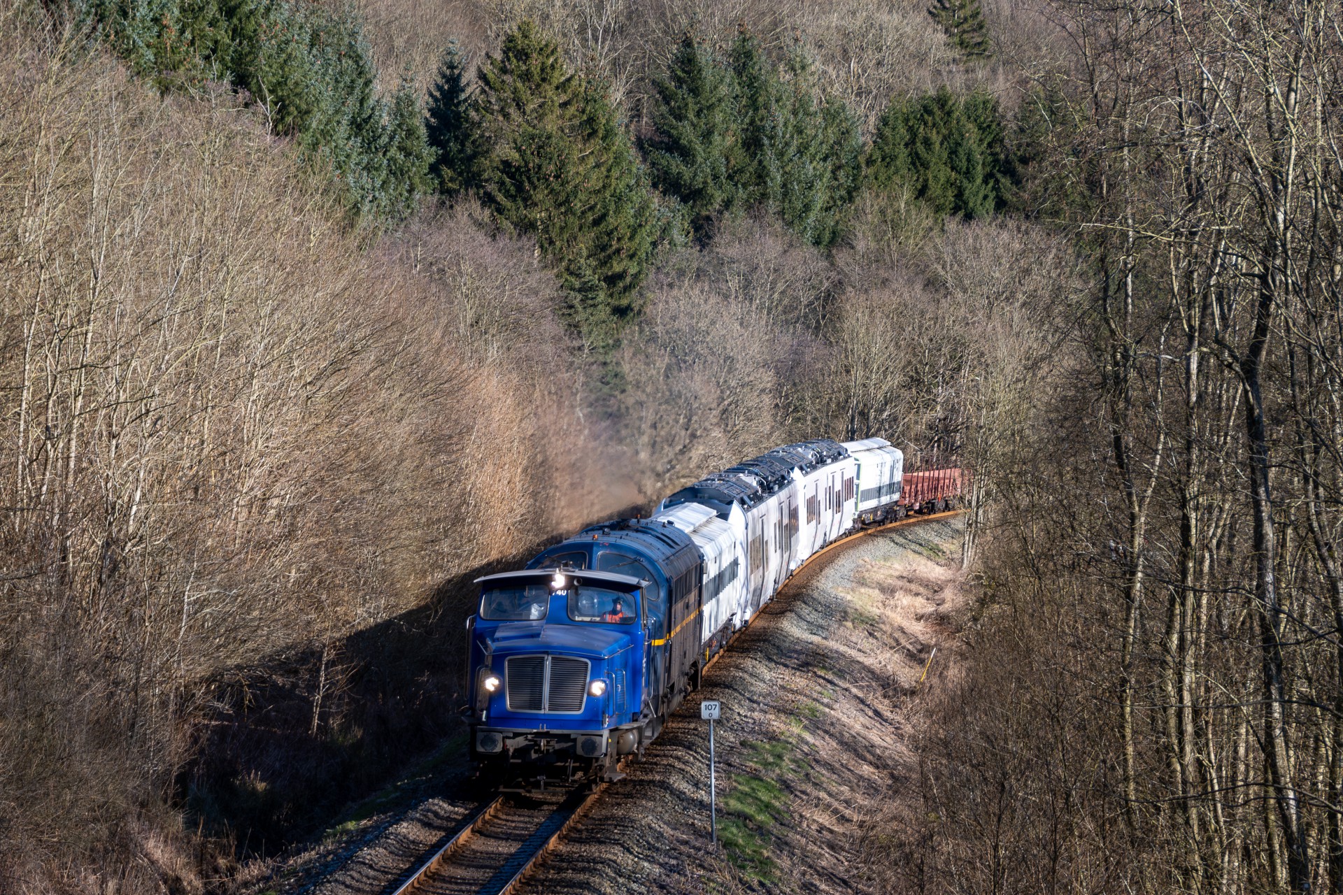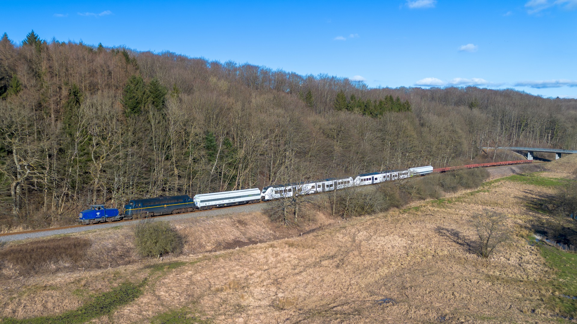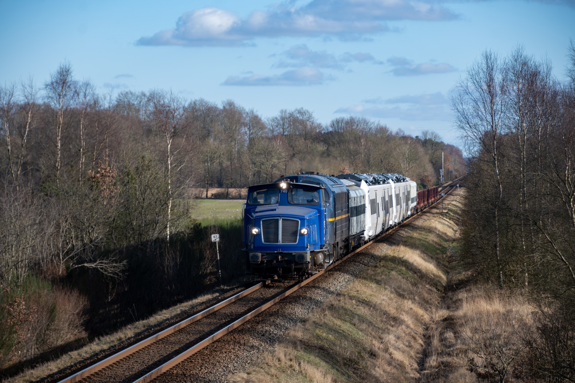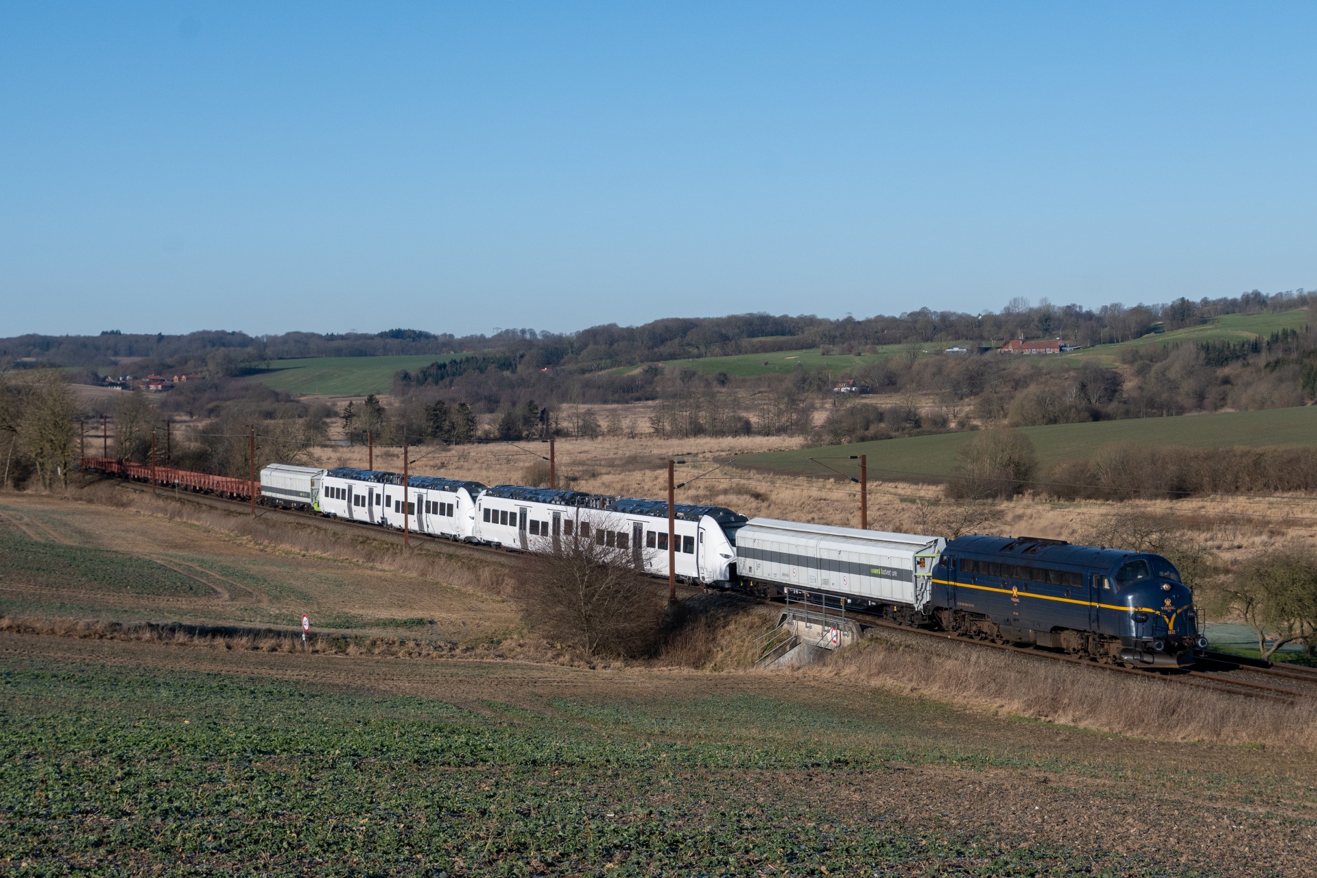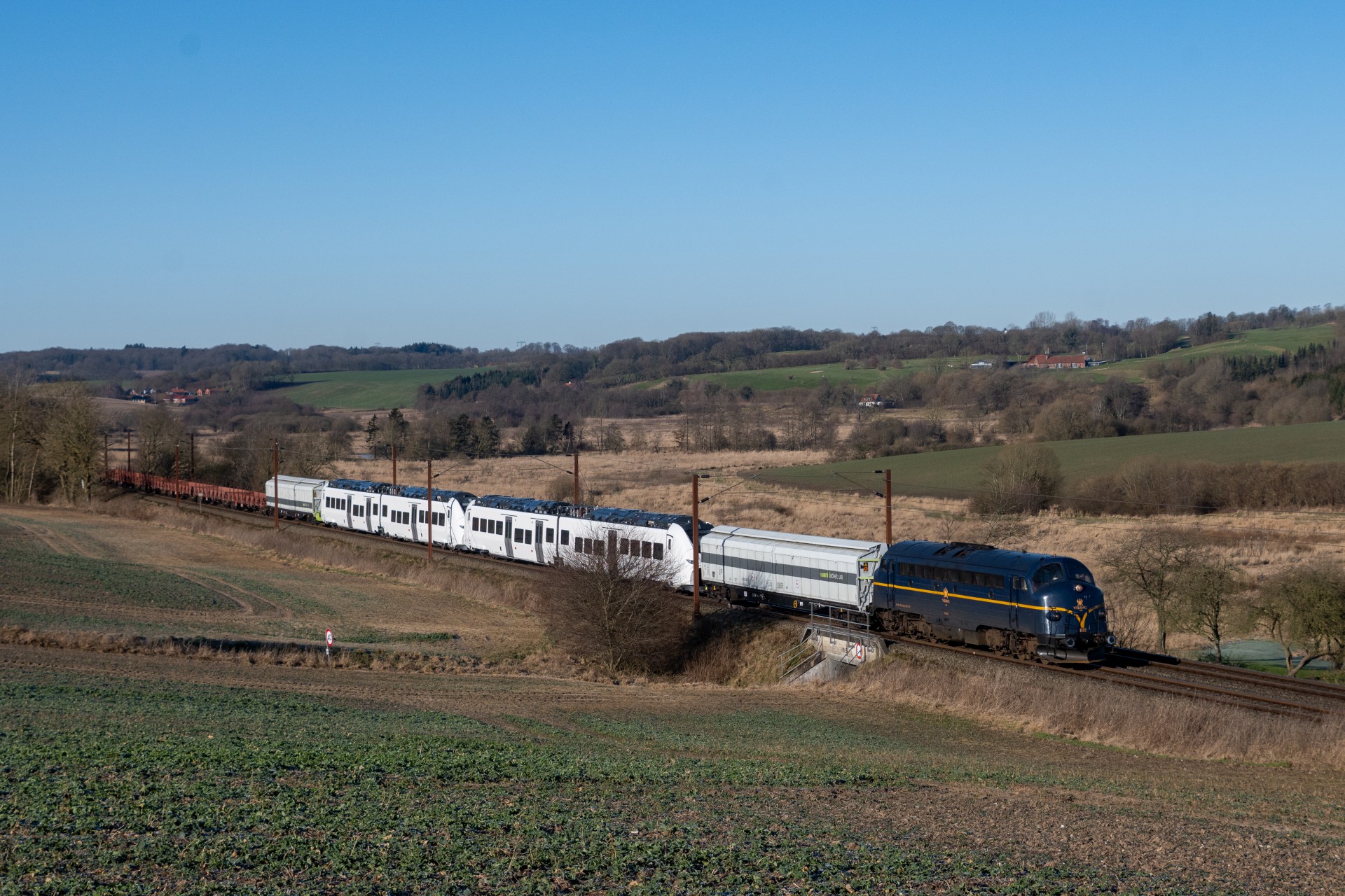 Omkring 13.50 kunne Z70 740 + MY 1152 så endelig afgå fra Vejle videre mod Herning. Grunden til at Z70 740 var i front på toget skyldes der på strækningen er ERTMS. Efter toget var passeret i Grejsdalen kørte ud videre til lidt uden for Brande, hvor det også blev til et par fine billeder. Derefter gik turen videre til Herning, hvor jeg også nåede frem i fin til at få billeder af ankomst. Til slut kørte jeg ud mellem Studsgård og Kibæk, hvor de sidste billeder blev taget. Jeg havde desværre ikke mulighed for at følge toget det sidste stykke mod Lemvig.