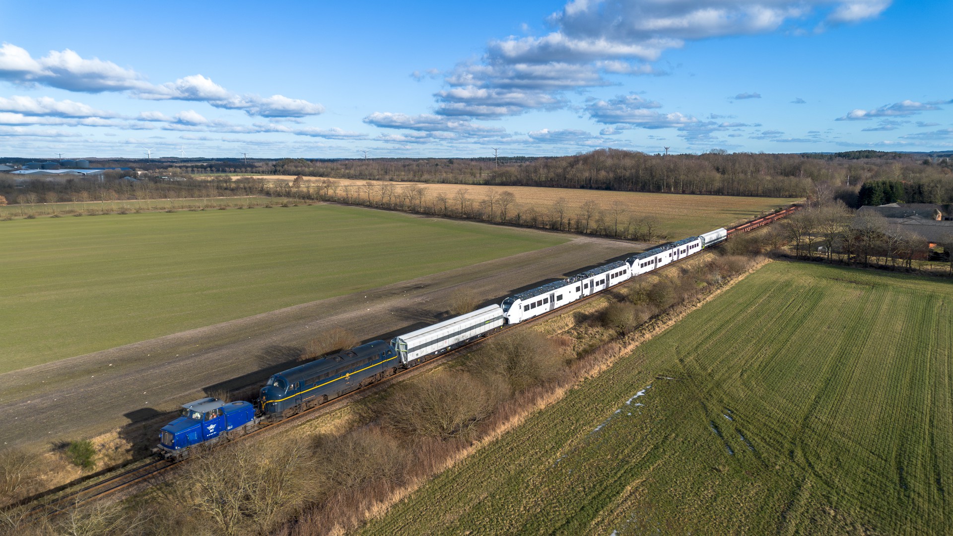Det var VIKING-Rail som var hyret til at trække de nye batteritog til Lemvig fra Padborg. Toget skulle oprindelige have afgået fra Padborg omkring halv 8, men på grund af et skinnebrud ved Thyregod afventede man med at køre nord på. Lidt over en time efter forlød det så at nu var det kommer afsted fra Padborg.