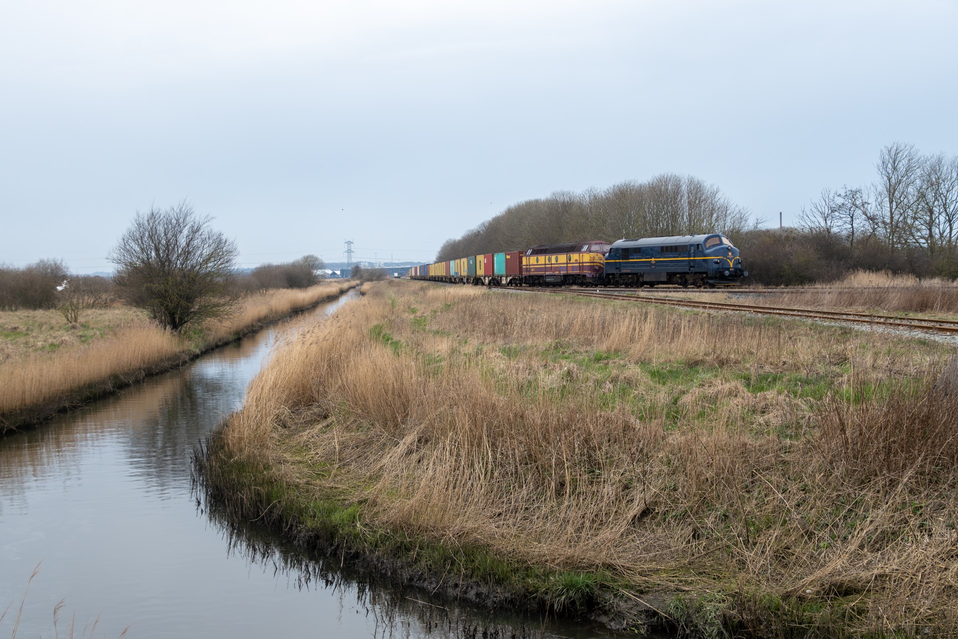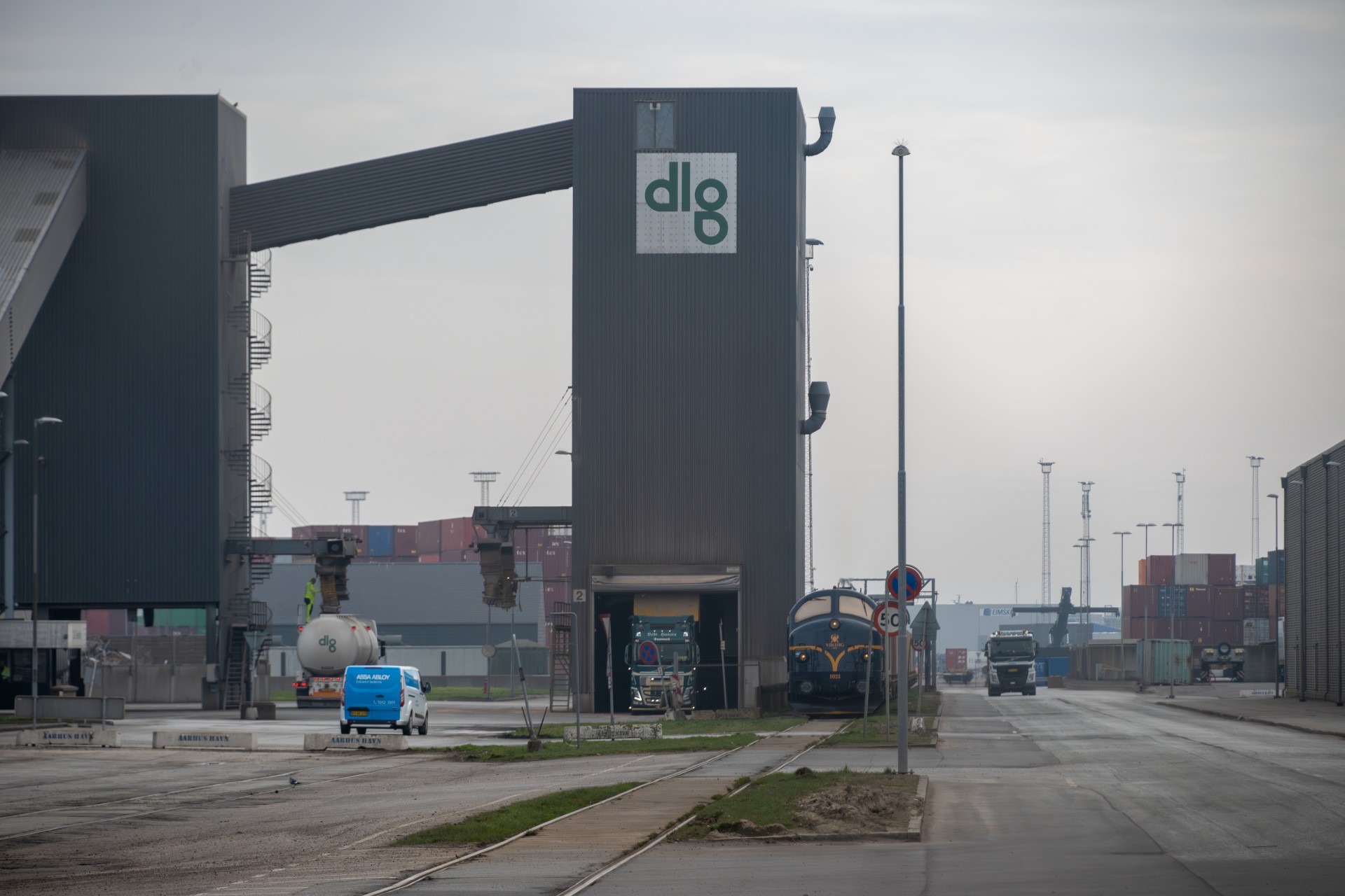 Jeg har taget tidlig afsted om morgenen i god tid, og ved en 8 tiden var jeg lige nede på Aarhus Havn ved APM Terminalen, for at se om man kunne se toget allerede. Det kunne man, og det holdt tændt, så jeg valgte at bevæge mig mod det første udvalgte fotosted, da jeg gerne ville undgå at misse toget der. Det første sted jeg havde planlagt var på Ringgadebroen. Når toget køre fra Aarhus H mod nord, kommer det nemlig op på en viadukt, og her ville jeg gerne have et par billeder af et godstog, inden det hele bliver plastet til med master.